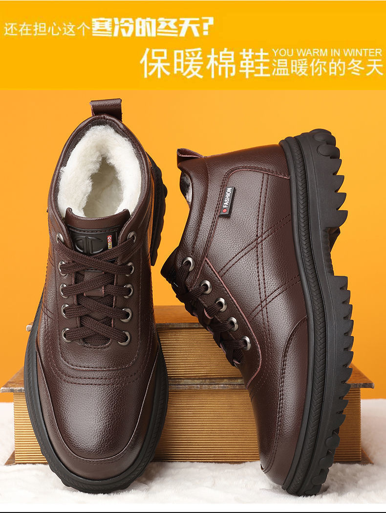 男士登山棉鞋保暖加绒加厚休闲男鞋厚底冬季舒适简约高帮鞋子男