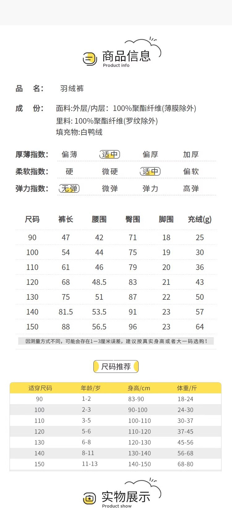 新国标儿童羽绒裤冬季男女童加厚长裤宝宝大童休闲童装保暖裤子