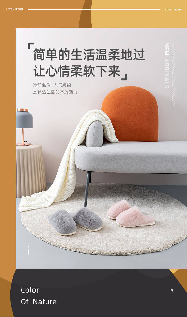 棉拖鞋女冬时尚简约居家用家居防滑保暖加厚底毛绒绒情侣一件代发