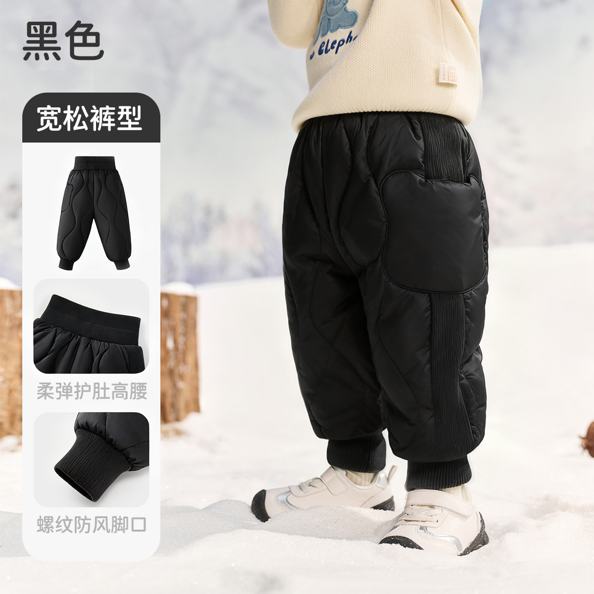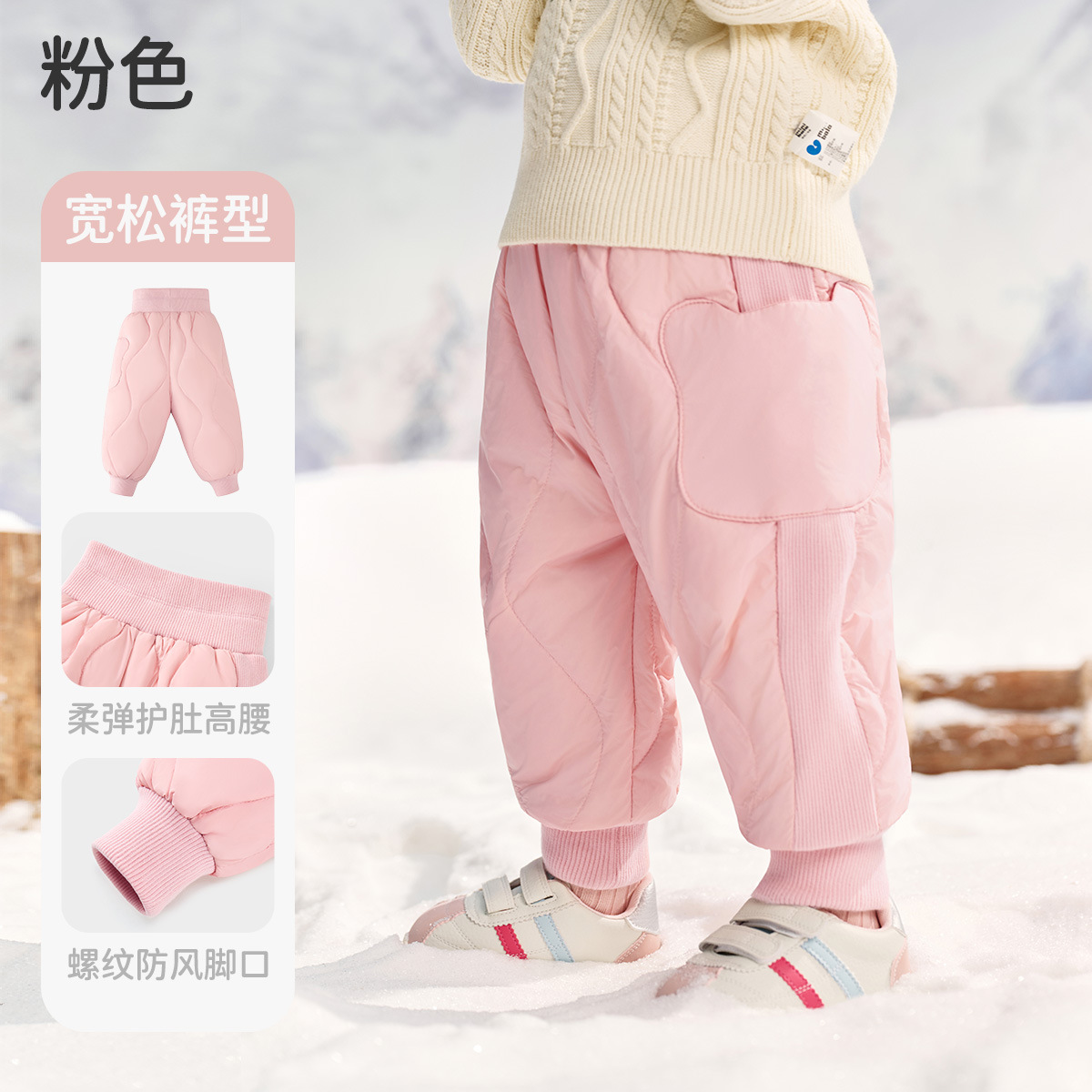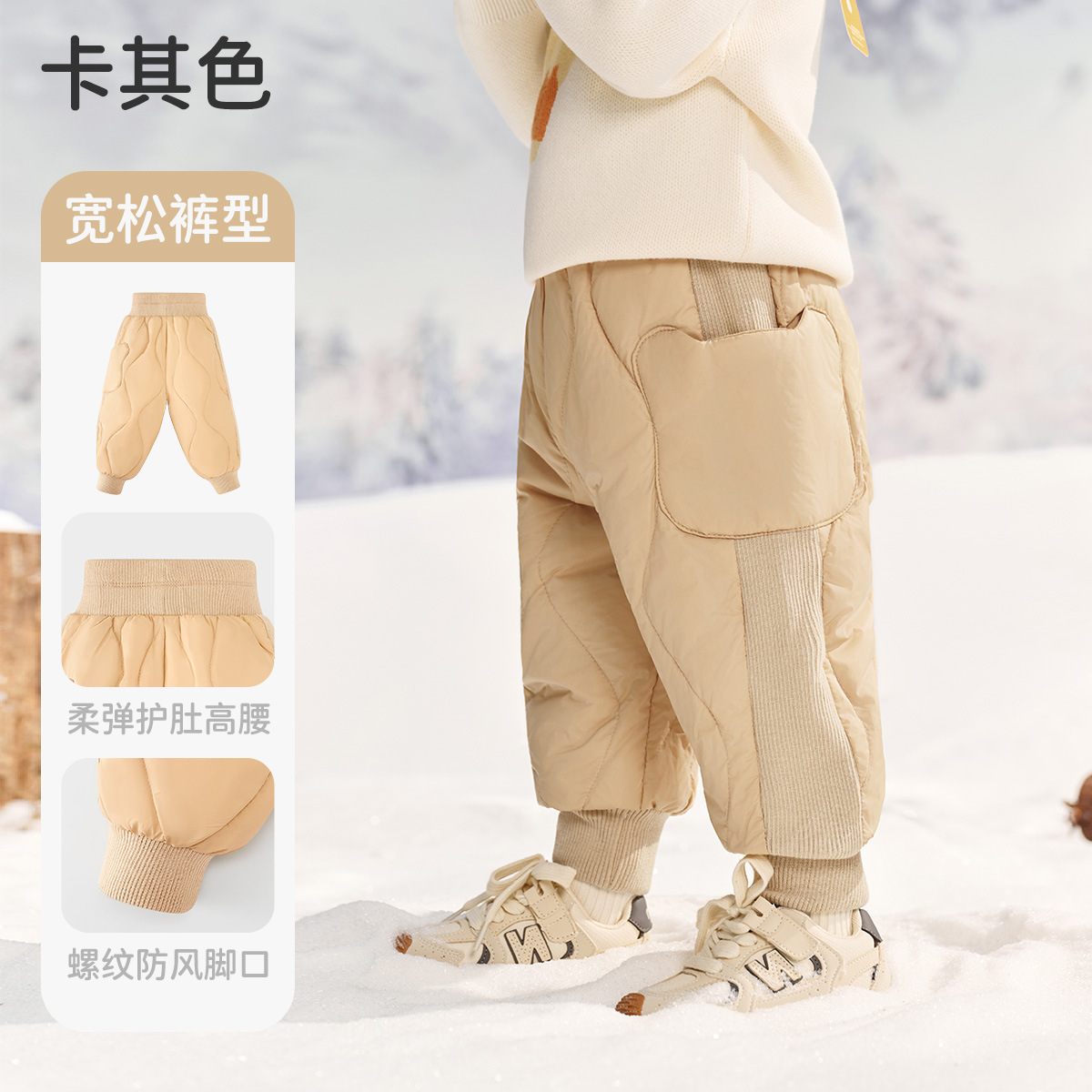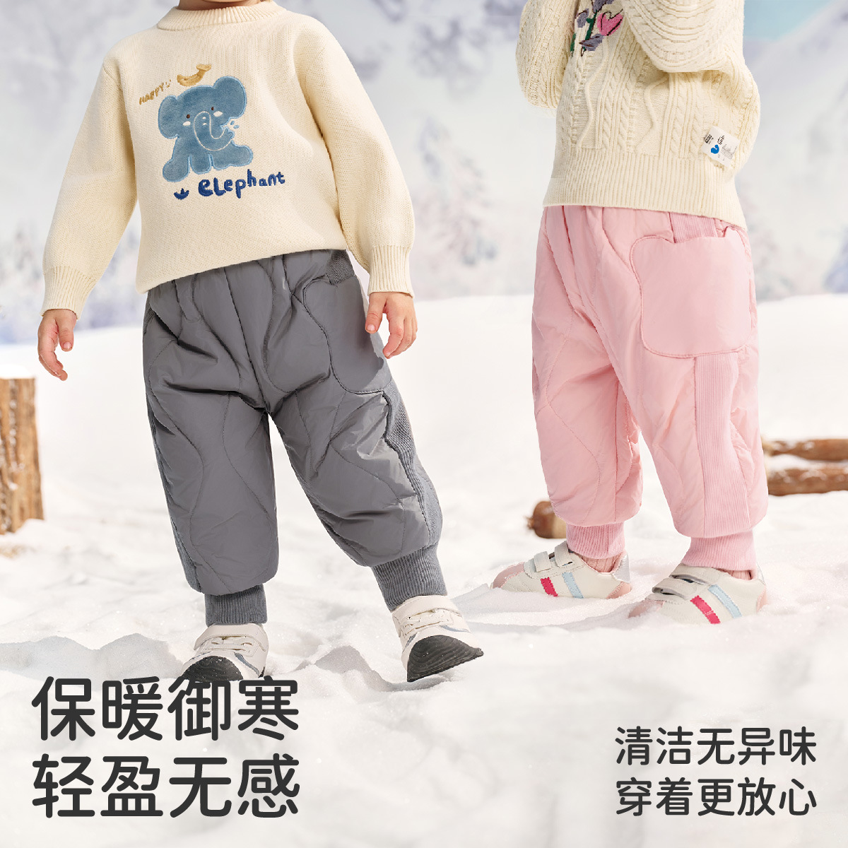 婧麒宝宝羽绒裤高腰冬季外穿裤子2025保暖加厚白鸭绒女童男童长裤