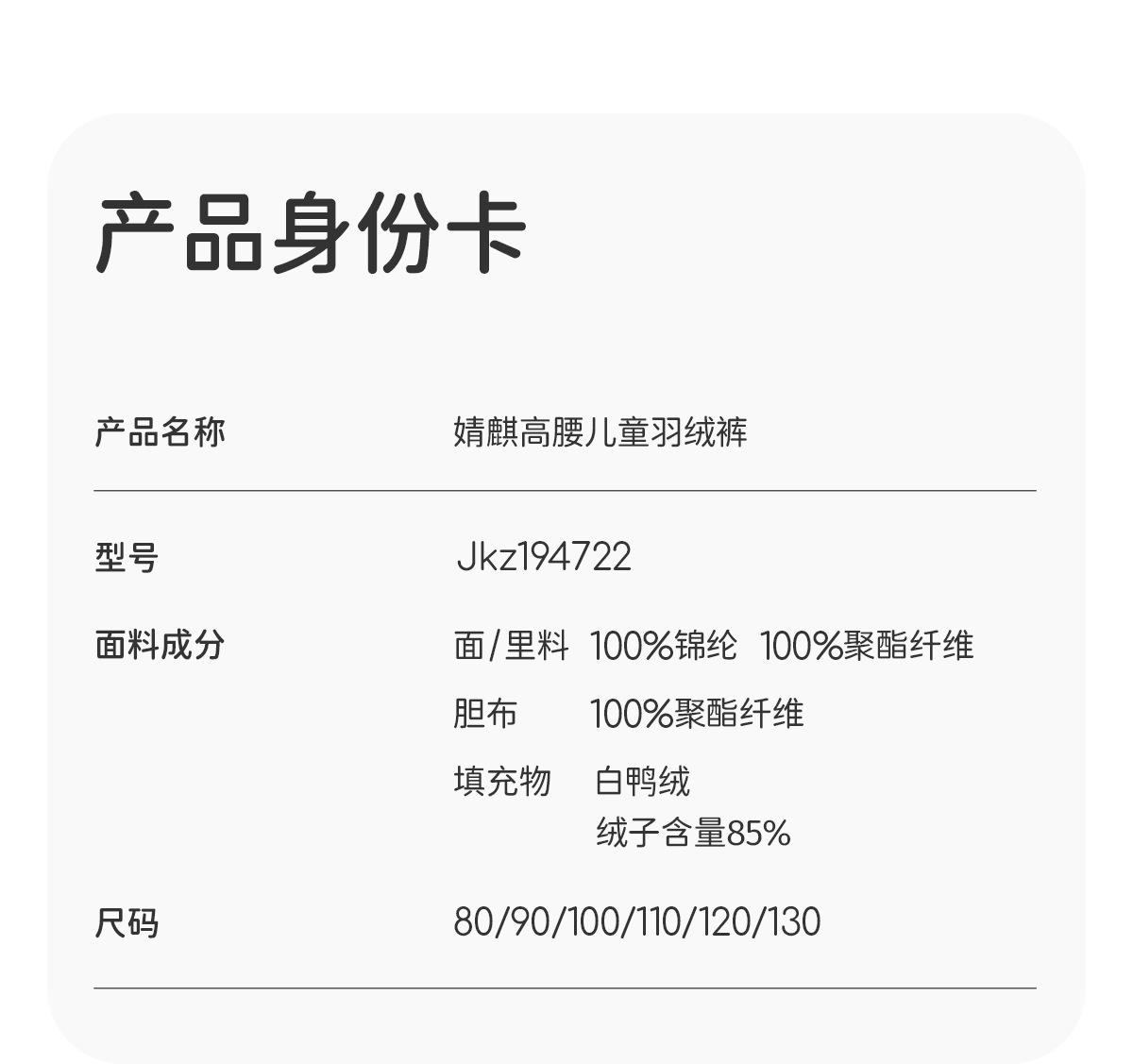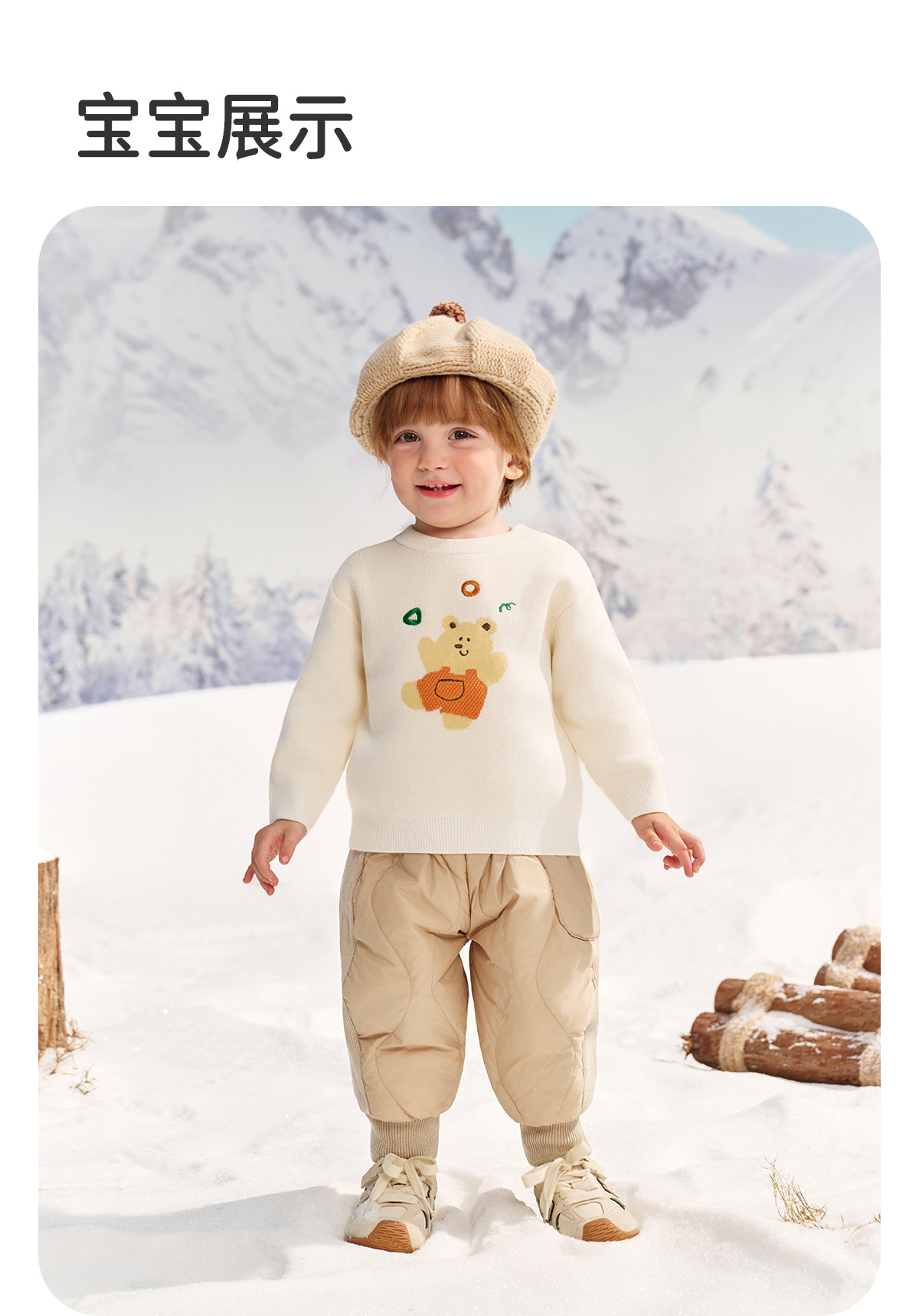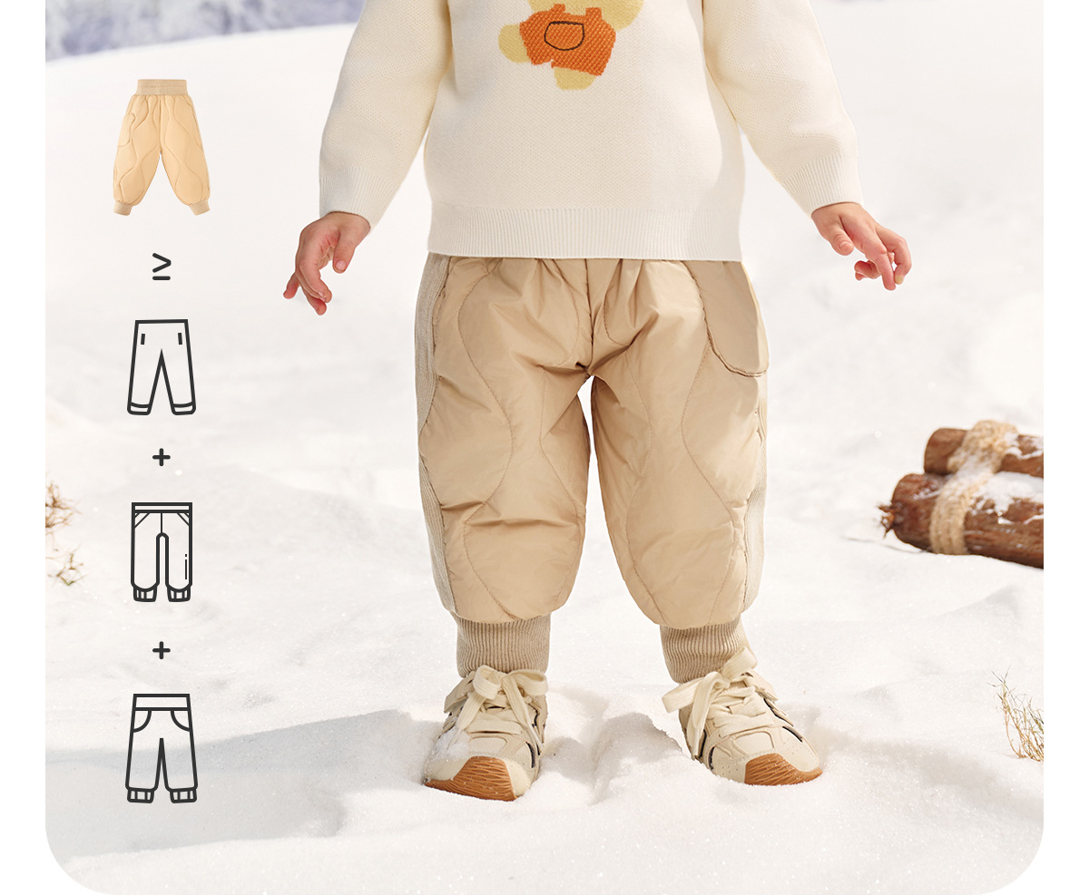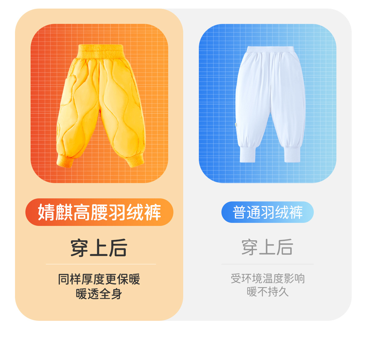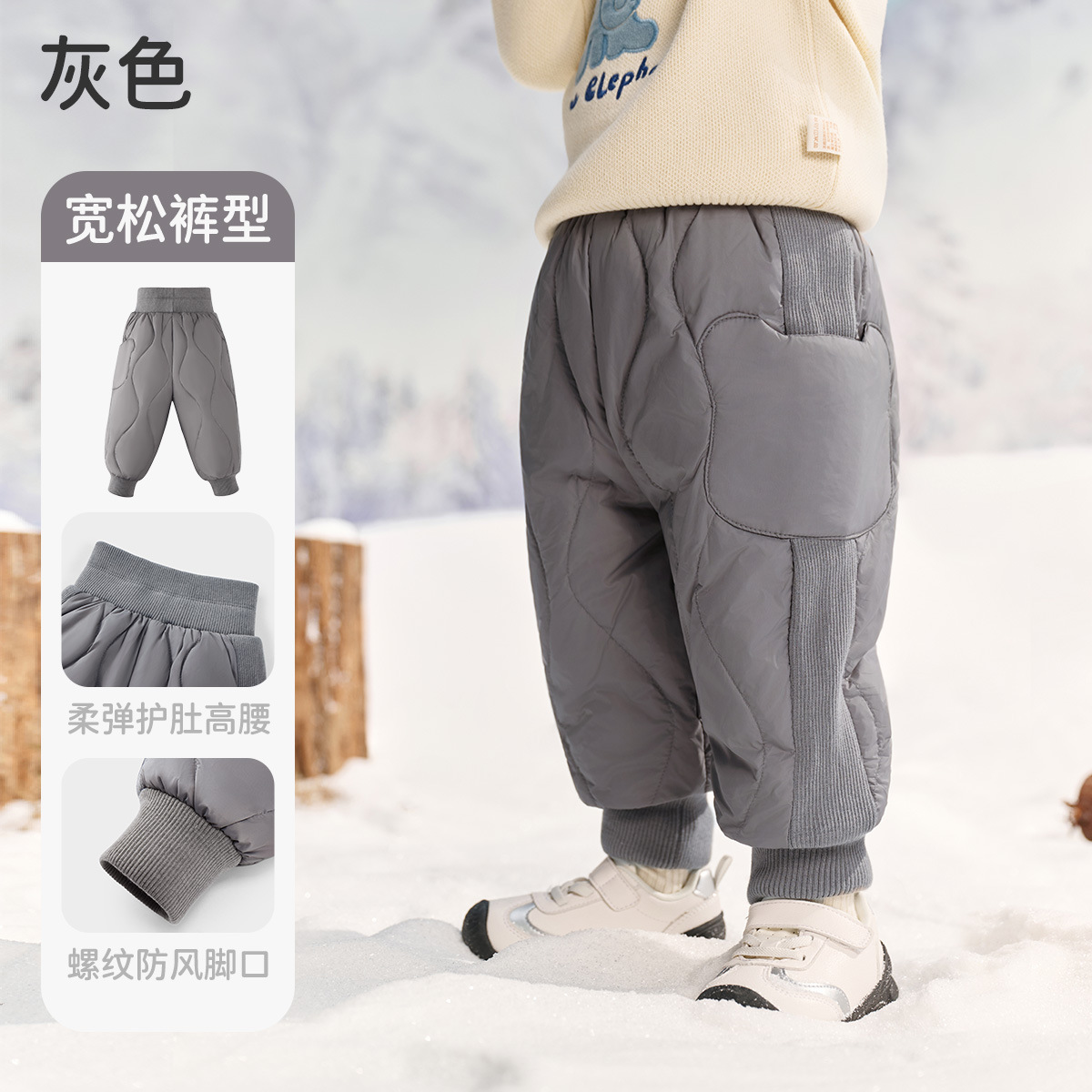 婧麒宝宝羽绒裤高腰冬季外穿裤子2025保暖加厚白鸭绒女童男童长裤