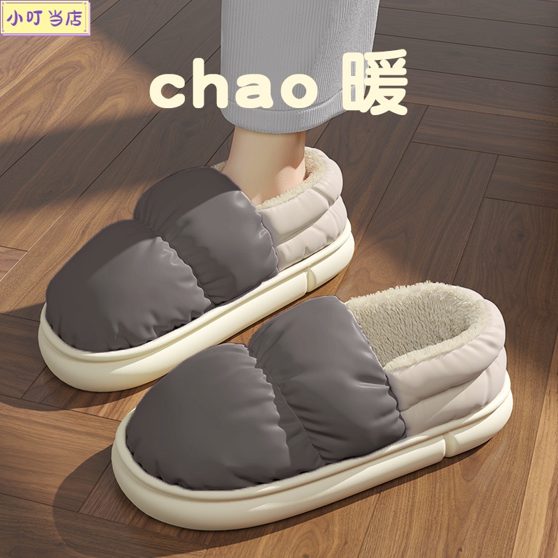 家居棉拖鞋包跟男冬季羽绒布防水室内家用男士毛绒保暖棉鞋女批发