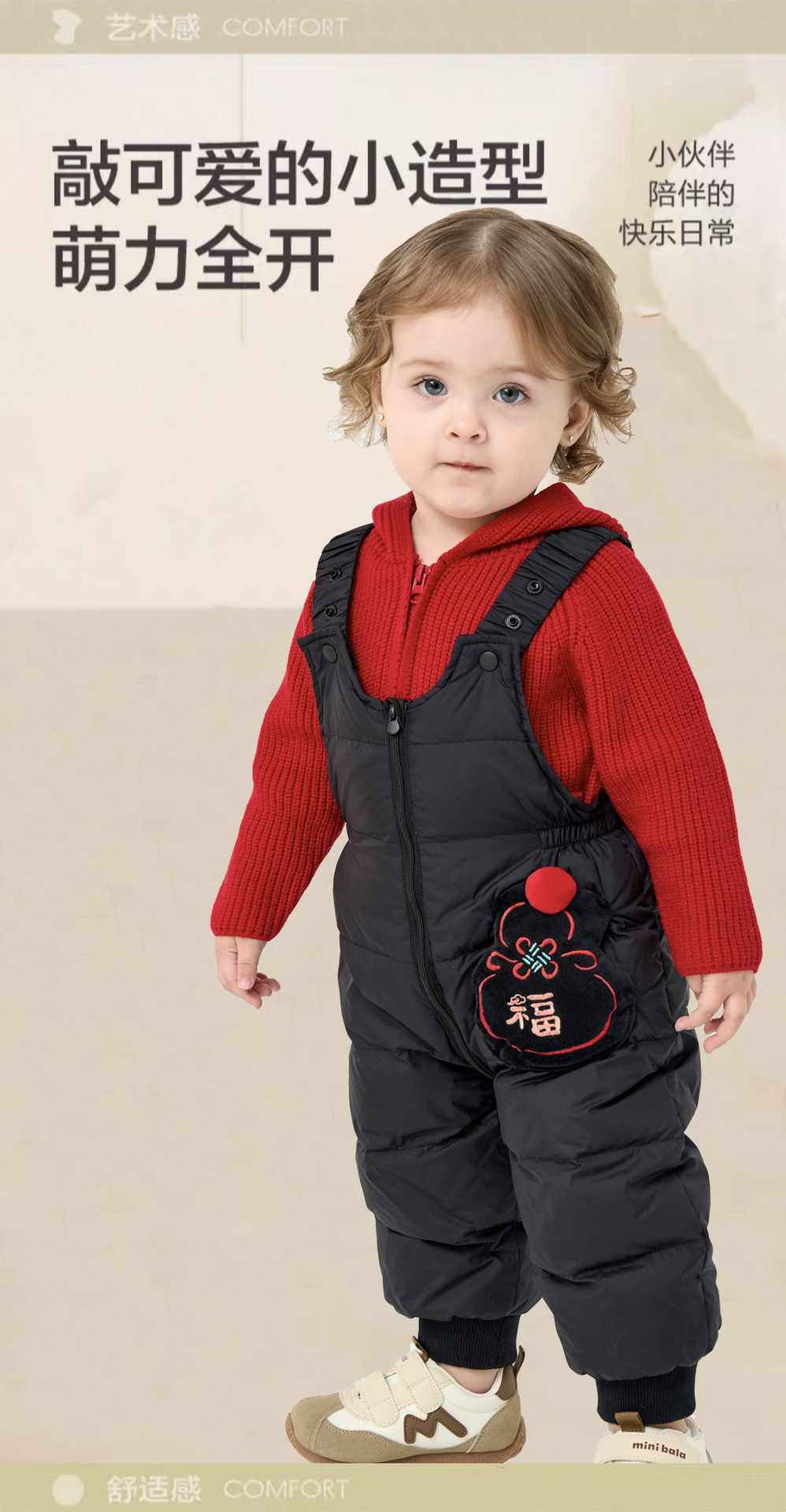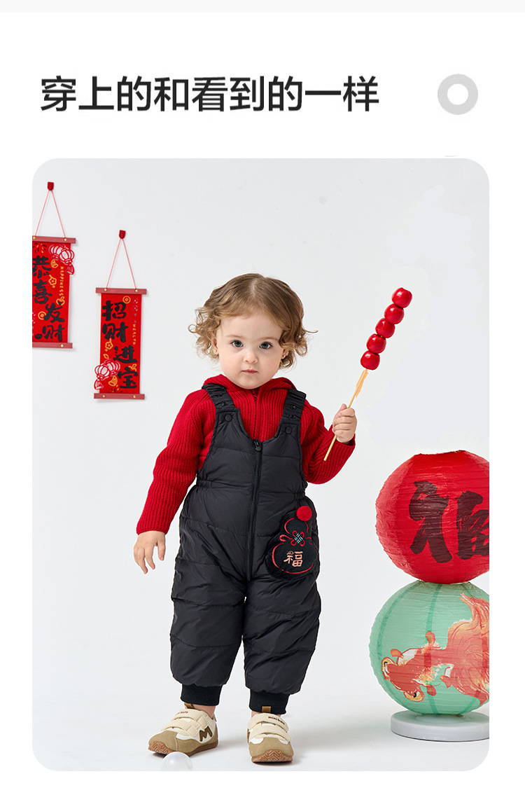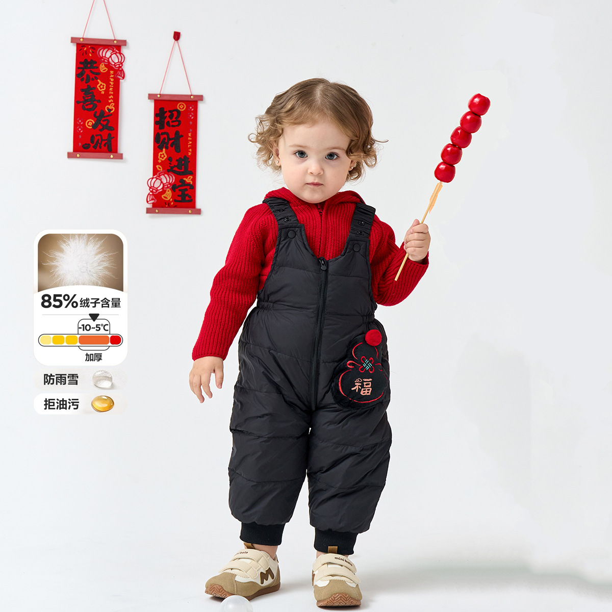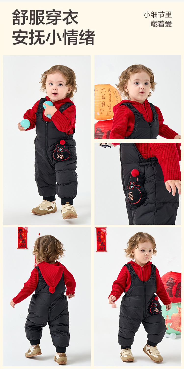 【专柜】婴儿童羽绒背带裤外出户外冬季宝宝加厚白鸭绒男童羽绒裤