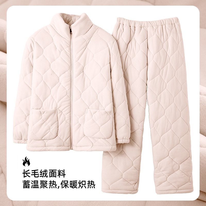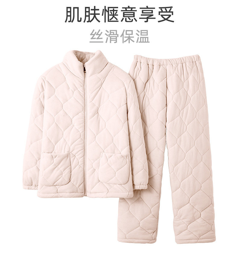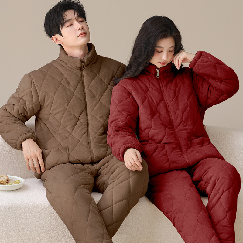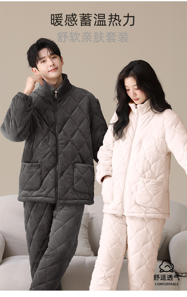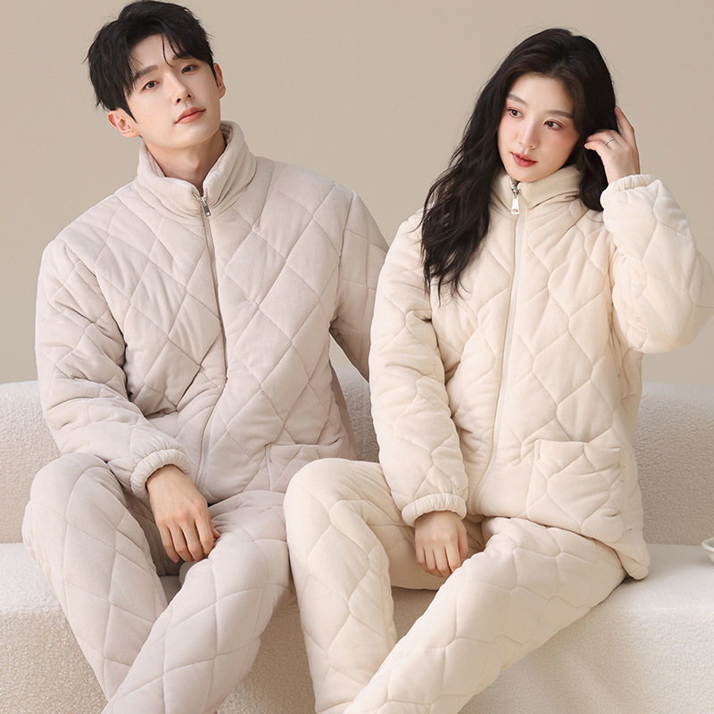 情侣睡衣冬季夹棉拉链款立领保暖三层加厚加绒秋冬款可外穿家居服