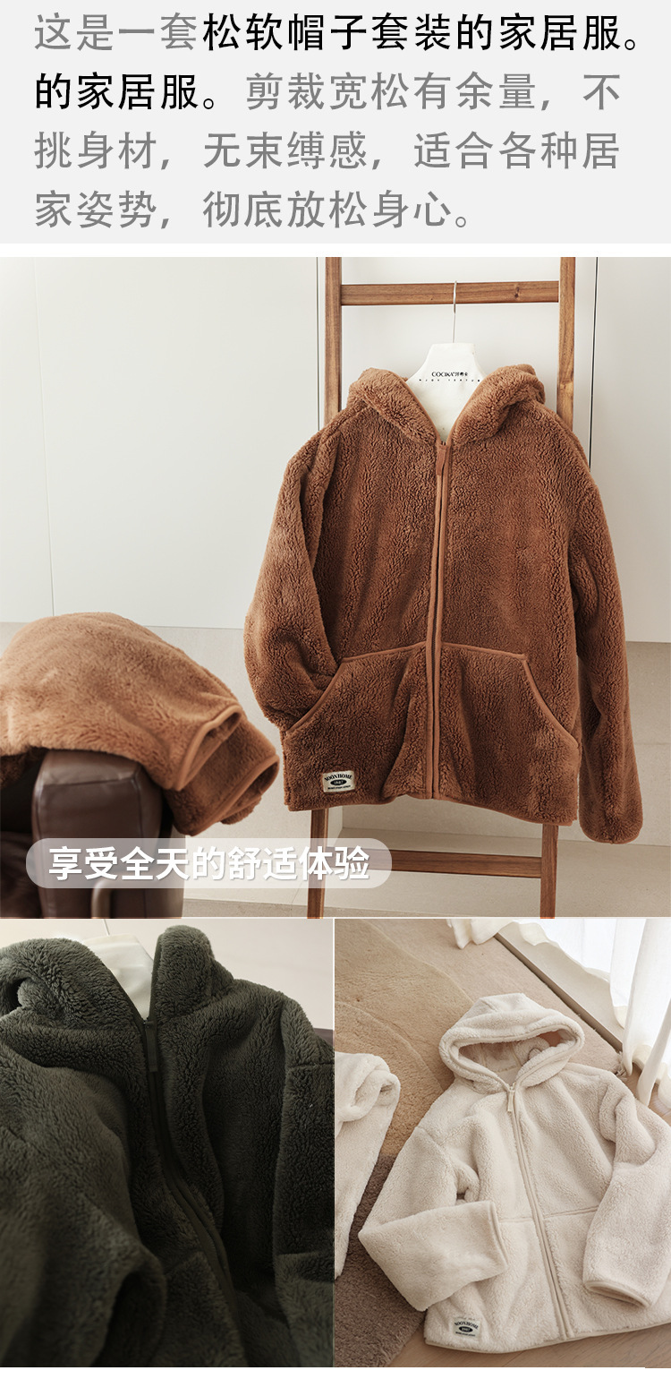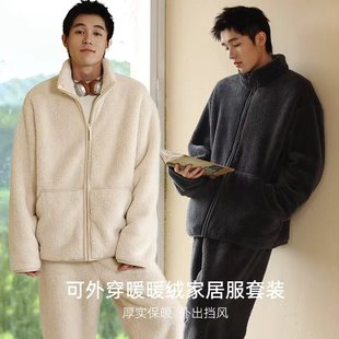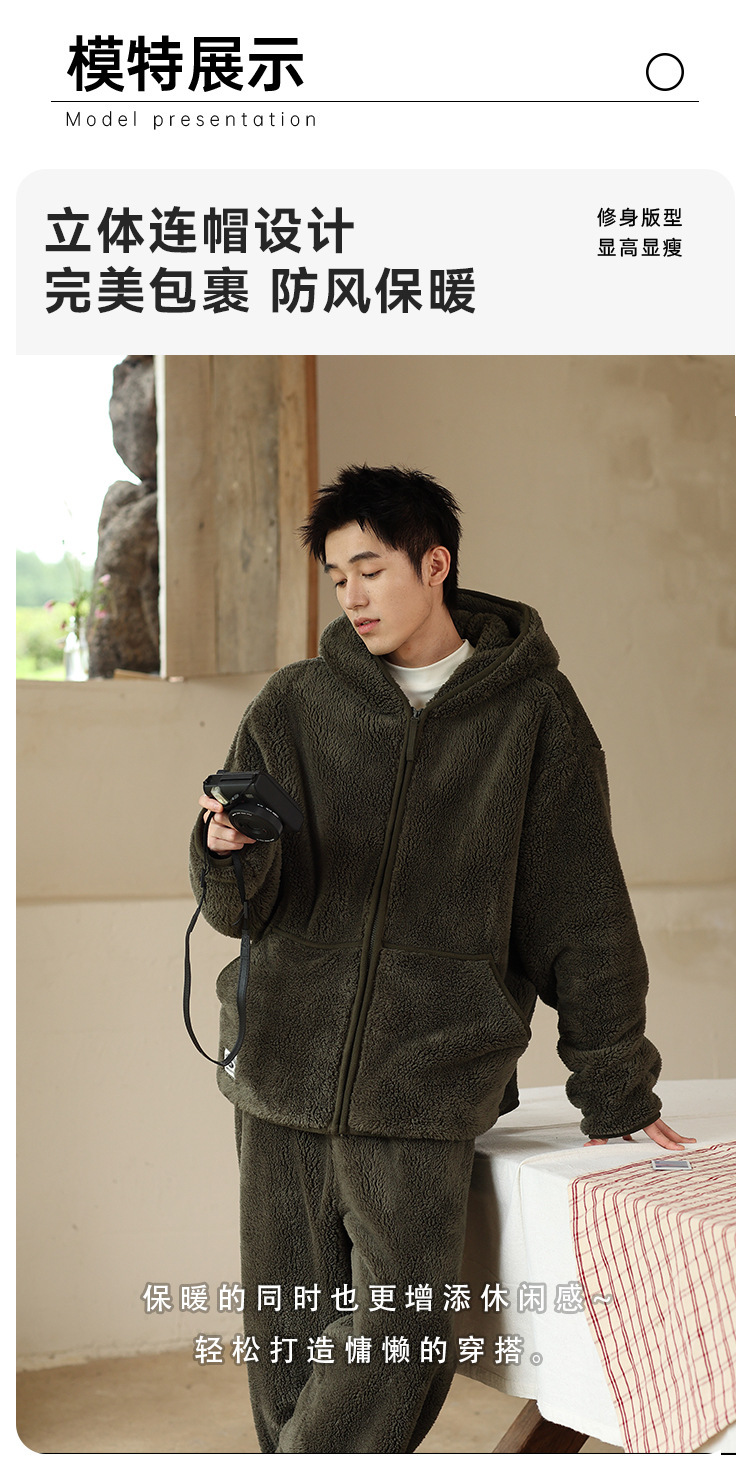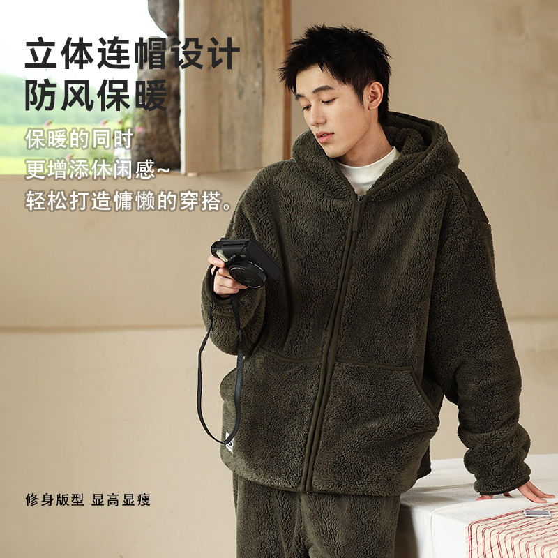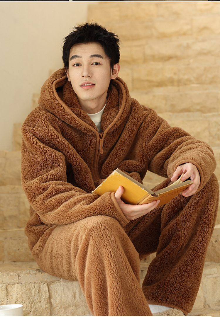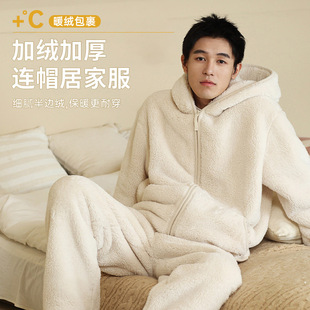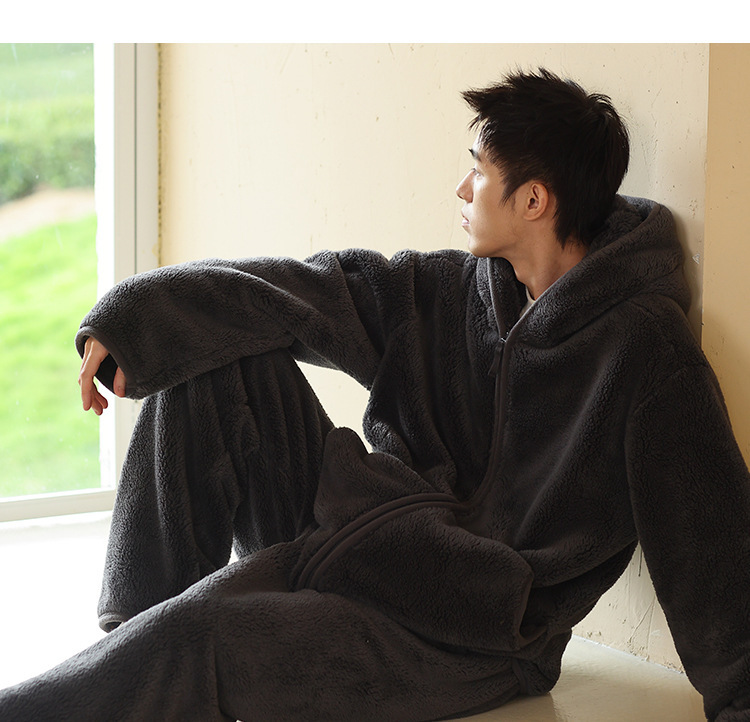 重磅家居连帽睡衣男款加厚暖绒慵懒宽松舒适保暖可外穿男士套装