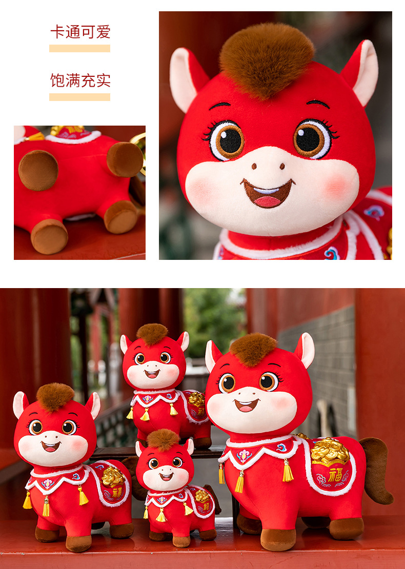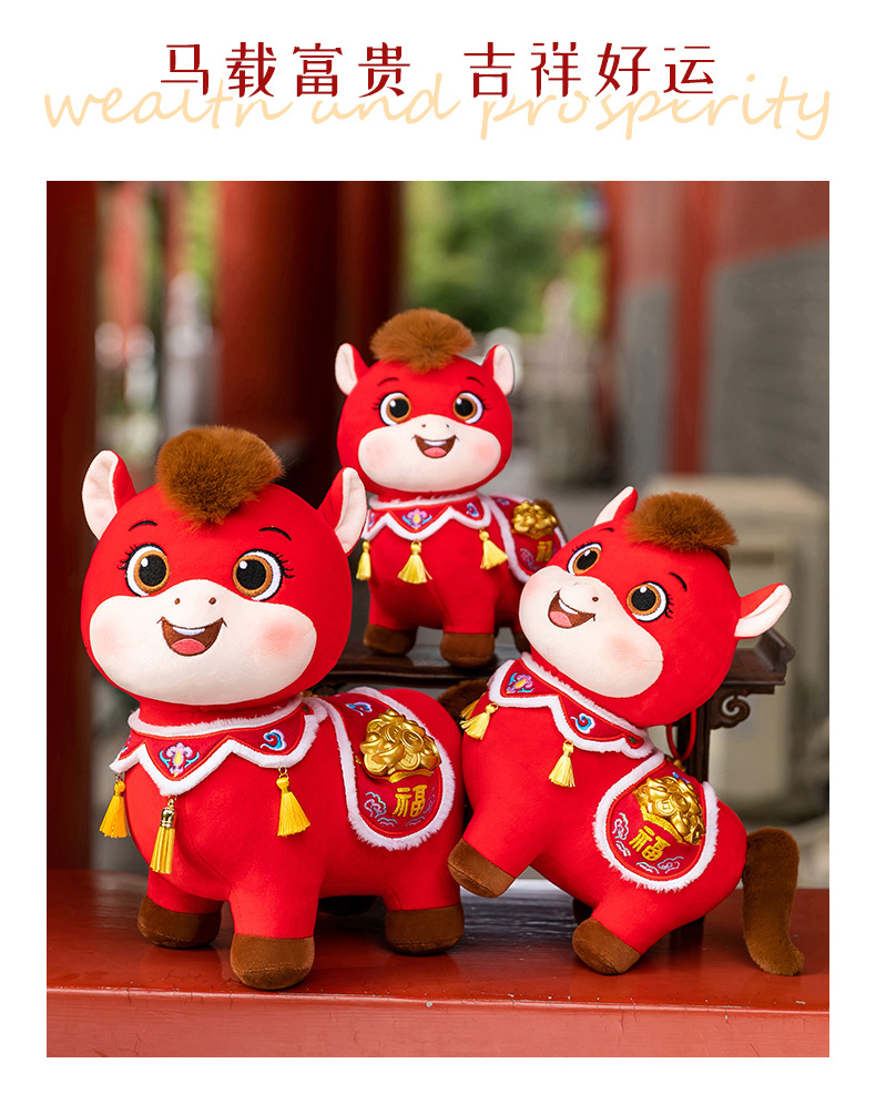 2026可爱马年吉祥物马载富贵公仔娃娃新年玩偶礼品logo毛绒玩具