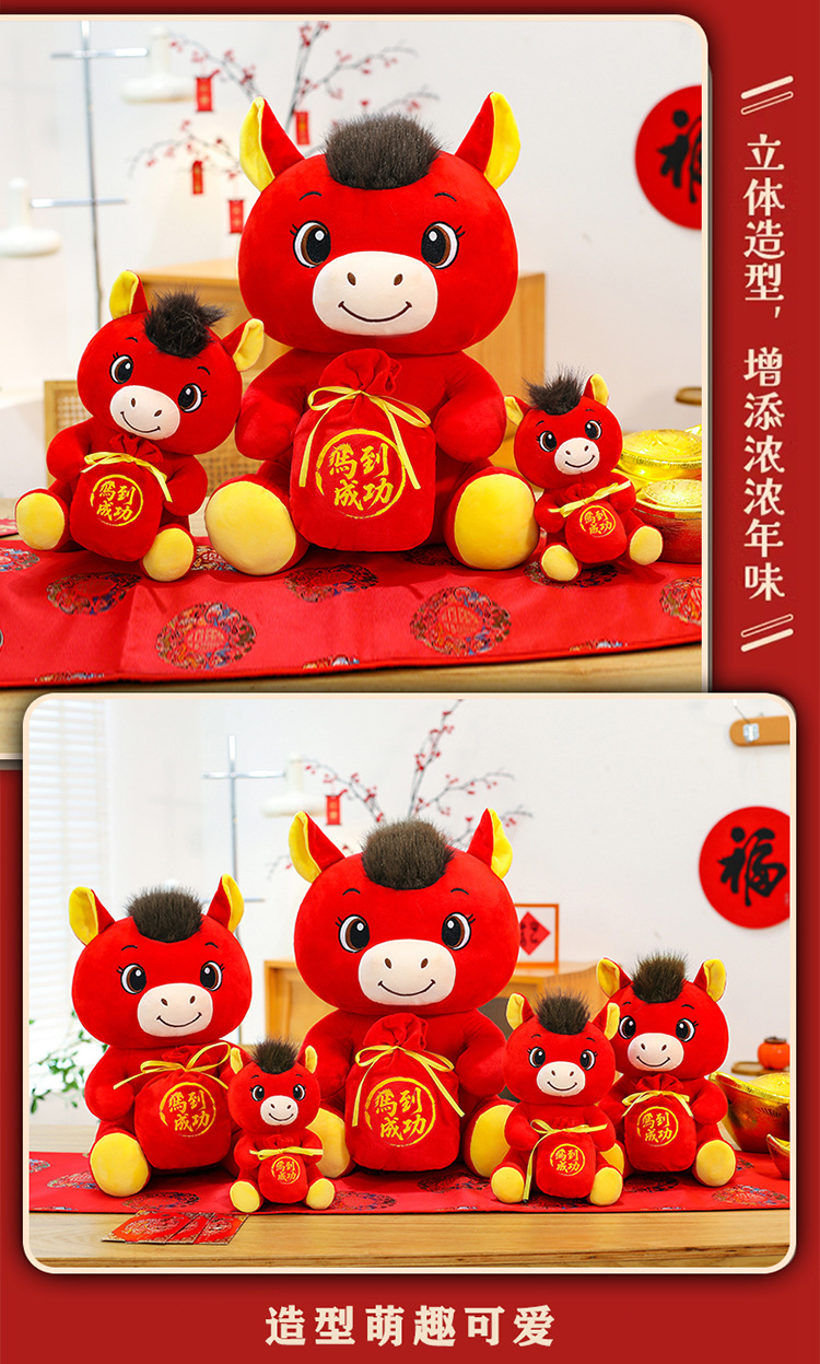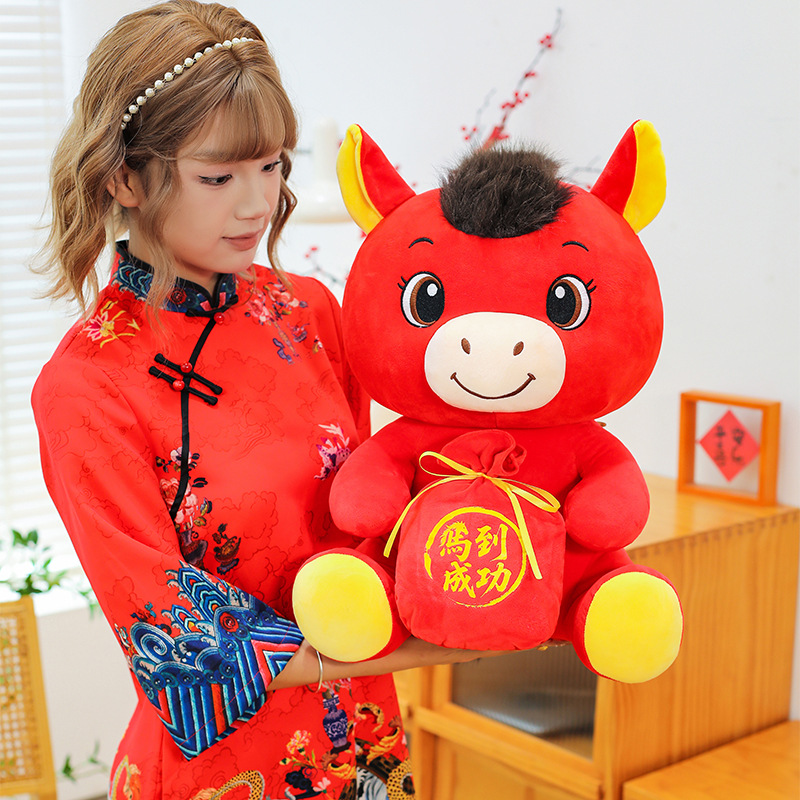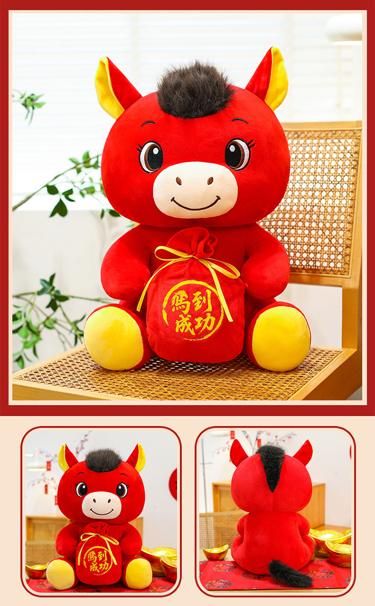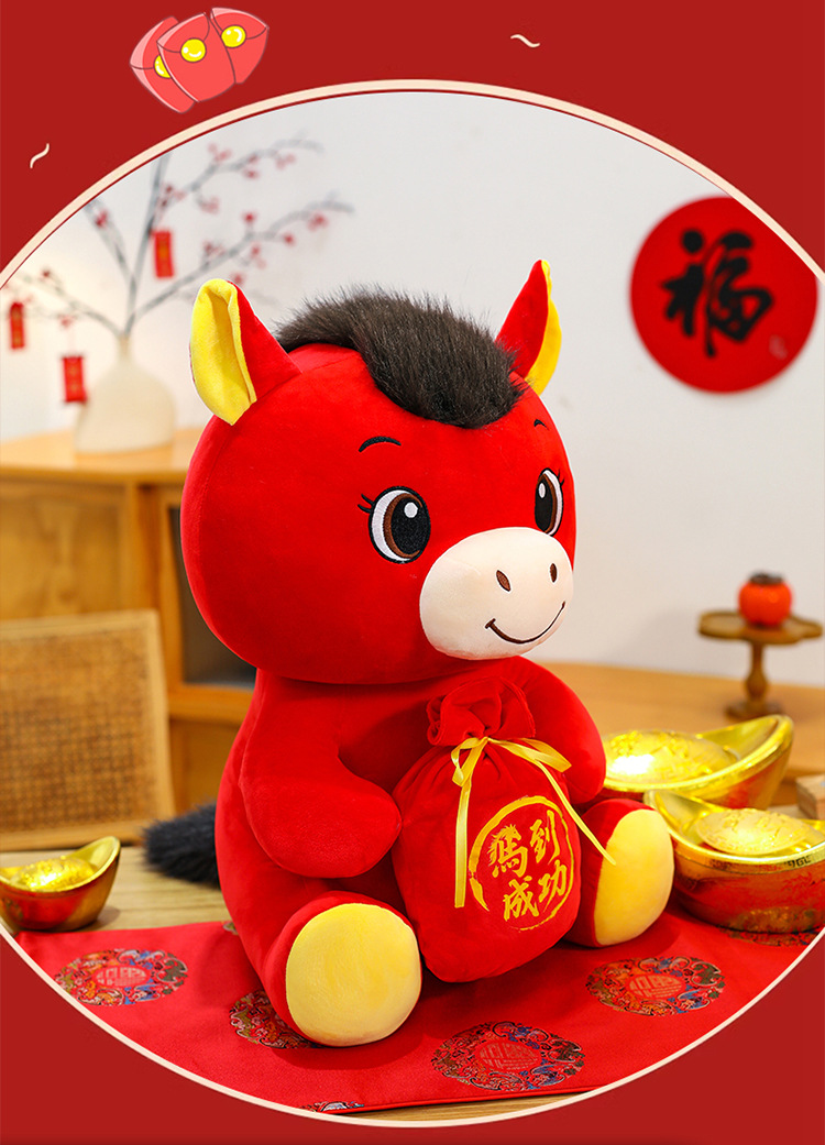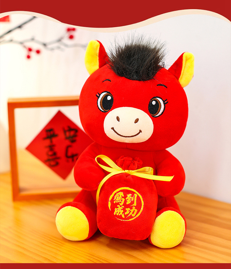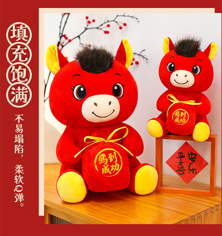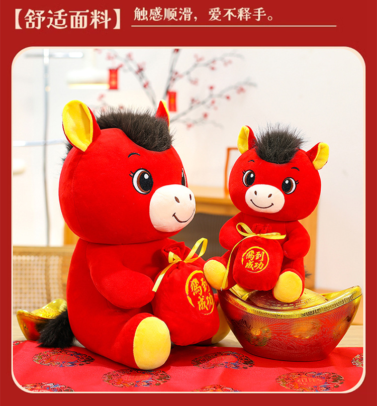 中国年新款马年吉祥物毛绒玩具如意小马抱福袋玩偶活动礼品公仔