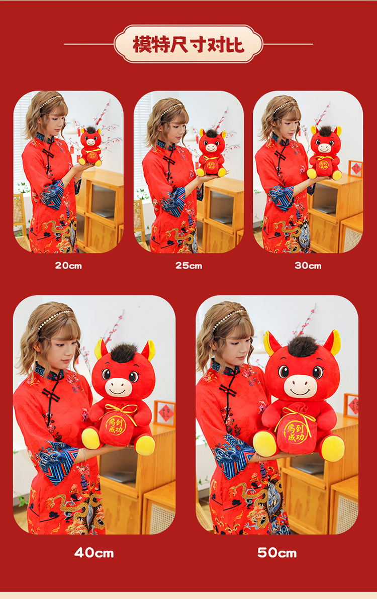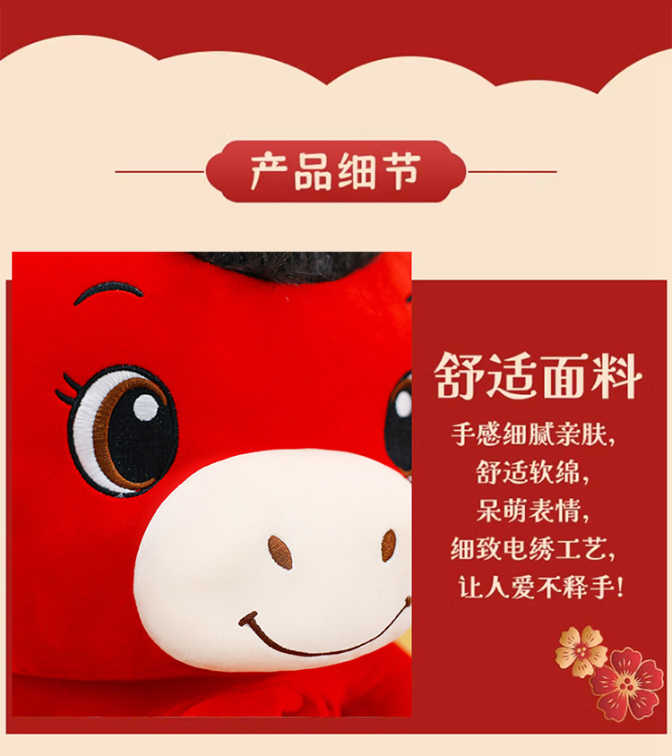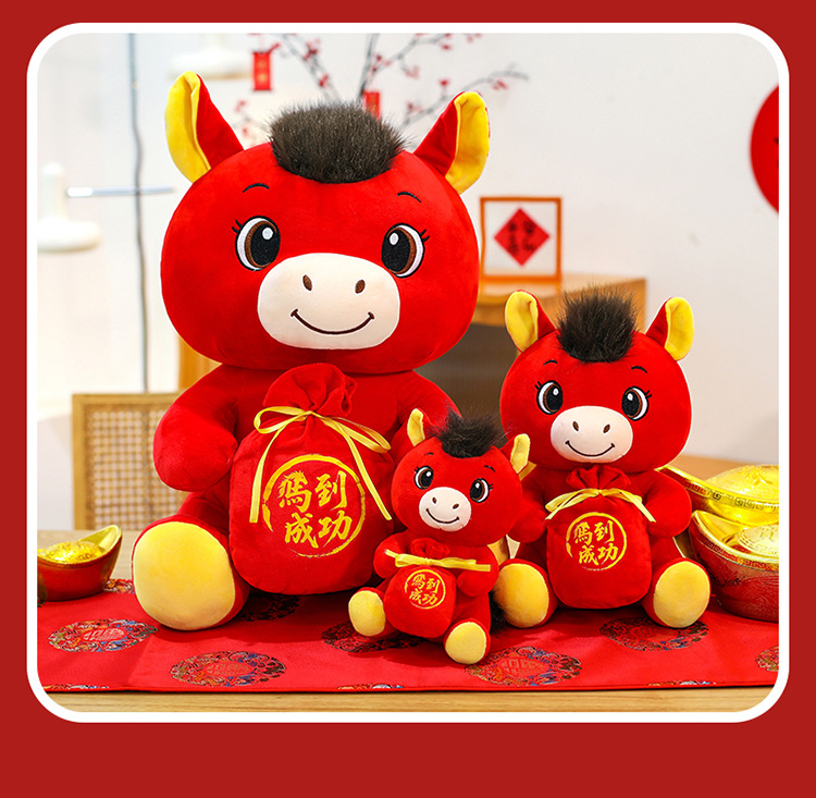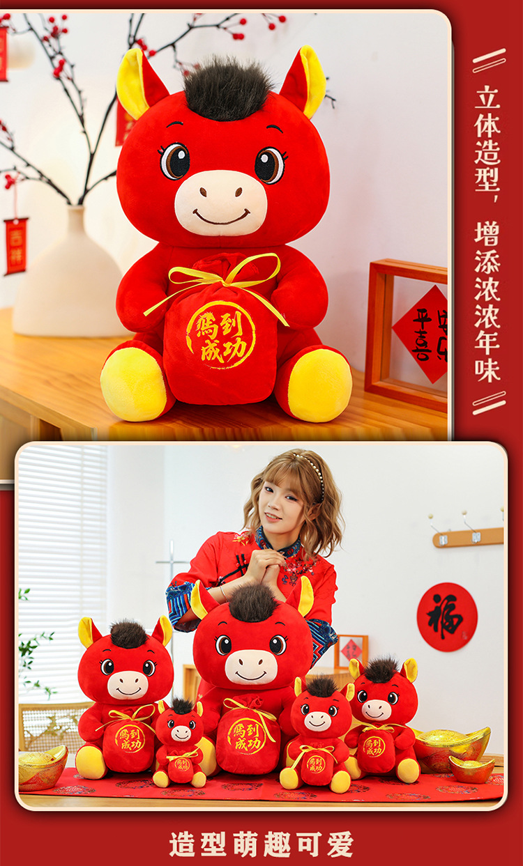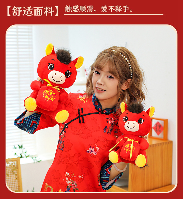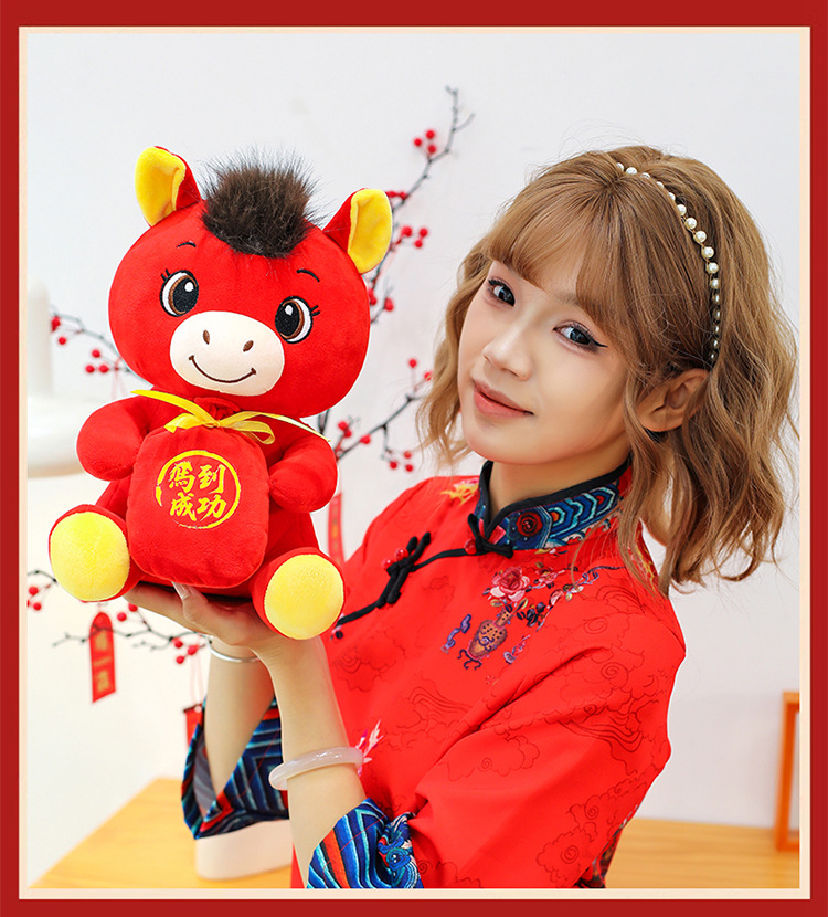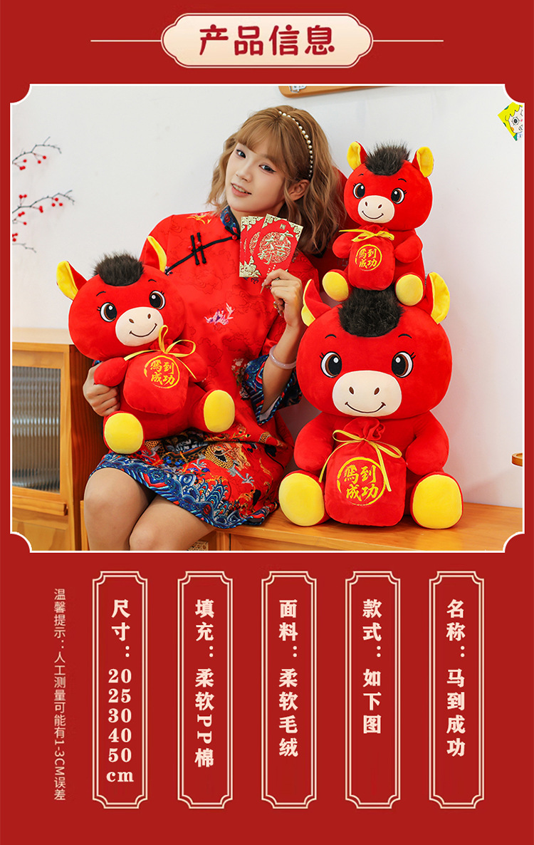 中国年新款马年吉祥物毛绒玩具如意小马抱福袋玩偶活动礼品公仔