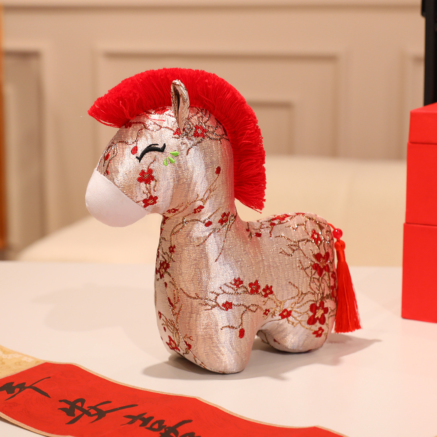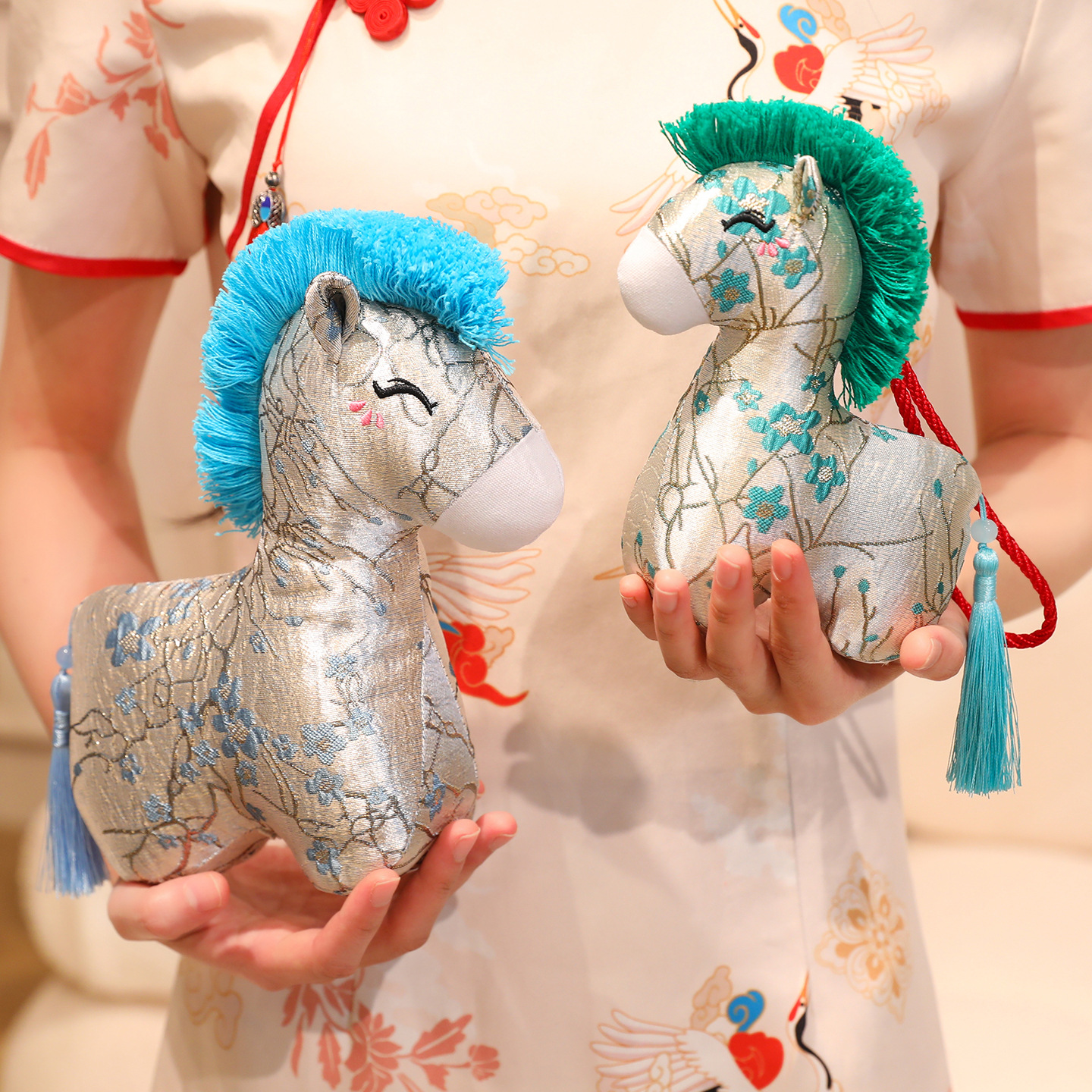 2026马年吉祥物公仔宋锦四季生肖小马挂件玩偶礼品毛绒玩具批发