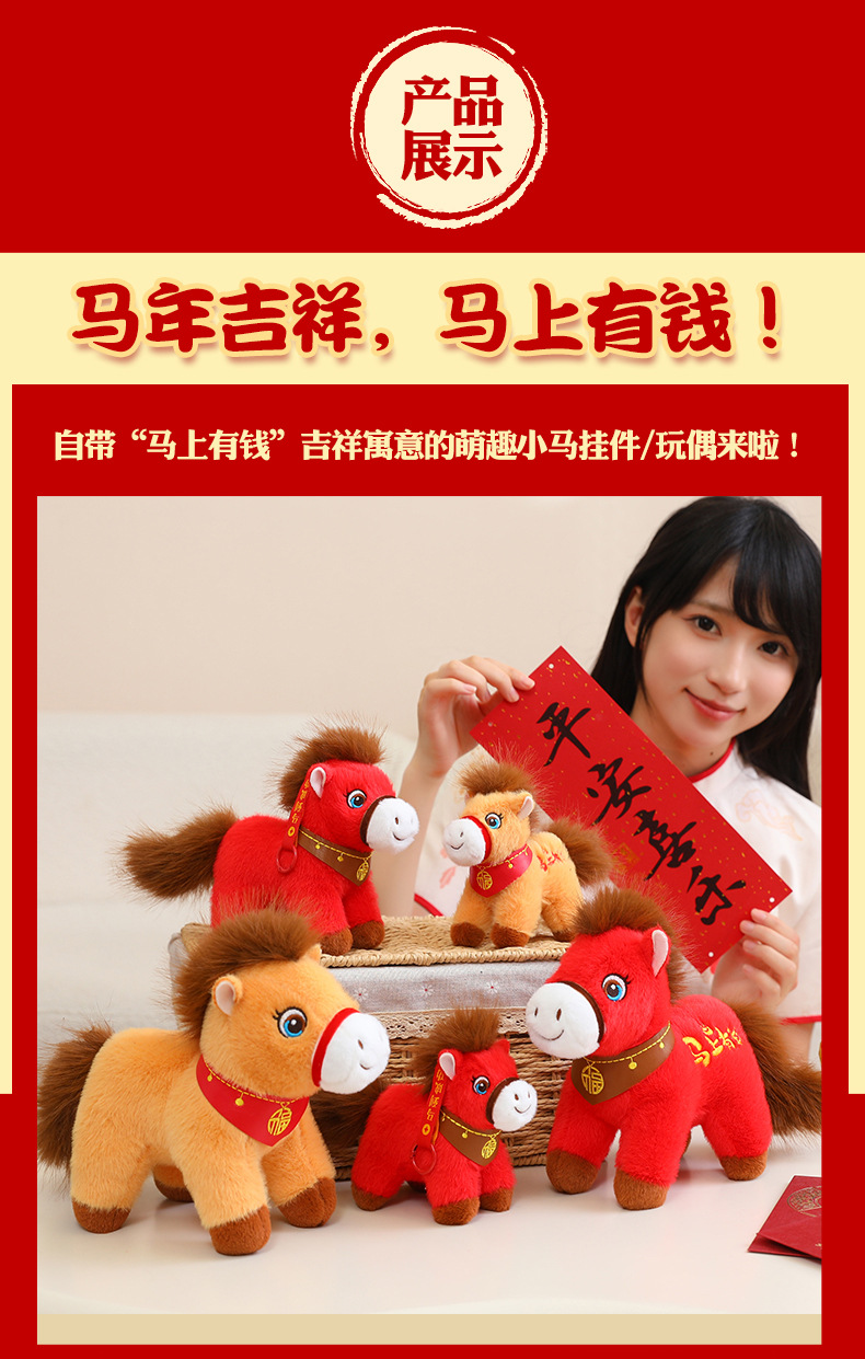 2026年马上有钱马年吉祥物公仔生肖马送朋友礼品毛绒玩具年会礼品