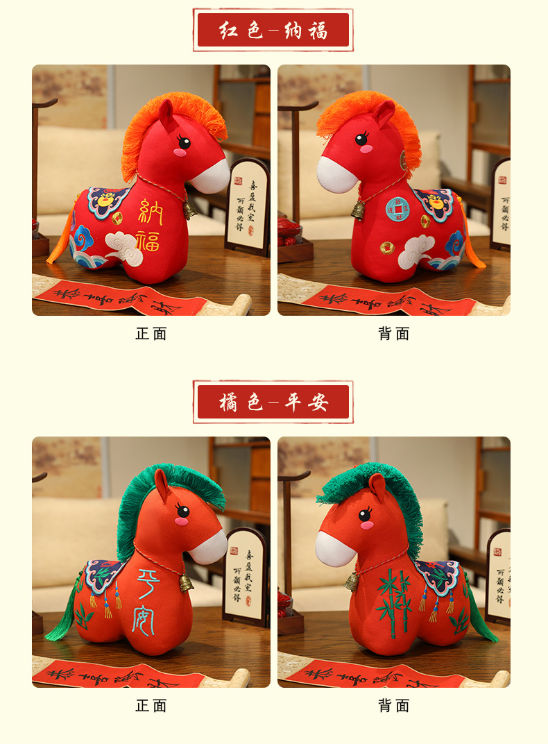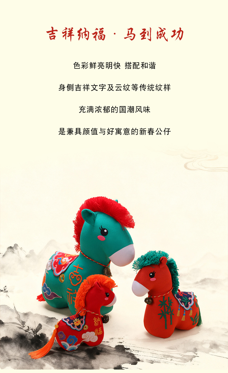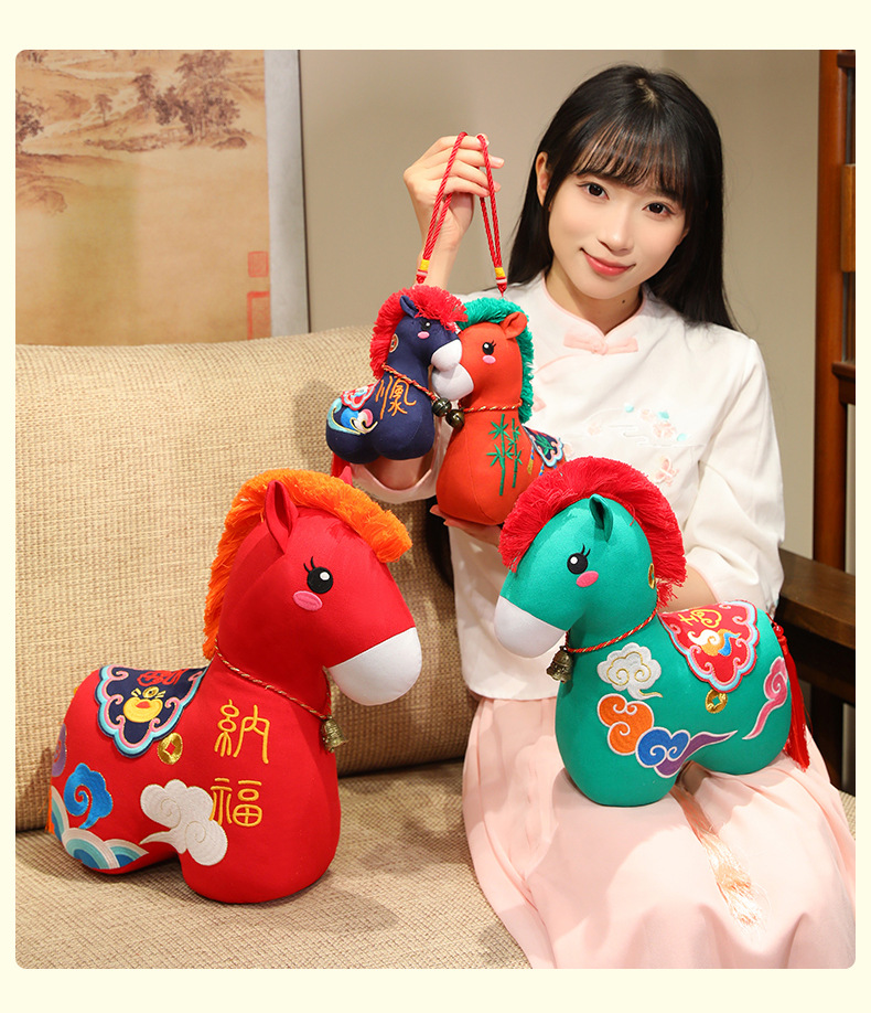 国风布艺小马玩偶2026马年吉祥物公仔生肖马毛绒玩具年会新年礼物