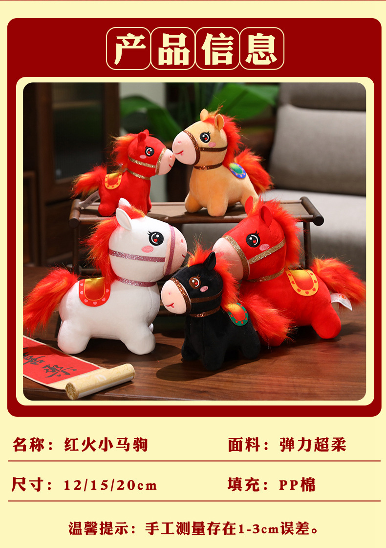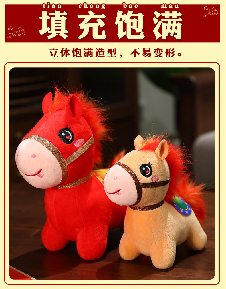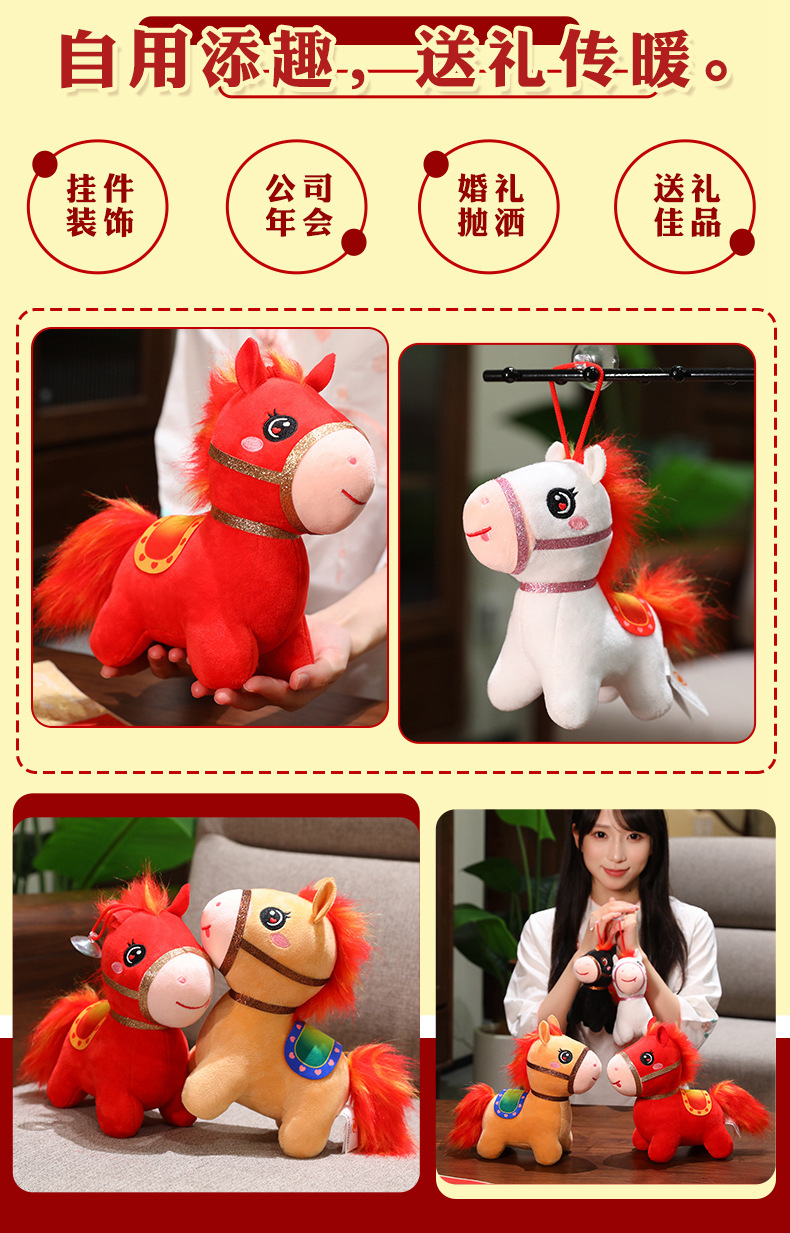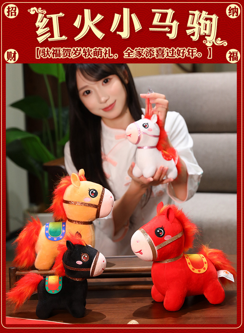 马年吉祥物红火小马驹公仔新年挂件玩偶毛绒玩具生肖马抓机娃娃