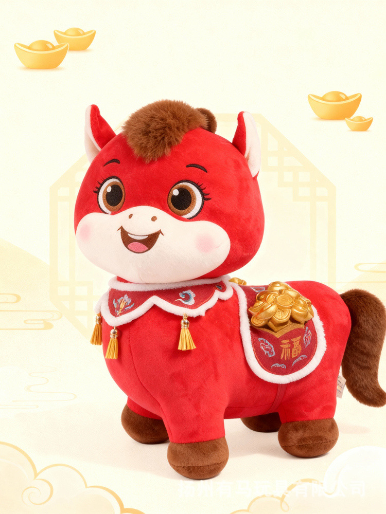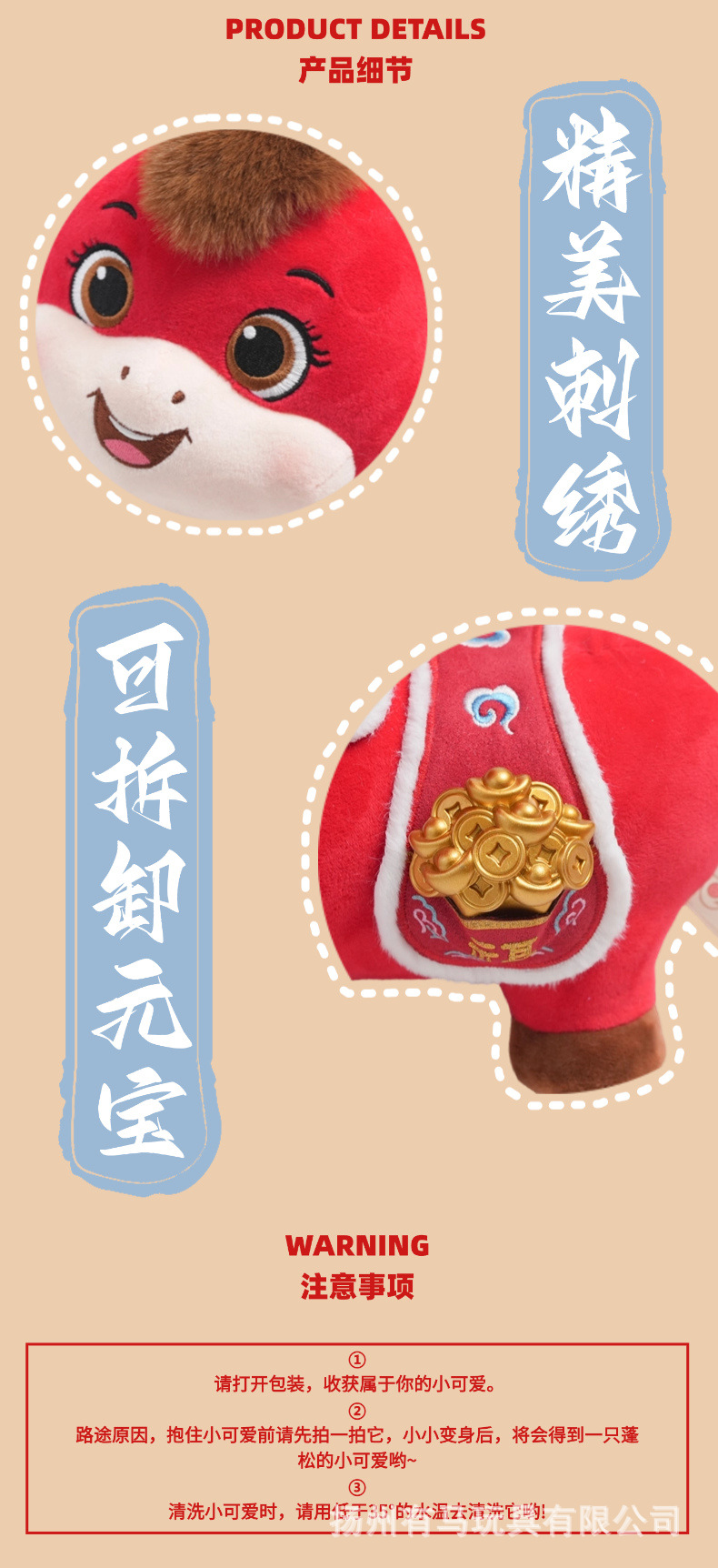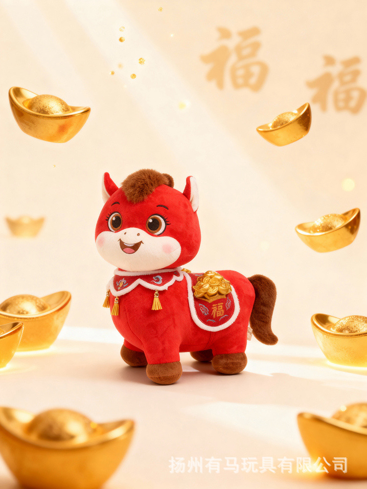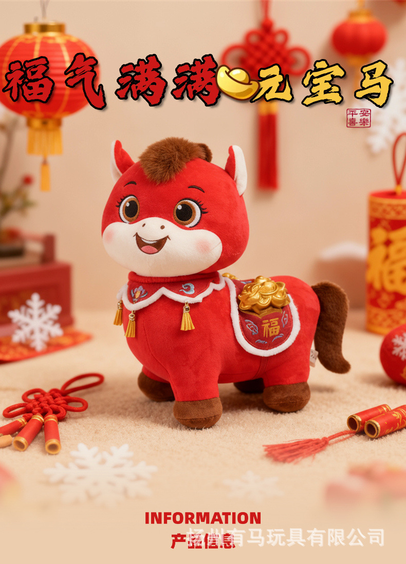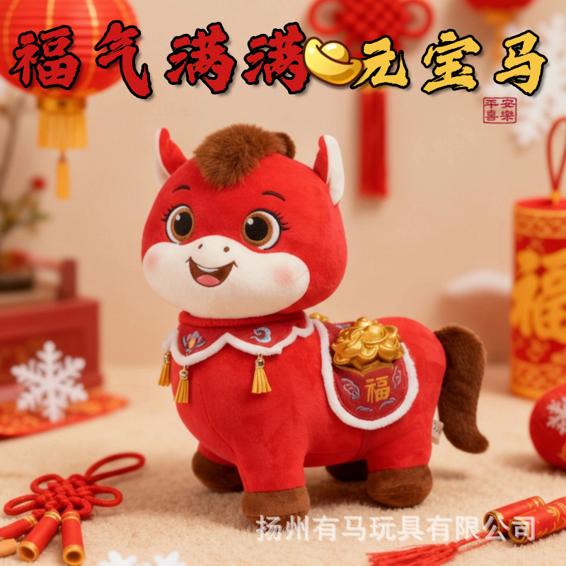 新品热卖福气满满元宝马公仔马年生肖吉祥物玩偶商务礼品玩具批发