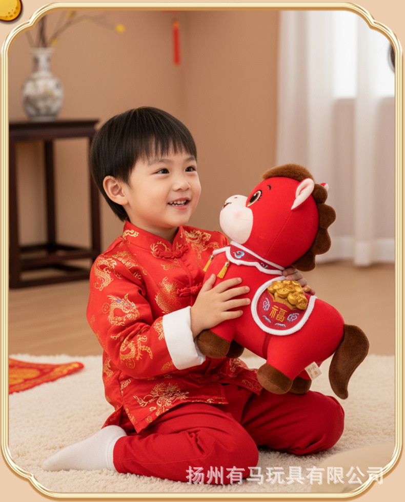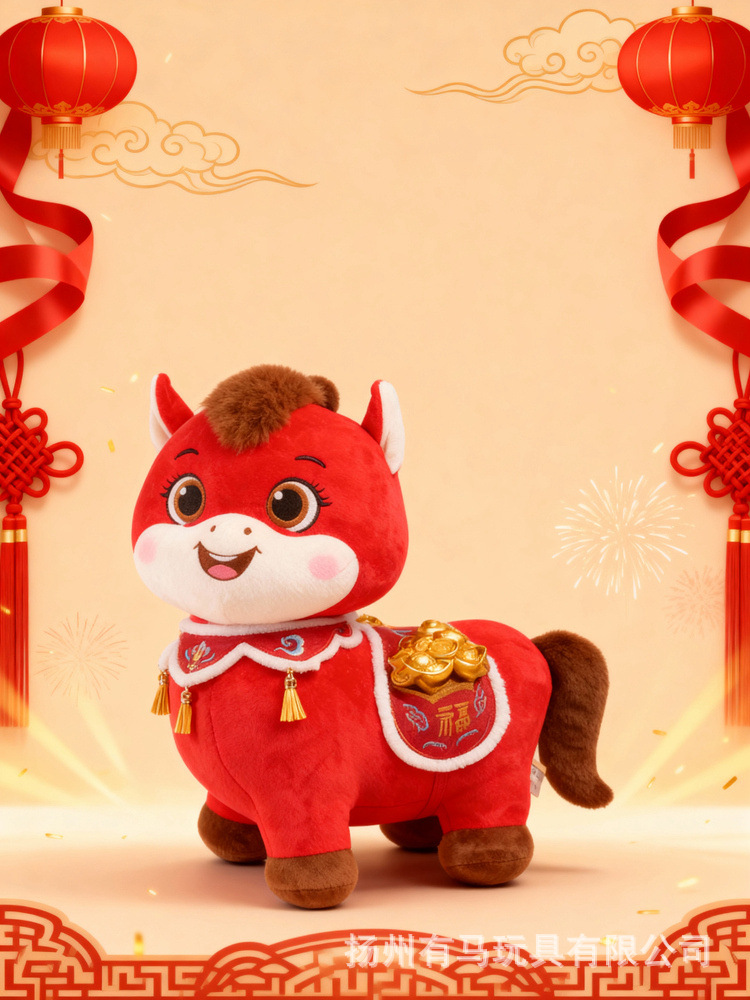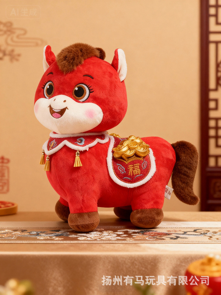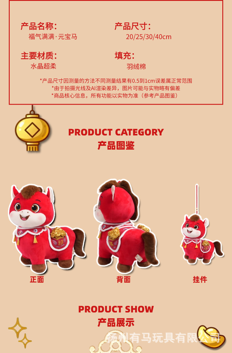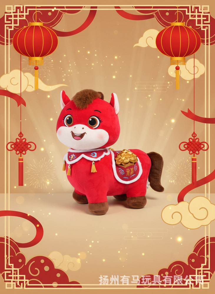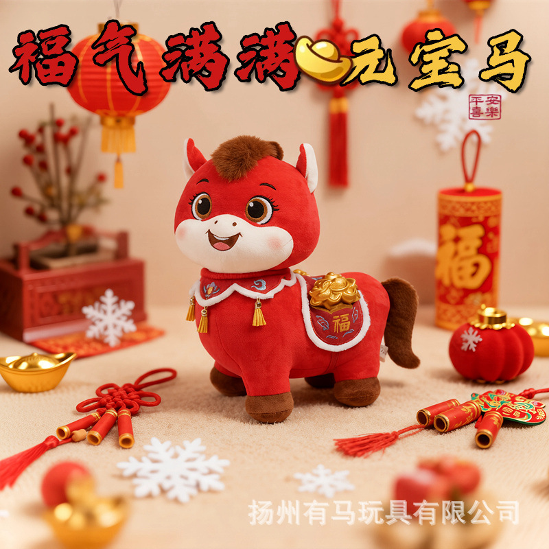 新品热卖福气满满元宝马公仔马年生肖吉祥物玩偶商务礼品玩具批发