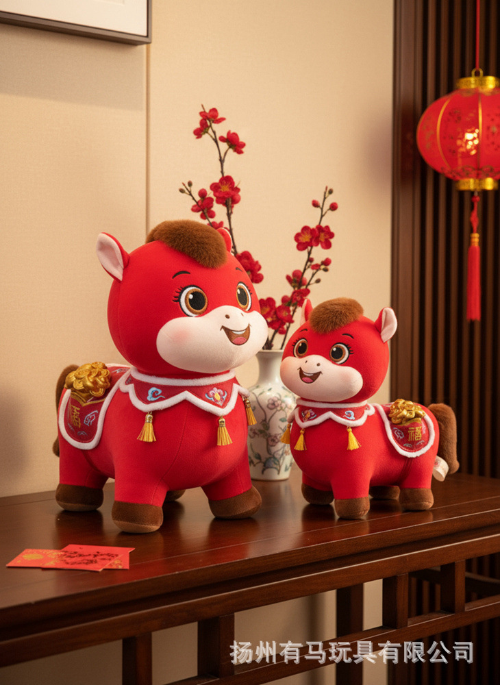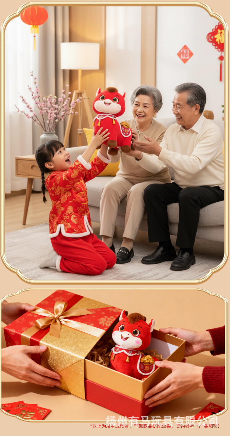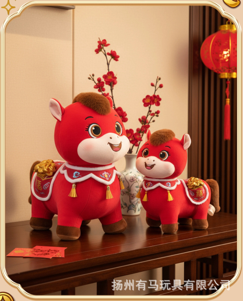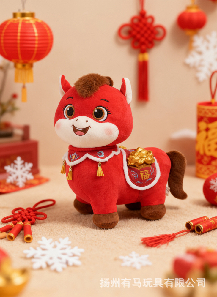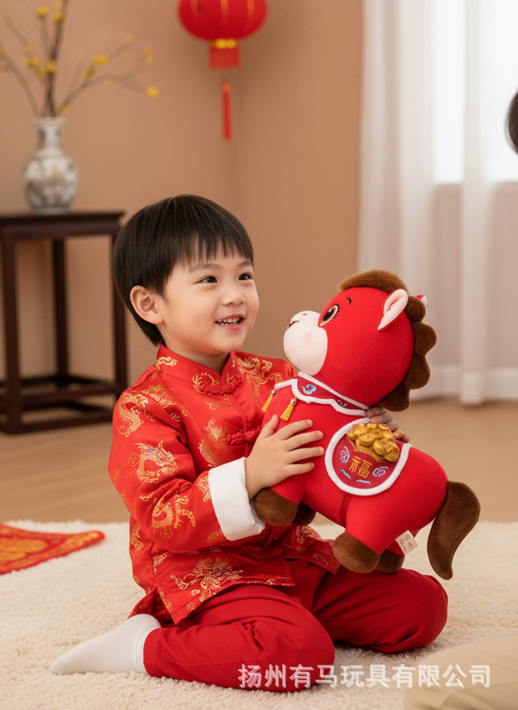新品热卖福气满满元宝马公仔马年生肖吉祥物玩偶商务礼品玩具批发