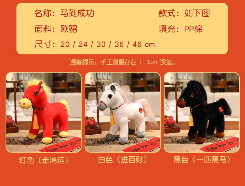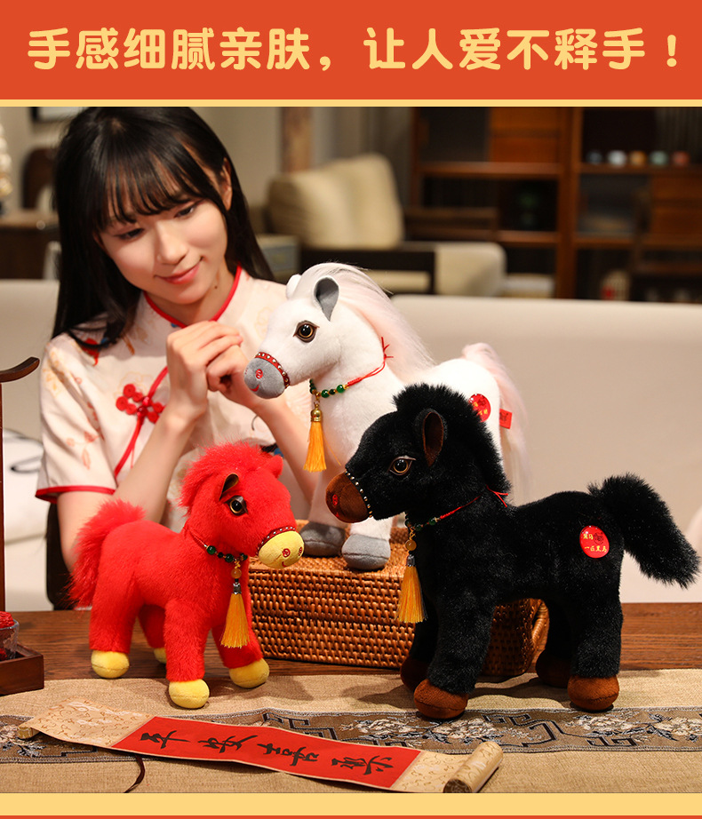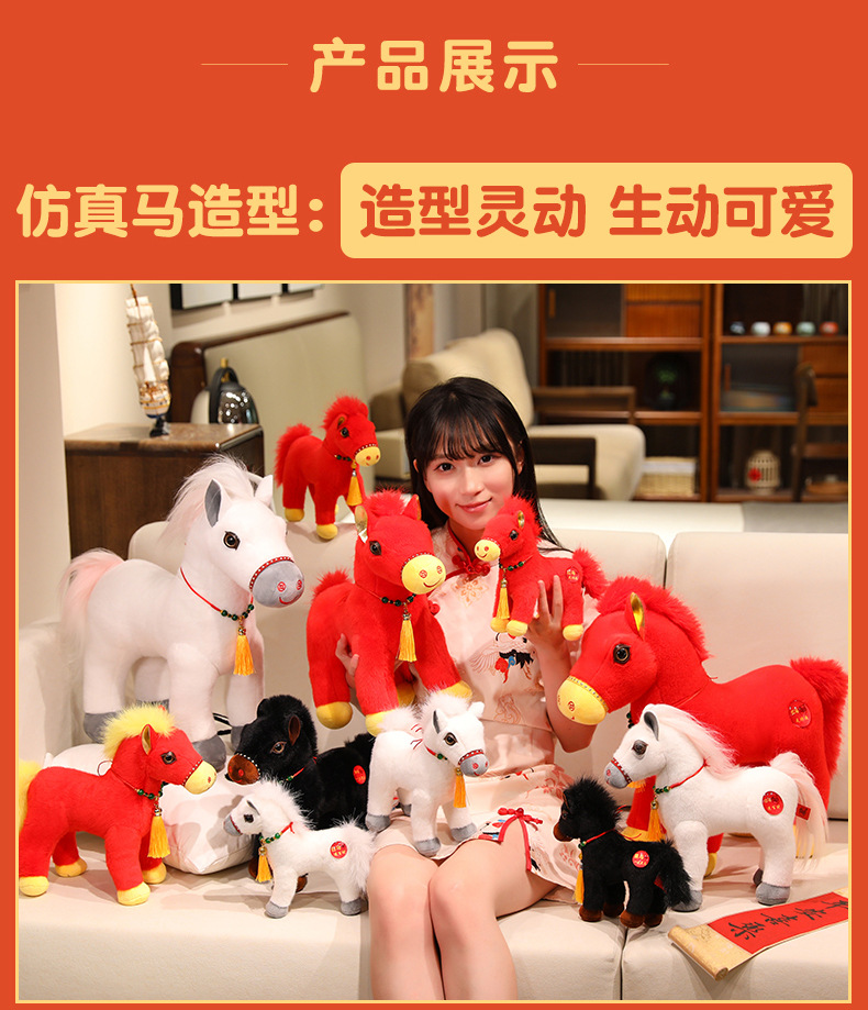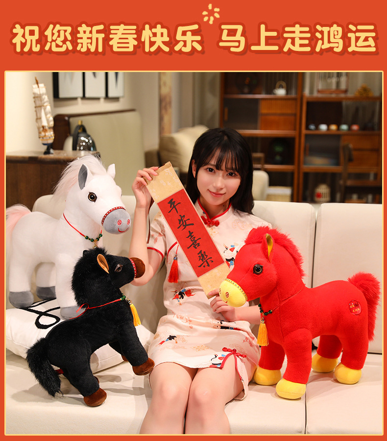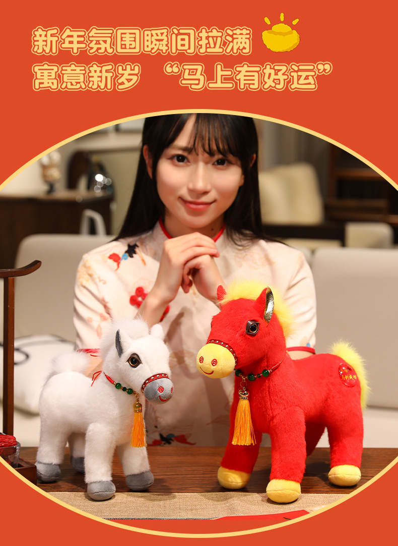 2026小马公仔毛绒玩具新年玩偶马年吉祥物年会摆件礼物鸿运马批发