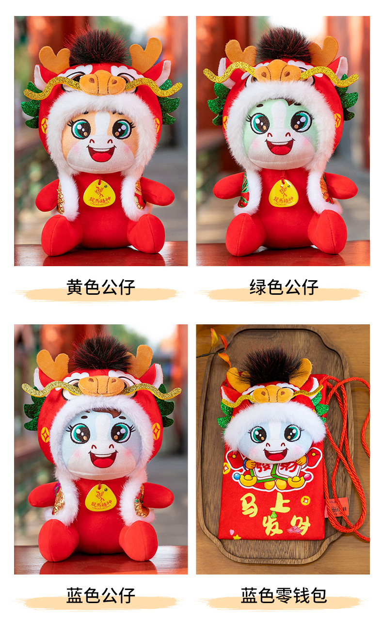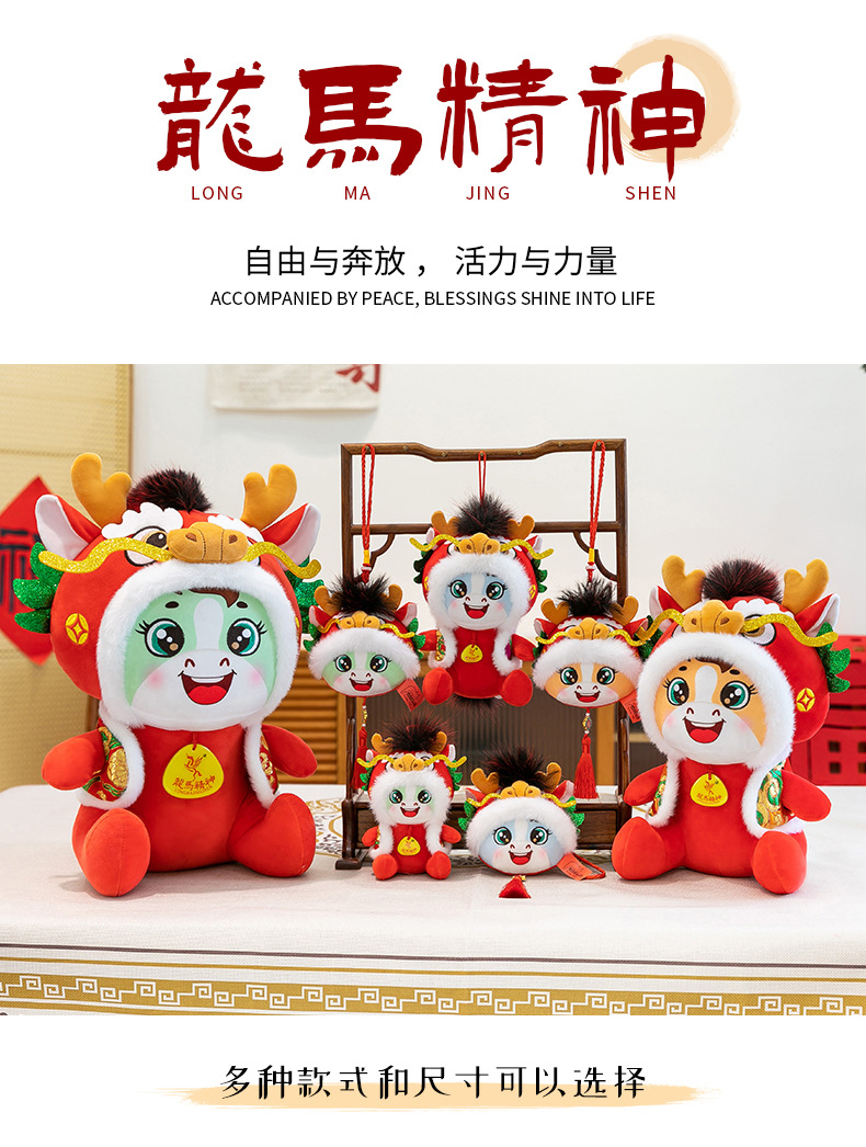 马年吉祥物2026年生肖小马福袋龙马娃娃毛绒玩具春节喜庆玩偶摆件