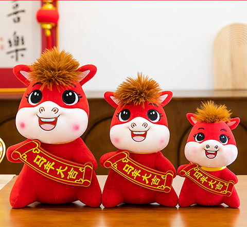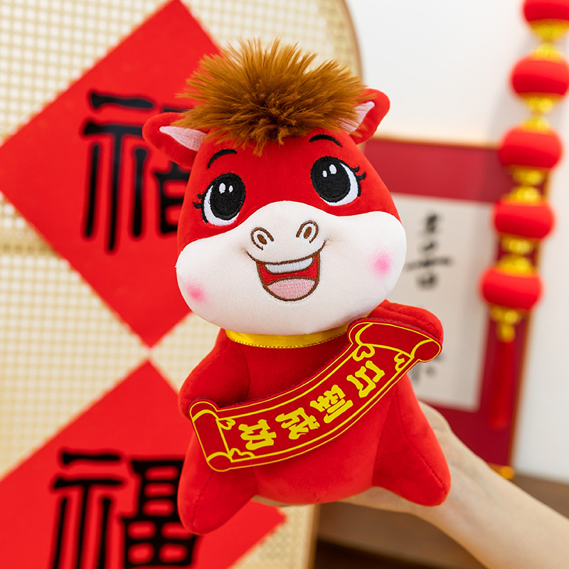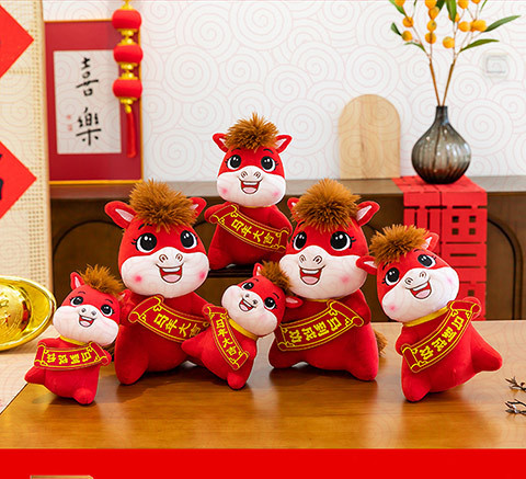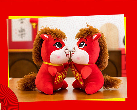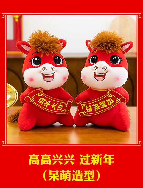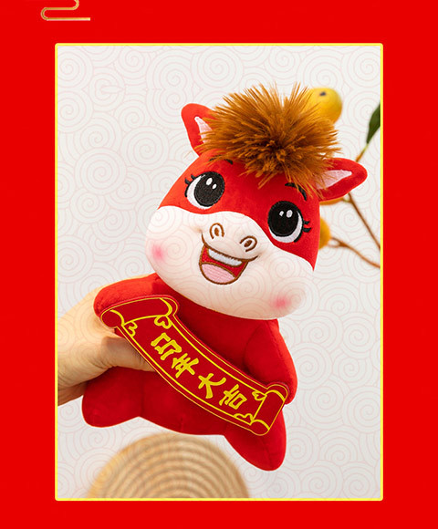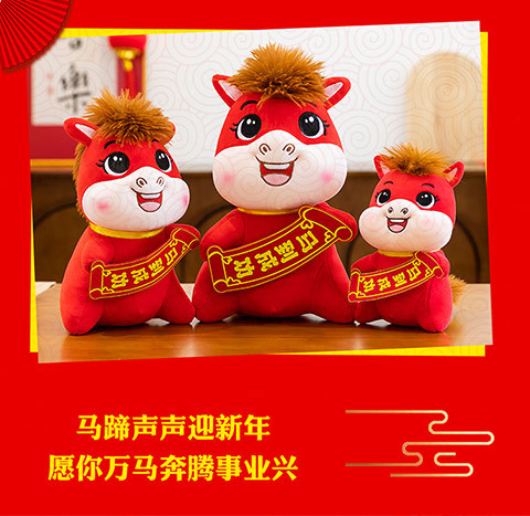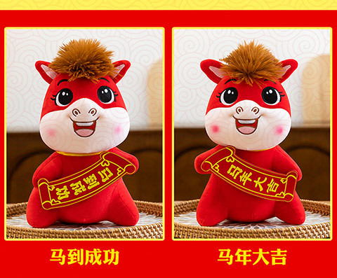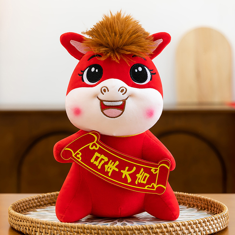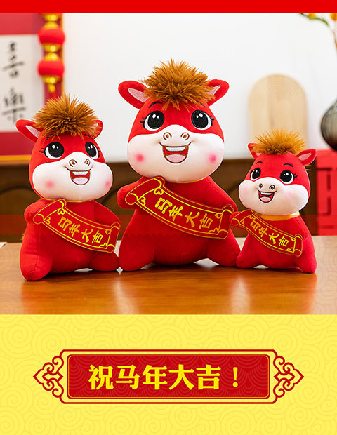 马年吉祥物公仔毛绒玩具红色生肖送福对联马玩偶新年活动礼物LOGO