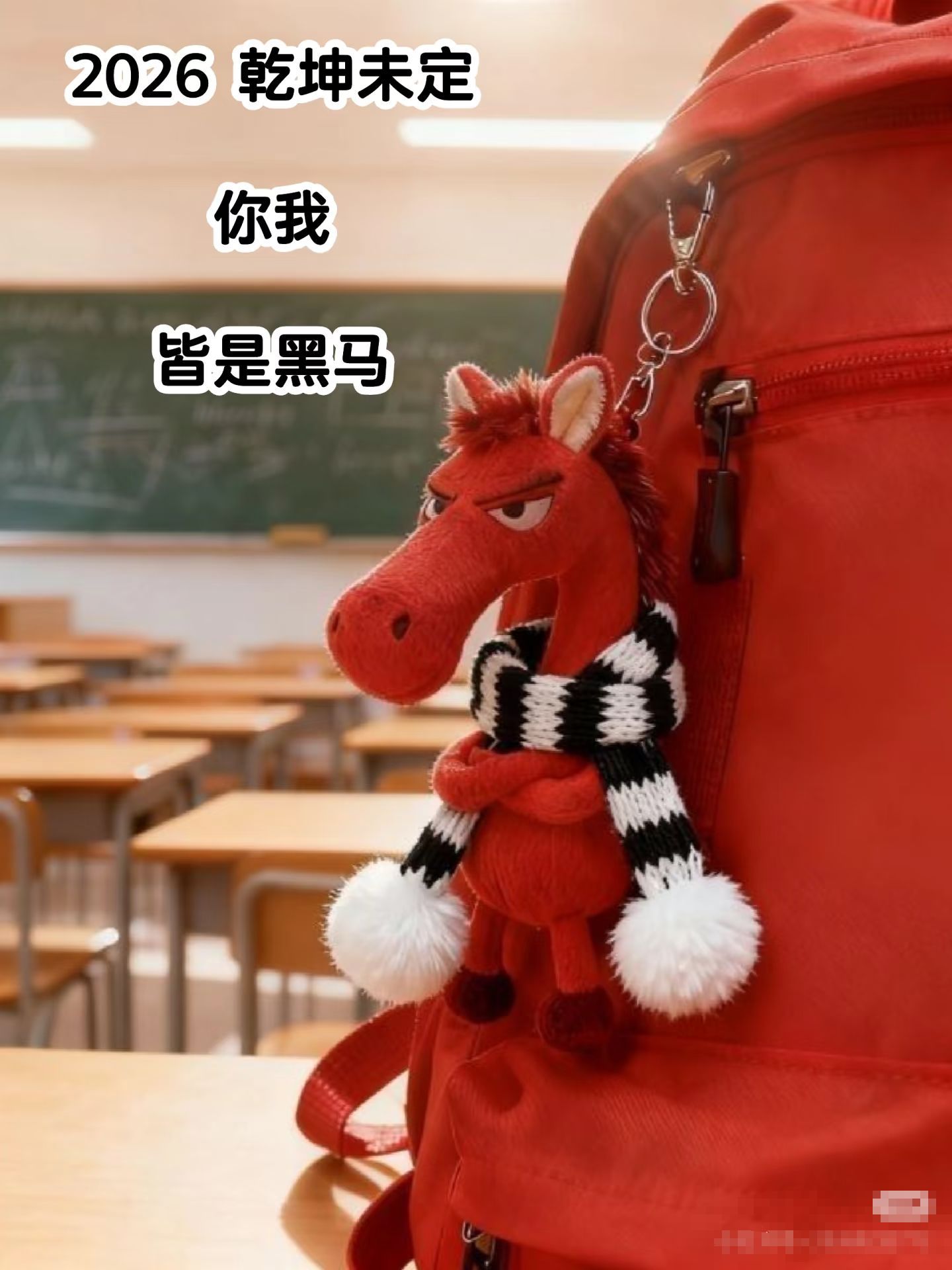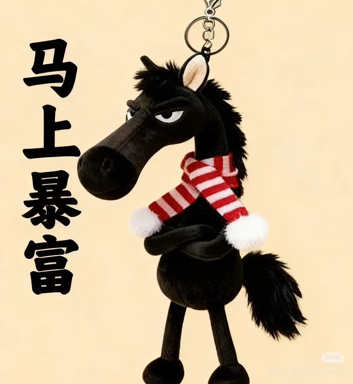 天选黑马2026年马年毛绒吉祥物新年礼物高冷黑马玩偶包包挂件红书