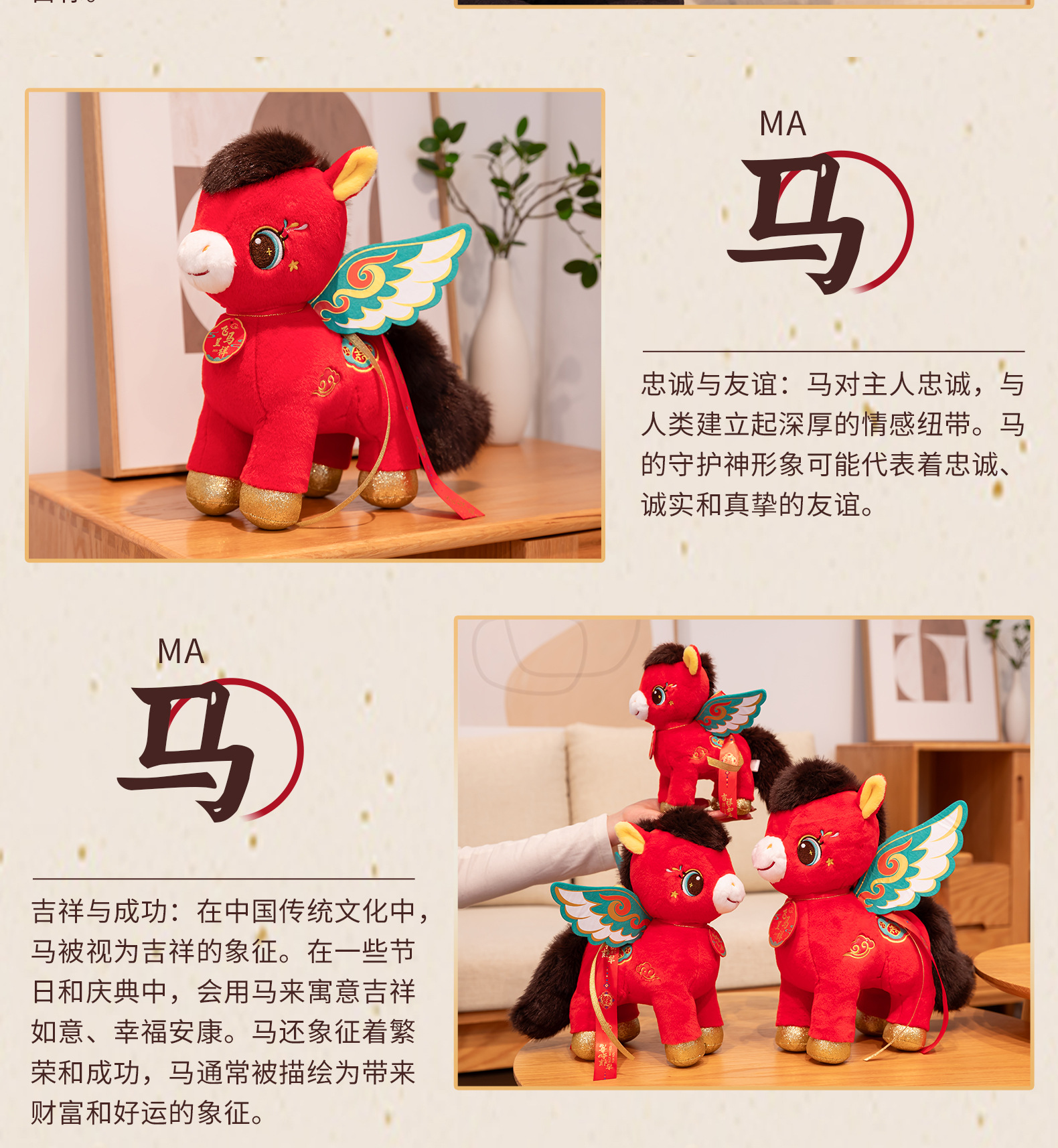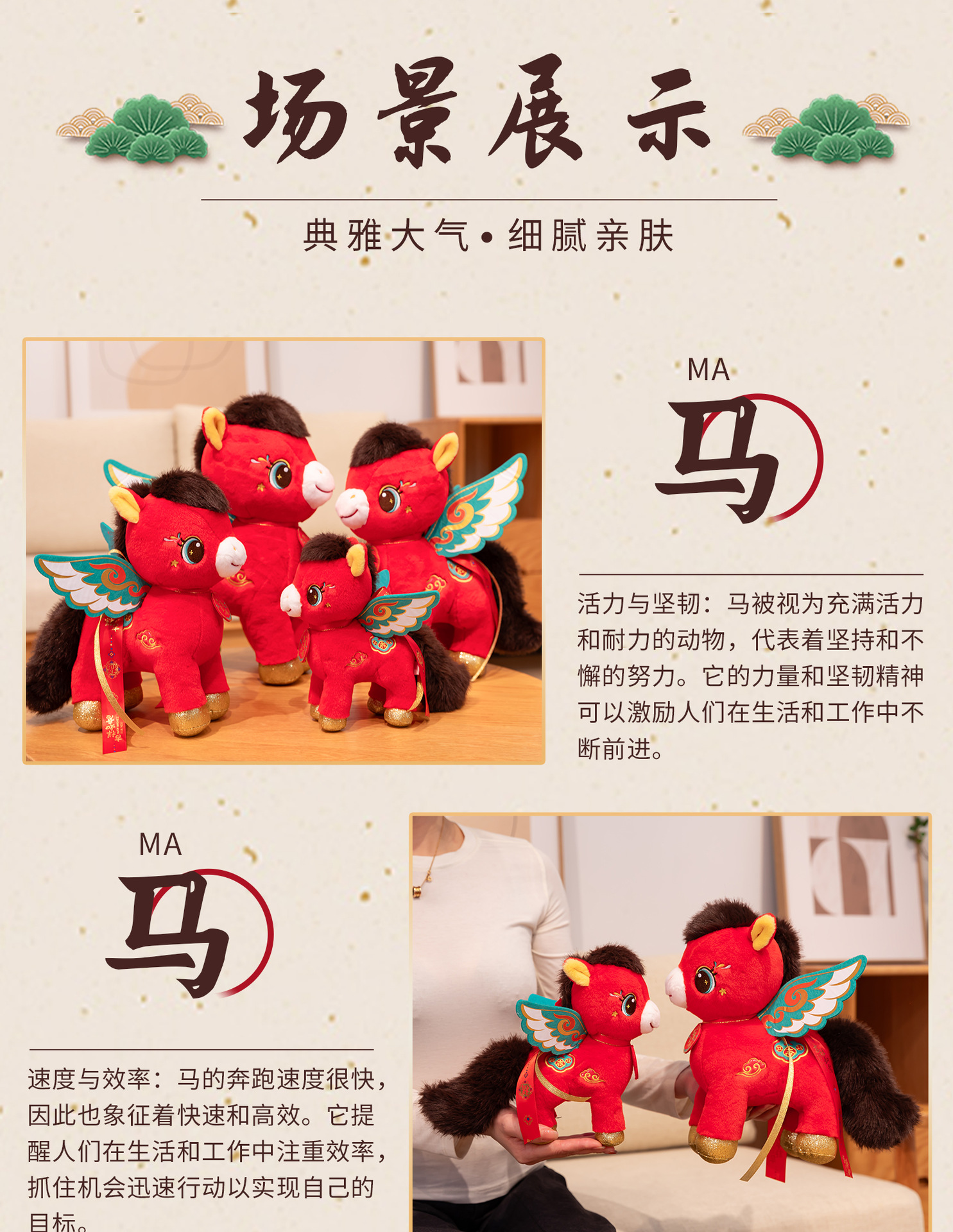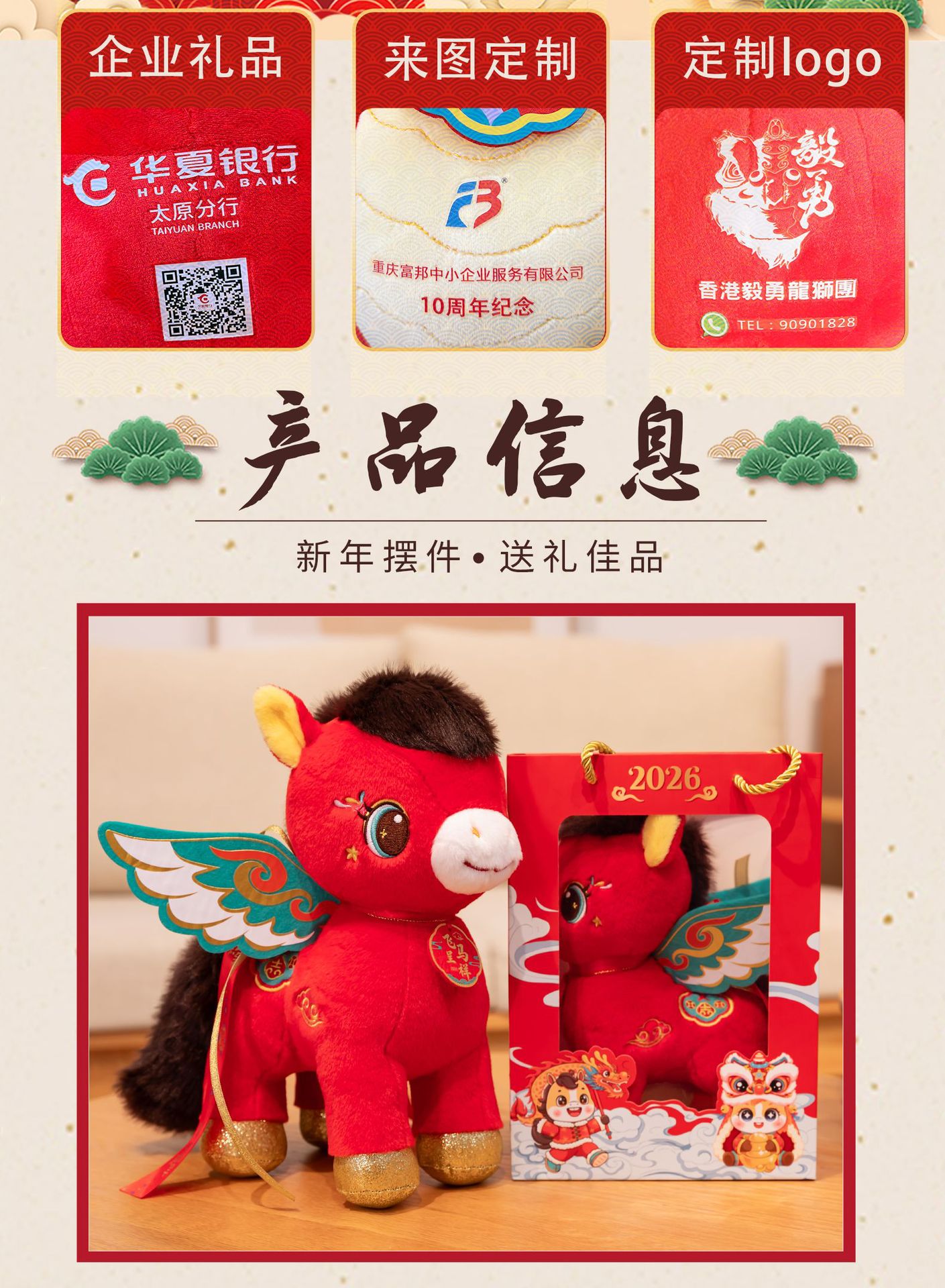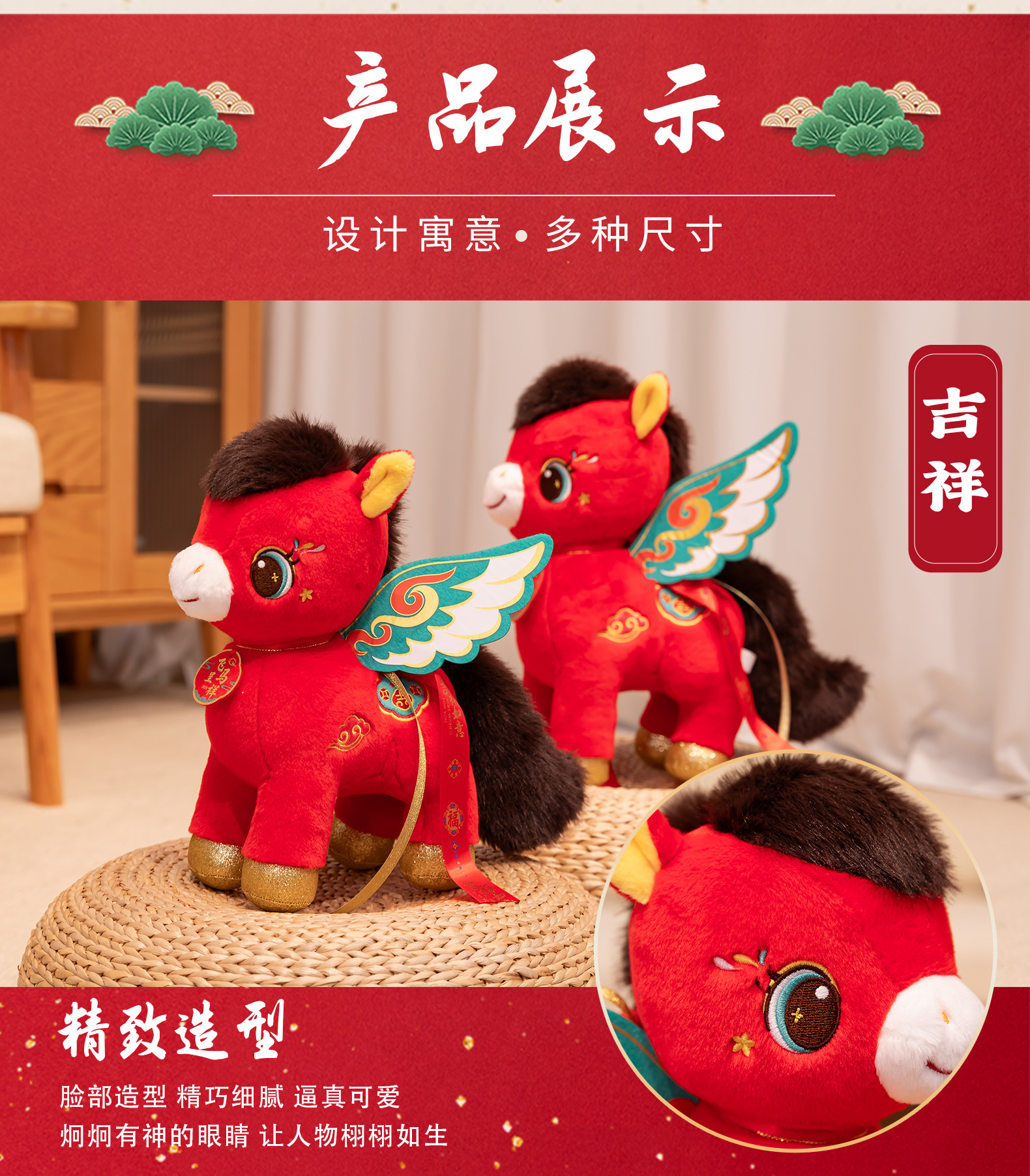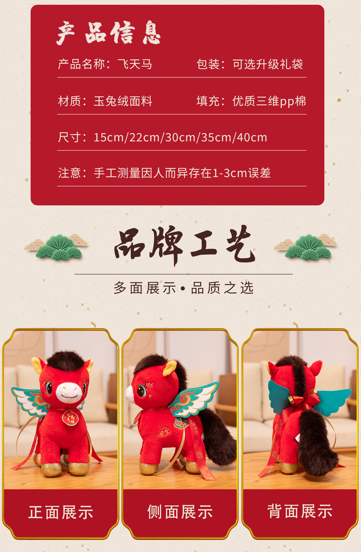 马年吉祥物公仔飞马呈祥飞天马玩偶生肖毛绒玩具娃娃年会礼品定制