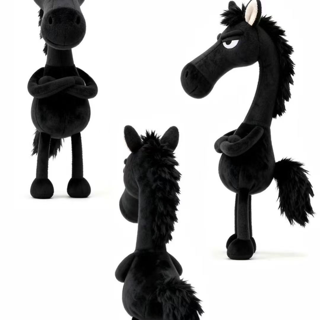 2026年生肖马年吉祥物小马玩偶天选高冷黑马毛绒公仔娃娃包包挂件