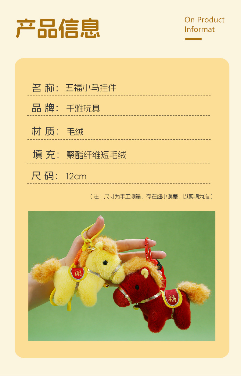 2026马年吉祥物五福小马公仔玩偶毛绒玩具钥匙扣生肖挂件年会礼品