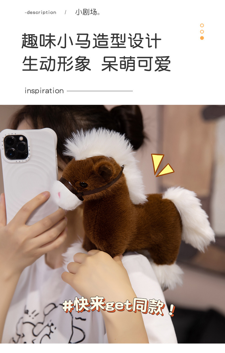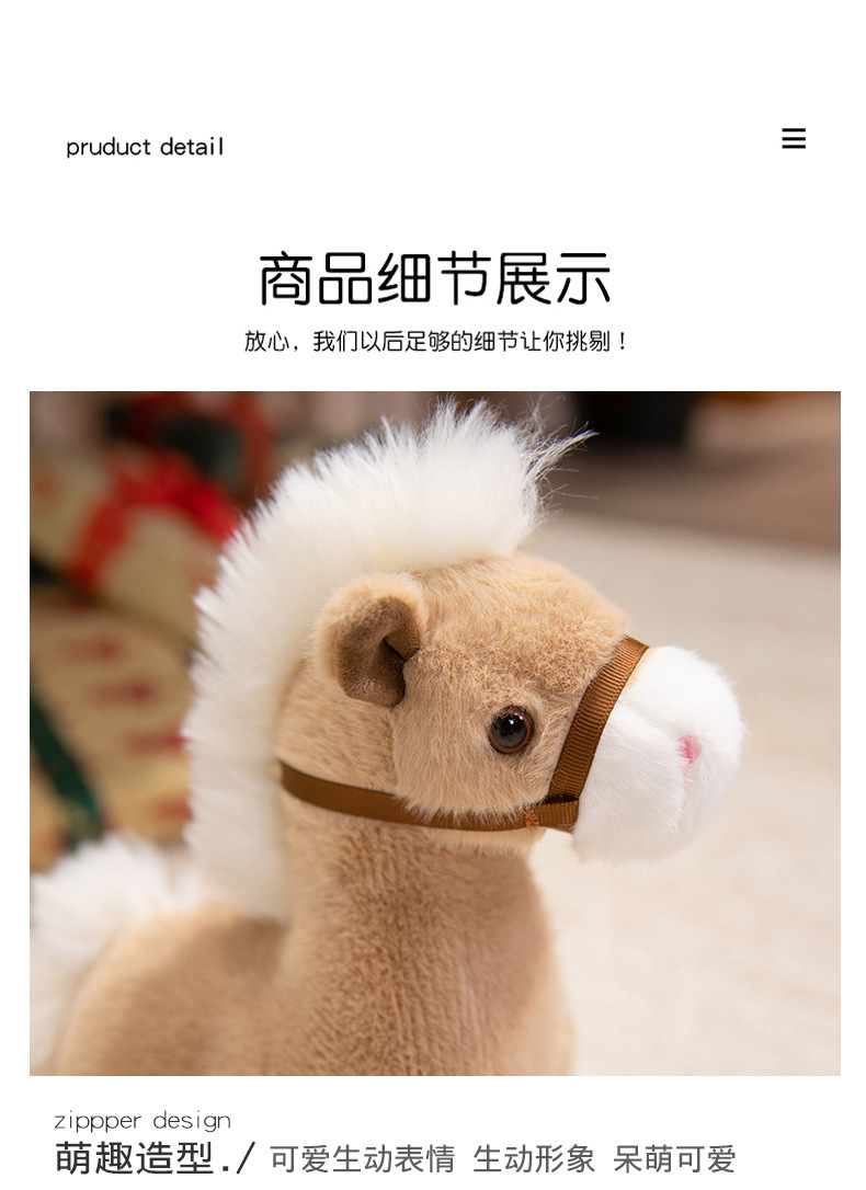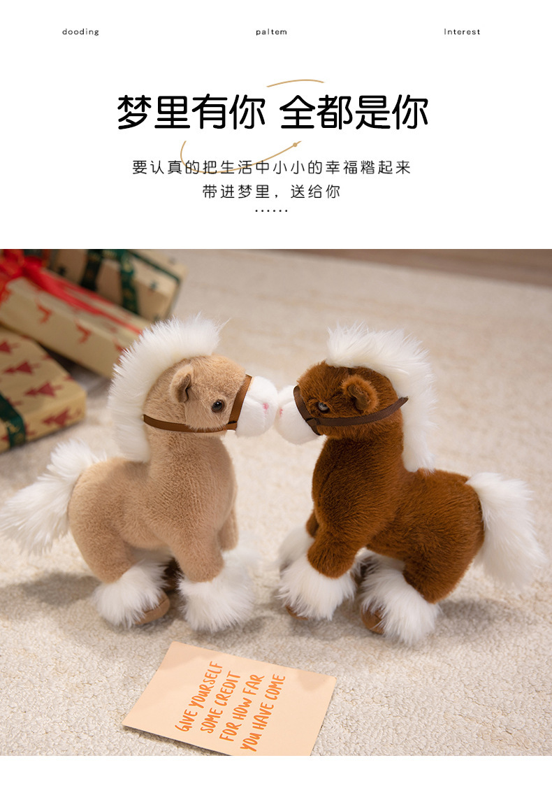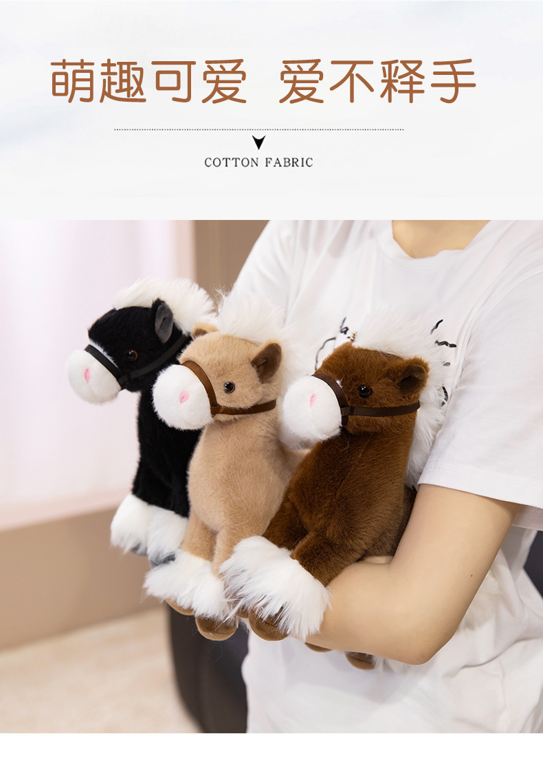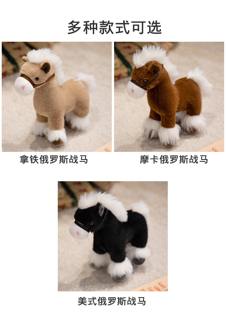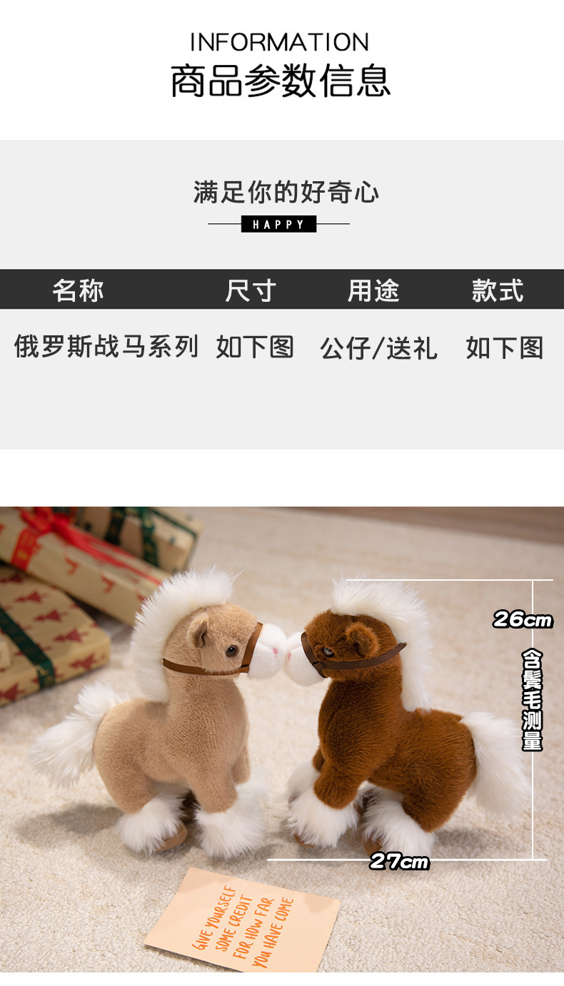 跨境新款仿真小马公仔毛绒玩具卡通俄罗斯战马玩偶摆件马年吉祥物