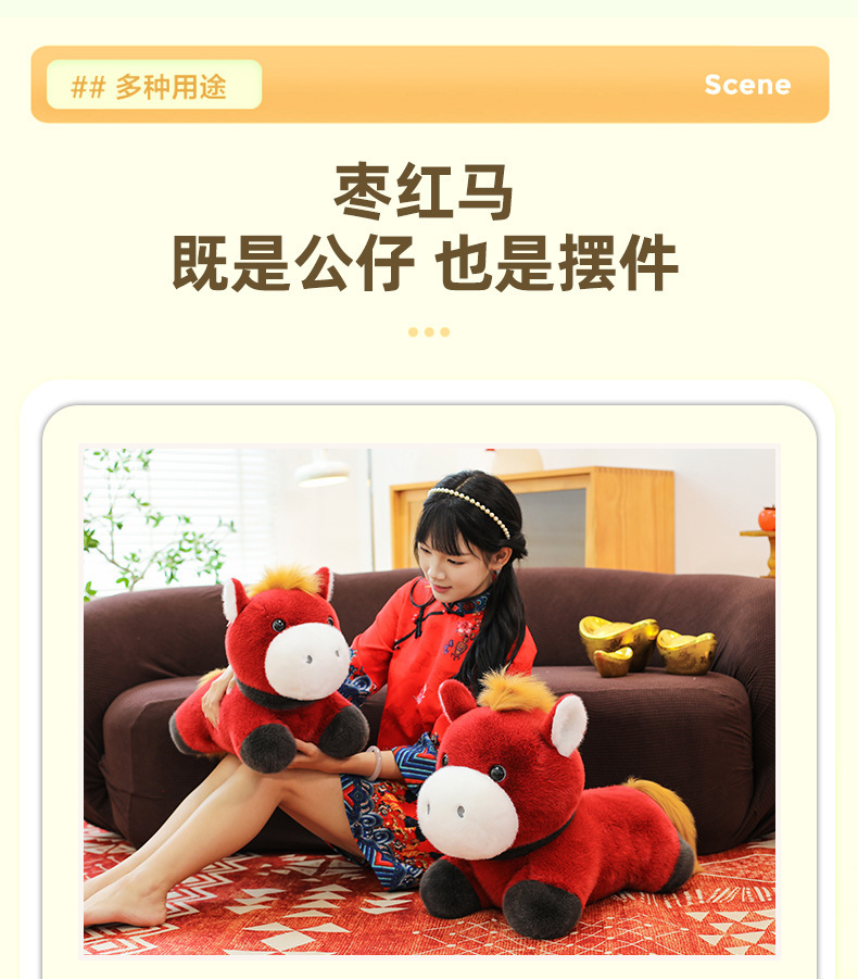 2026马年吉祥物超柔枣红嘟嘟马抱枕毛绒玩具新年礼物年会奖品玩偶