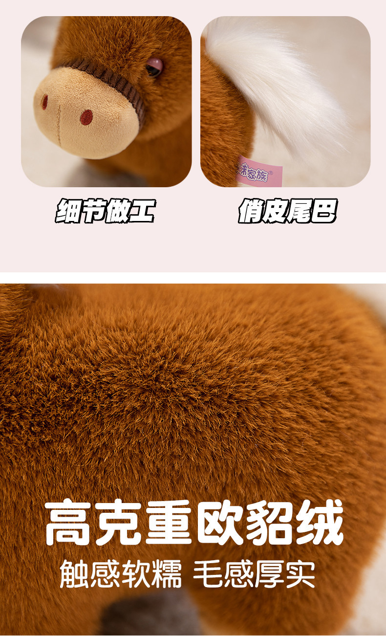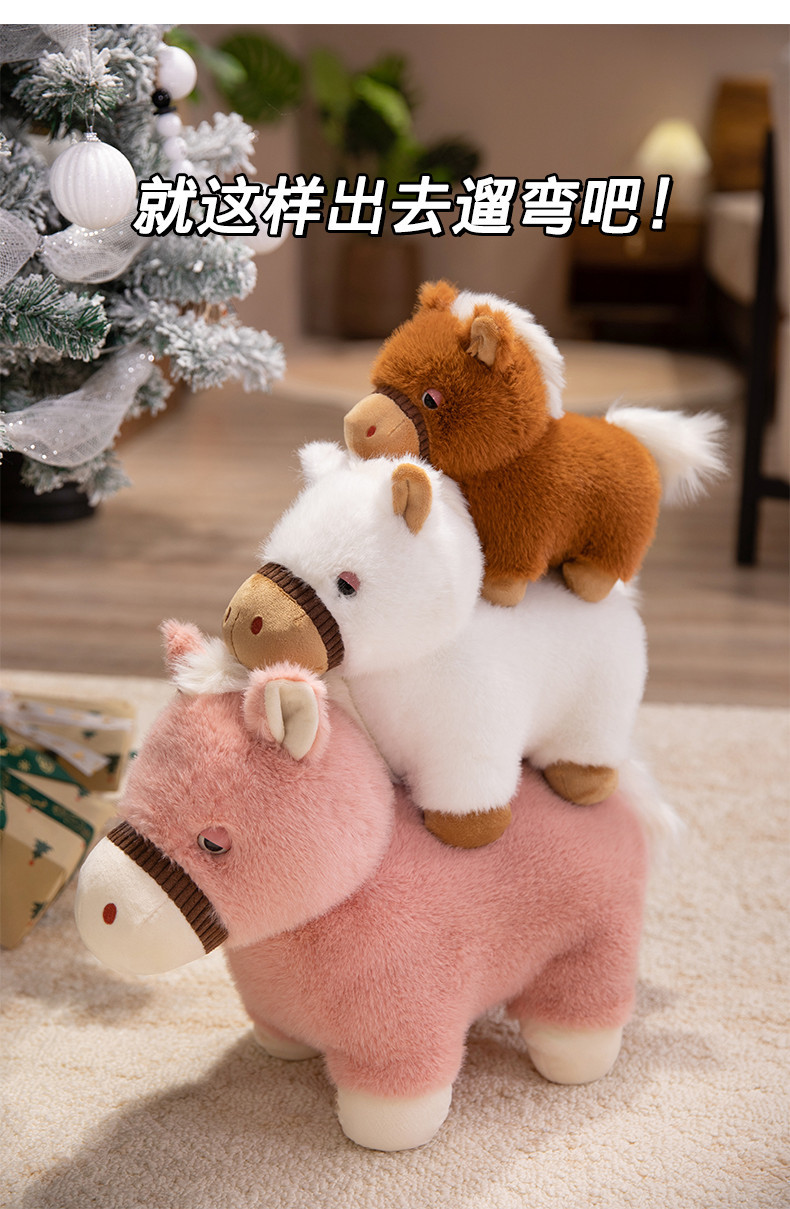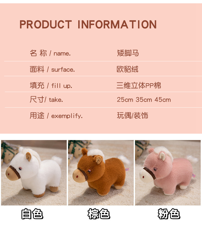 跨境小马玩偶毛绒玩具公仔可爱马年吉祥物矮脚马布娃娃儿童安抚