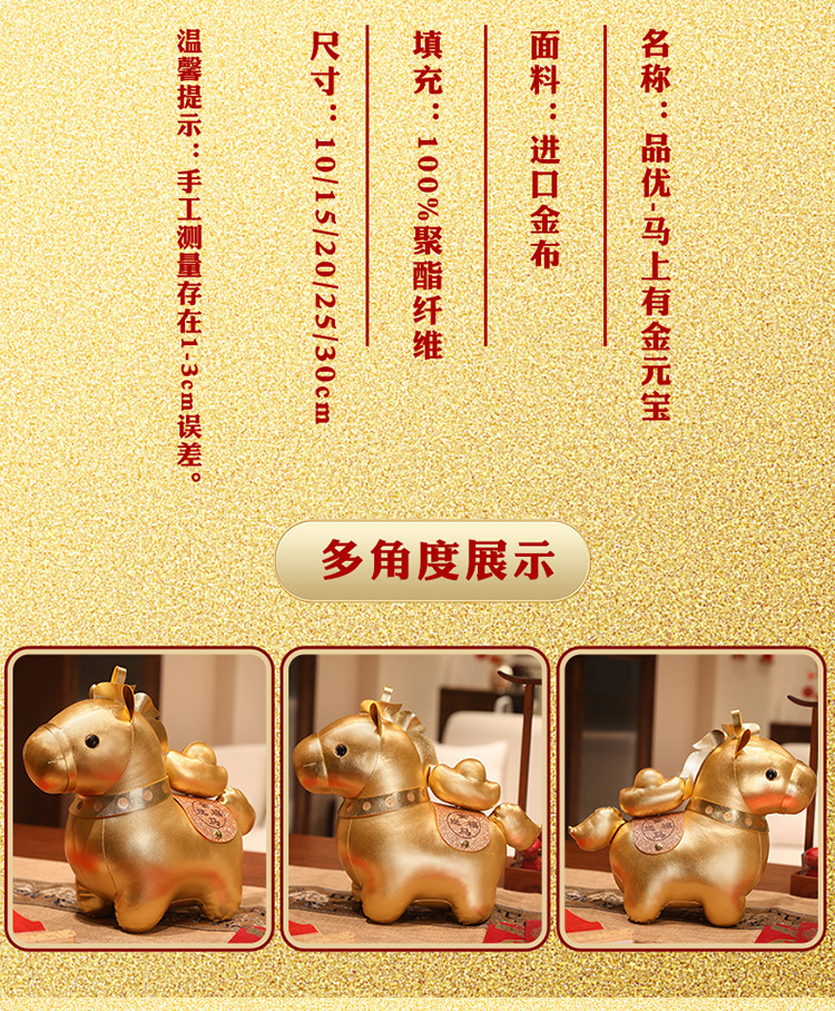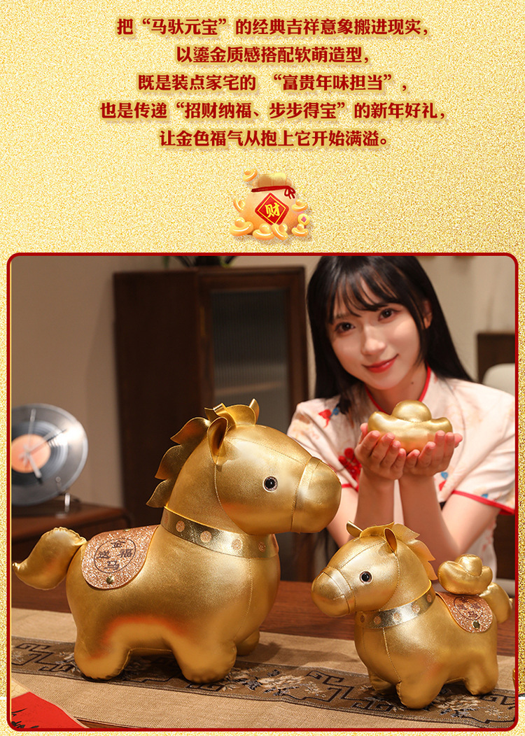 马年吉祥物公仔元宝毛绒玩具金马送福挂件玩偶生肖钥匙扣挂饰礼品