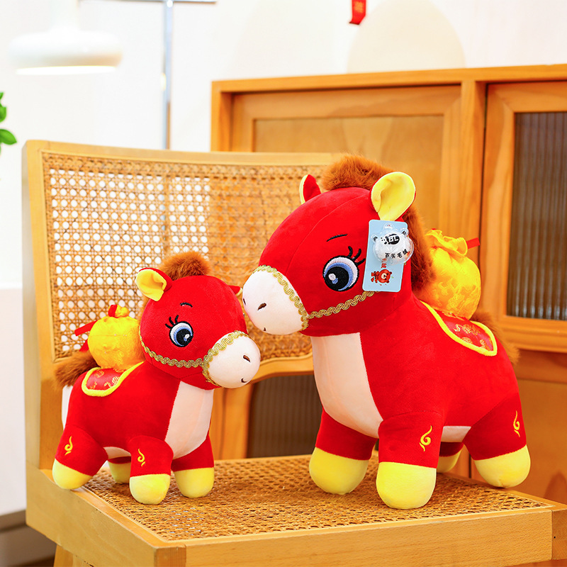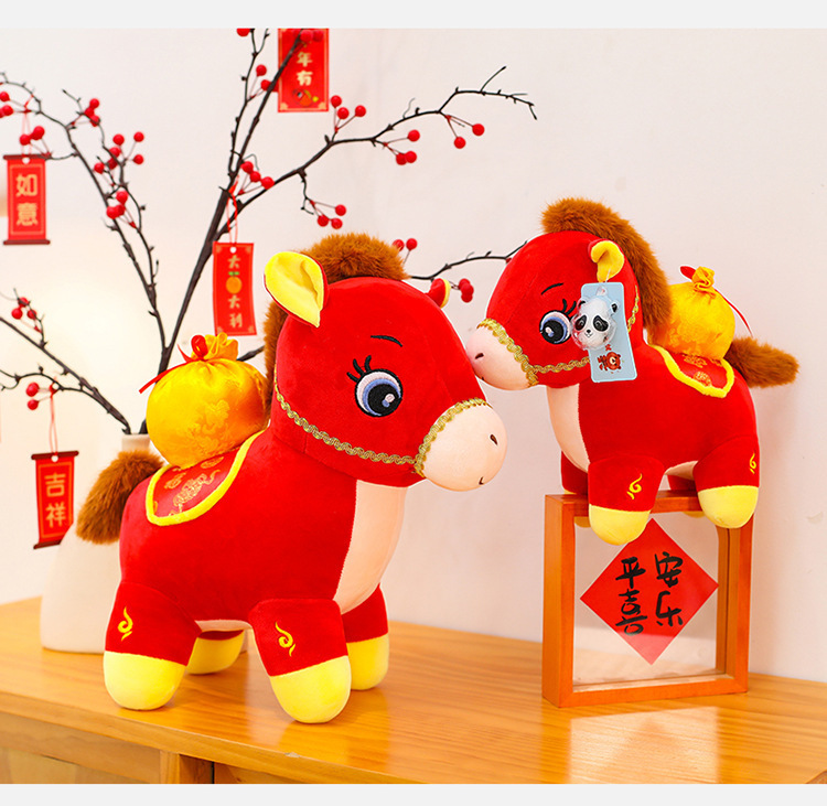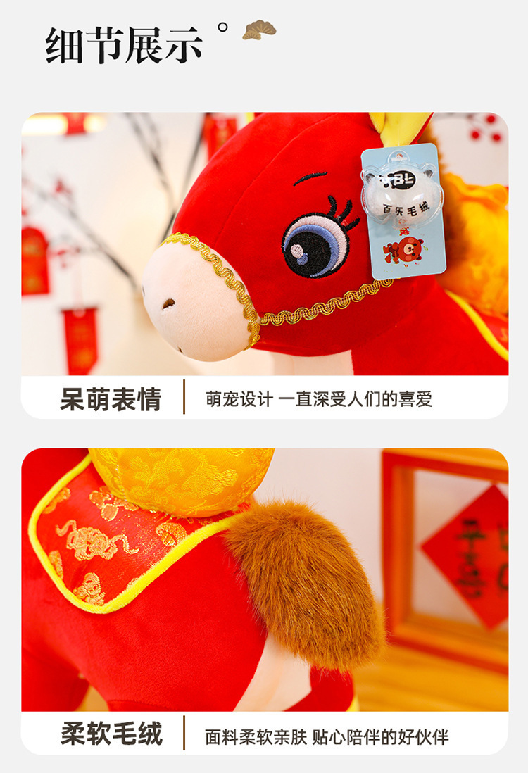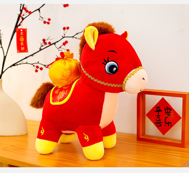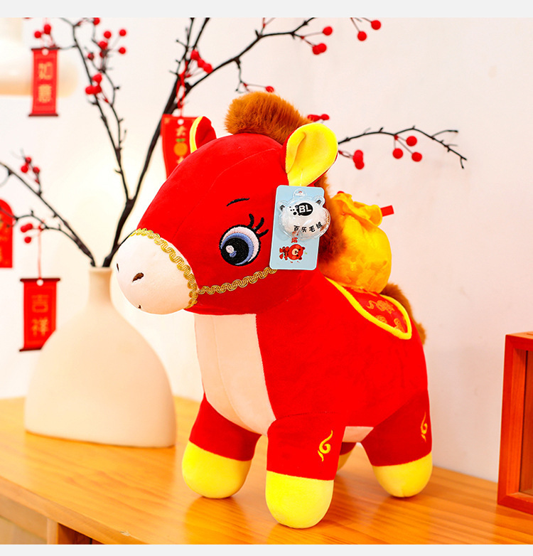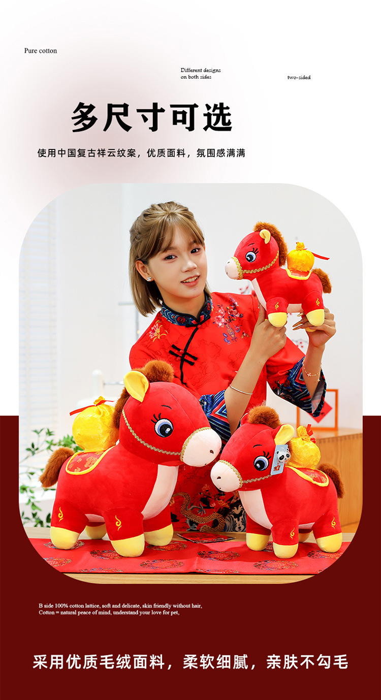 2026马年吉祥物公仔春节喜庆小马驮福毛绒玩具公司年会礼品logo