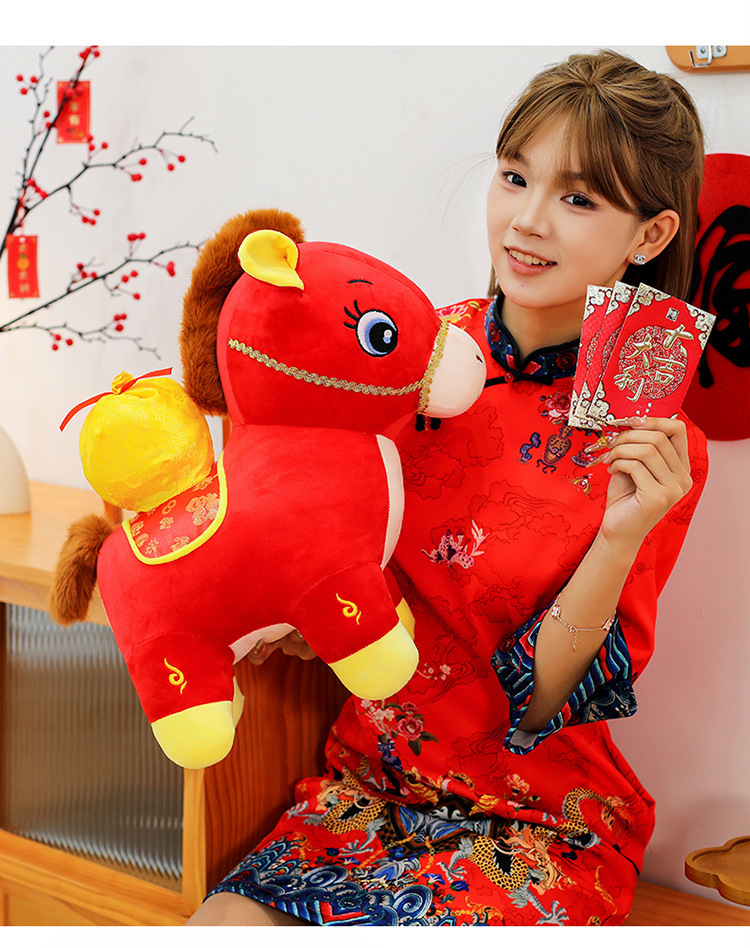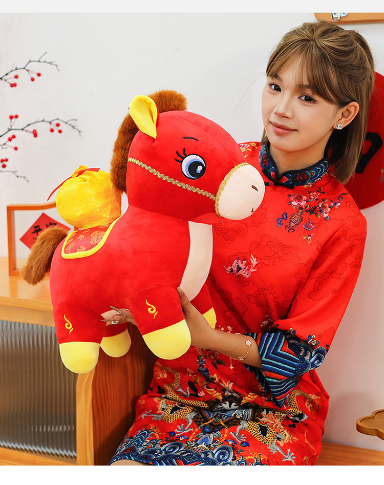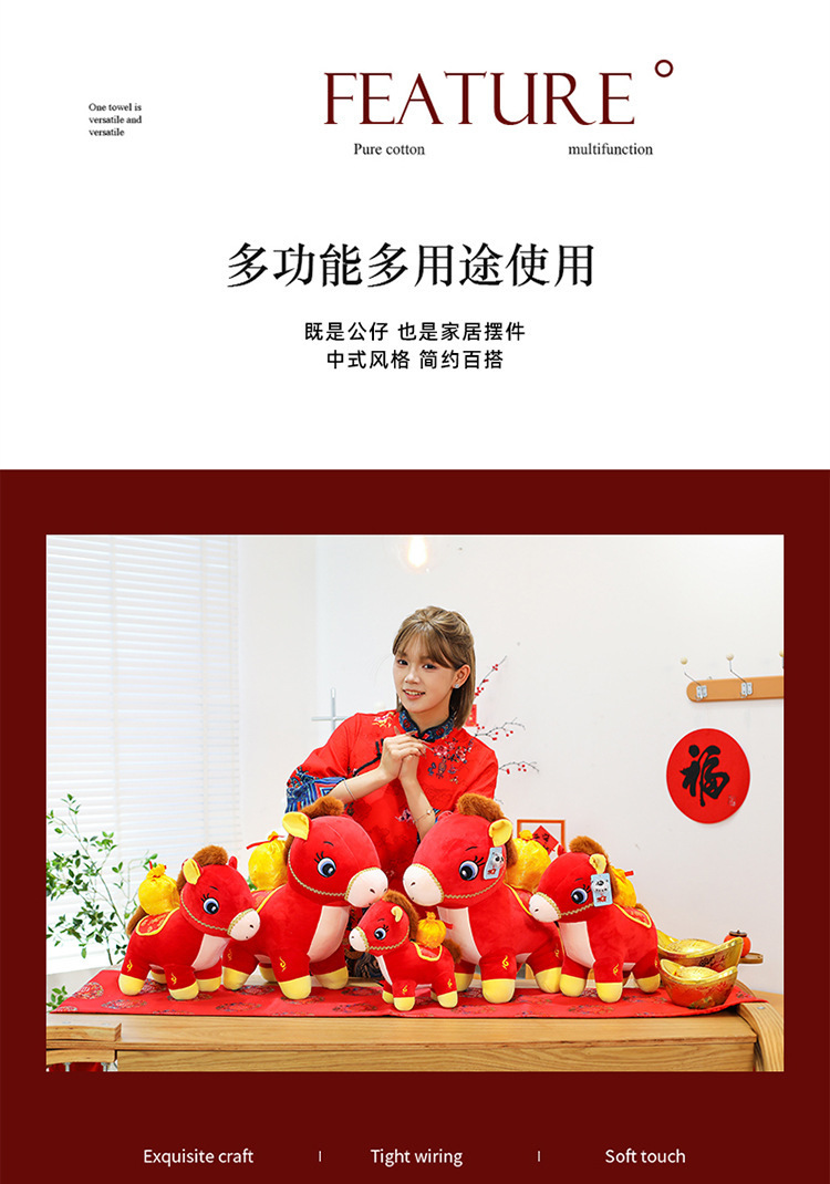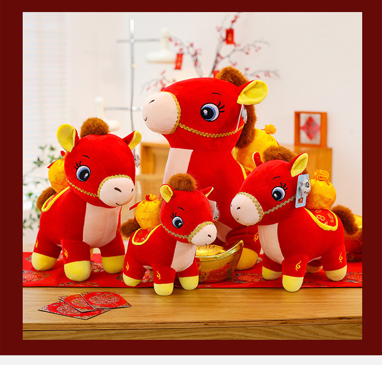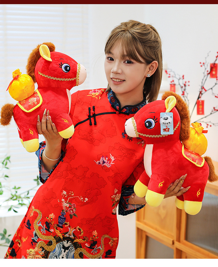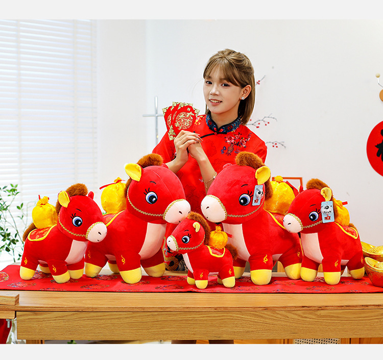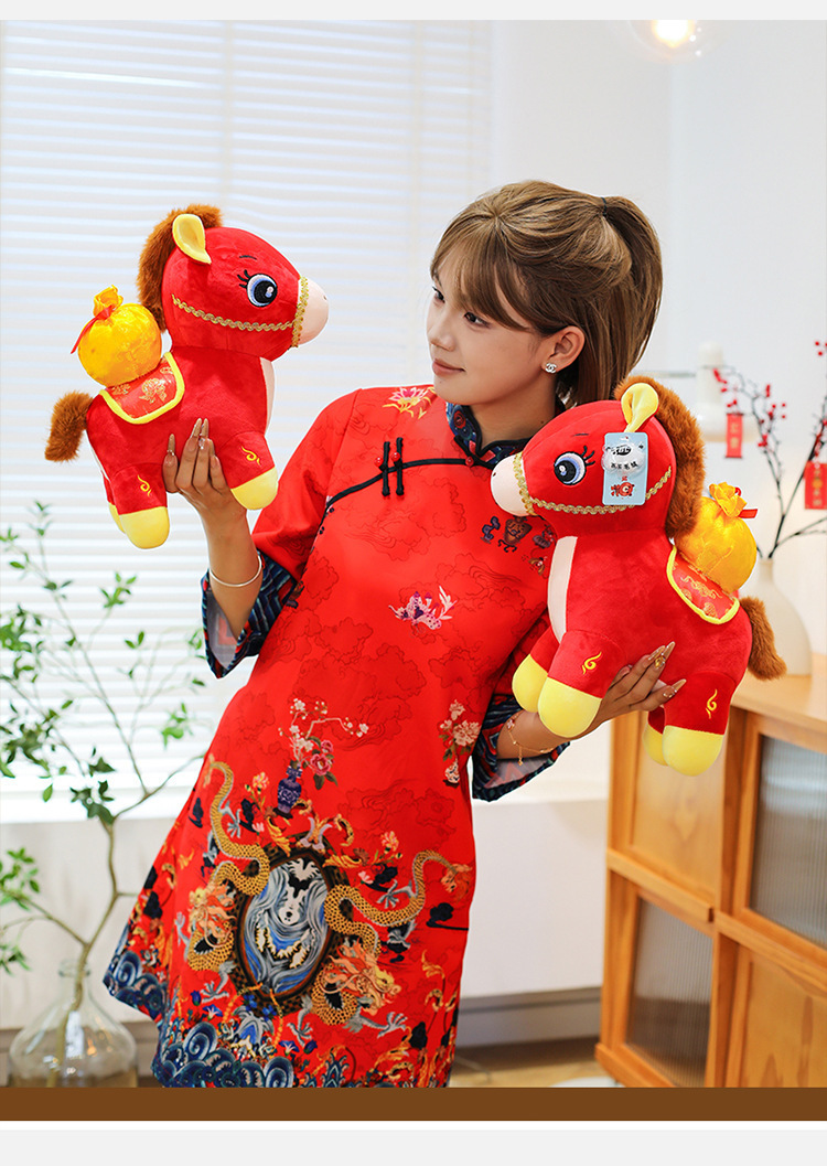 2026马年吉祥物公仔春节喜庆小马驮福毛绒玩具公司年会礼品logo