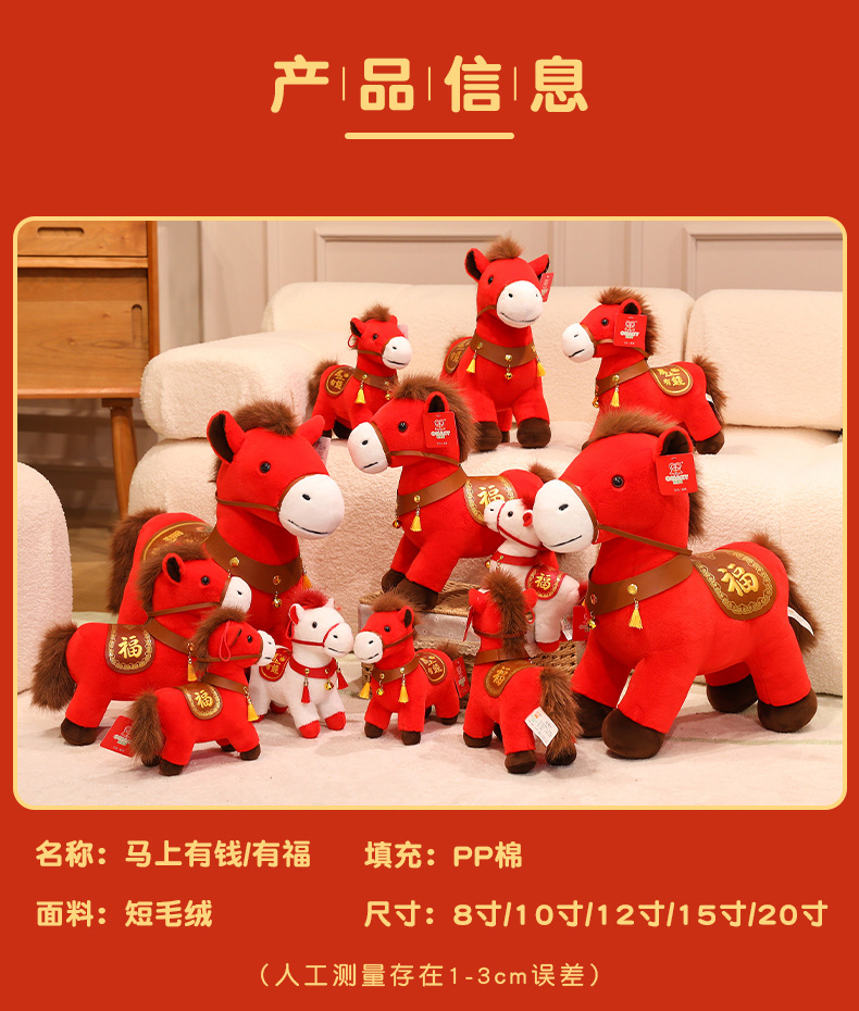 2026马年吉祥物生肖马毛绒玩具公仔马上有钱有福开门红礼品logo