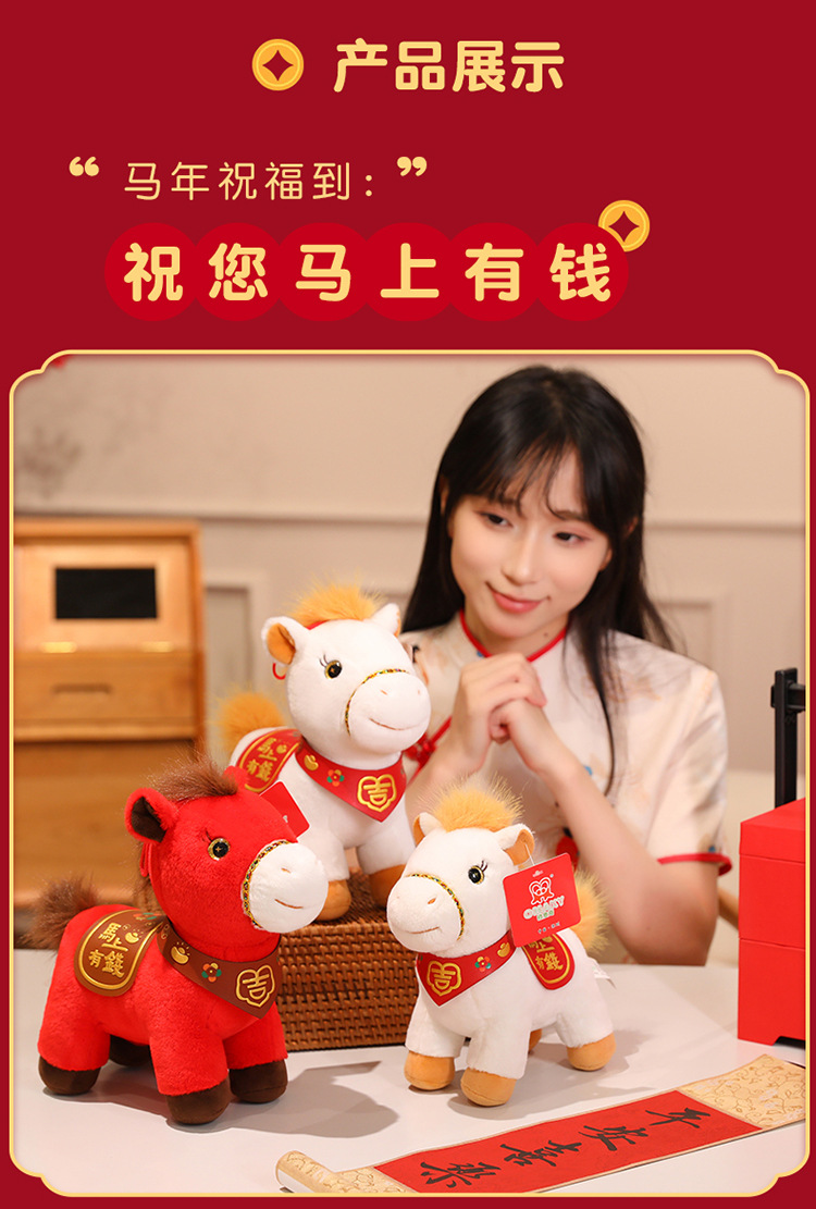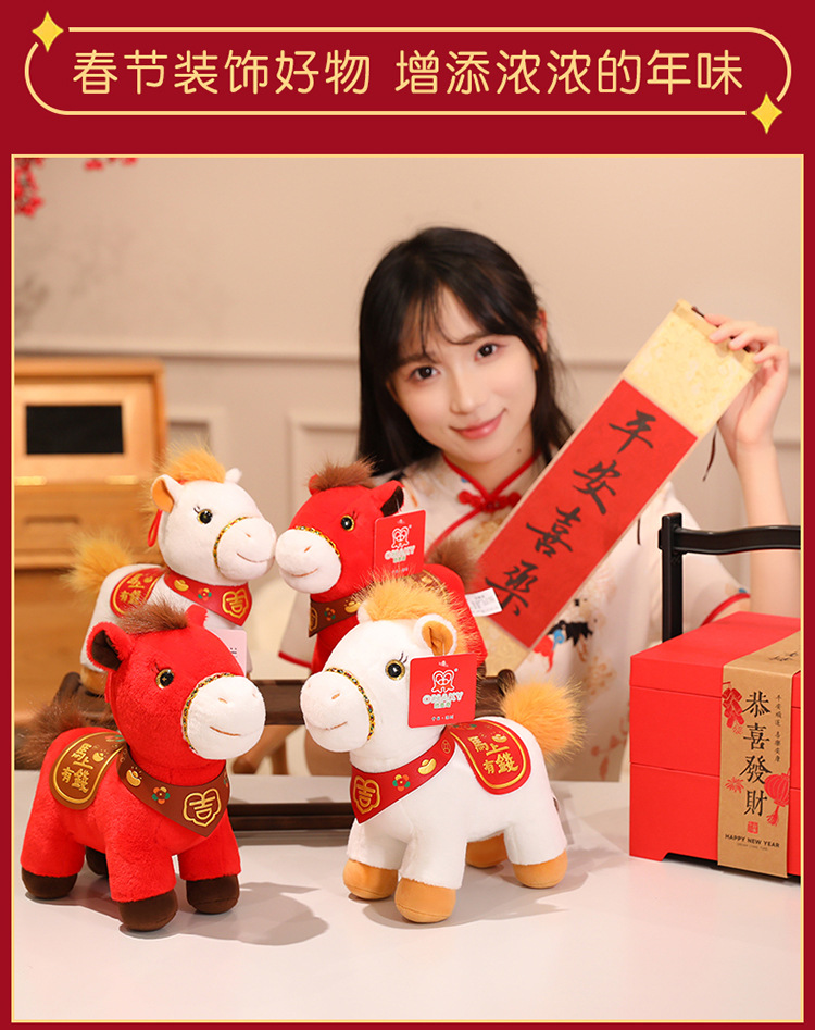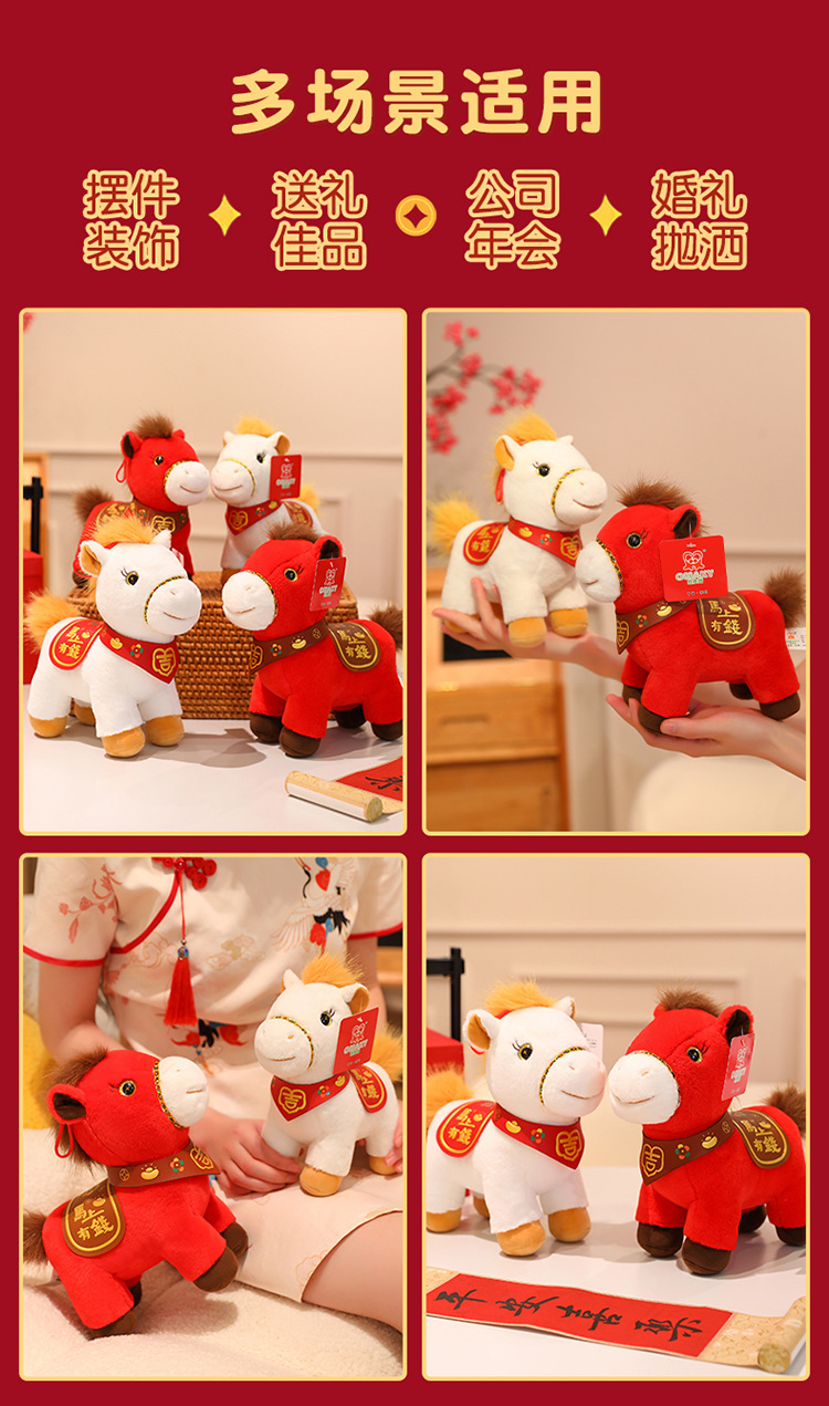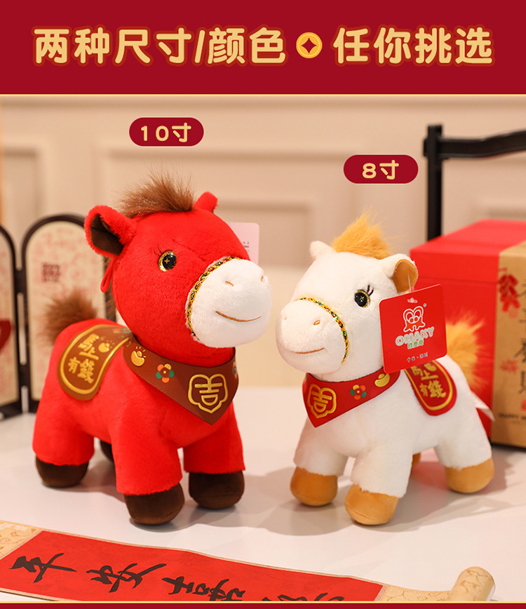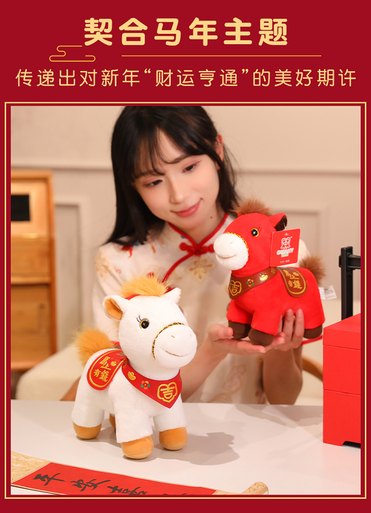 中国风民俗小马挂件毛绒玩具公仔马年吉祥物包包公司礼品可加logo