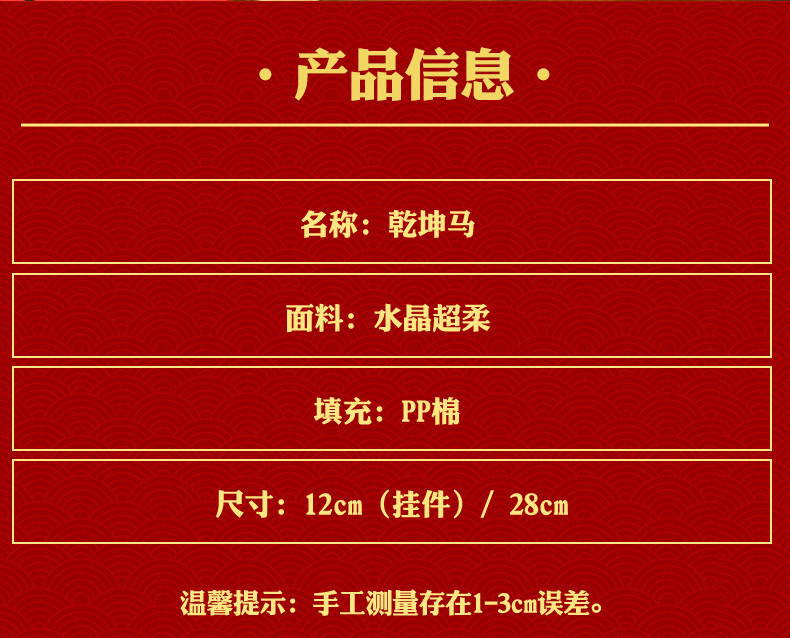 乾坤马马年公仔吉祥物仿真小马玩偶毛绒玩具可爱生肖马玩偶娃娃