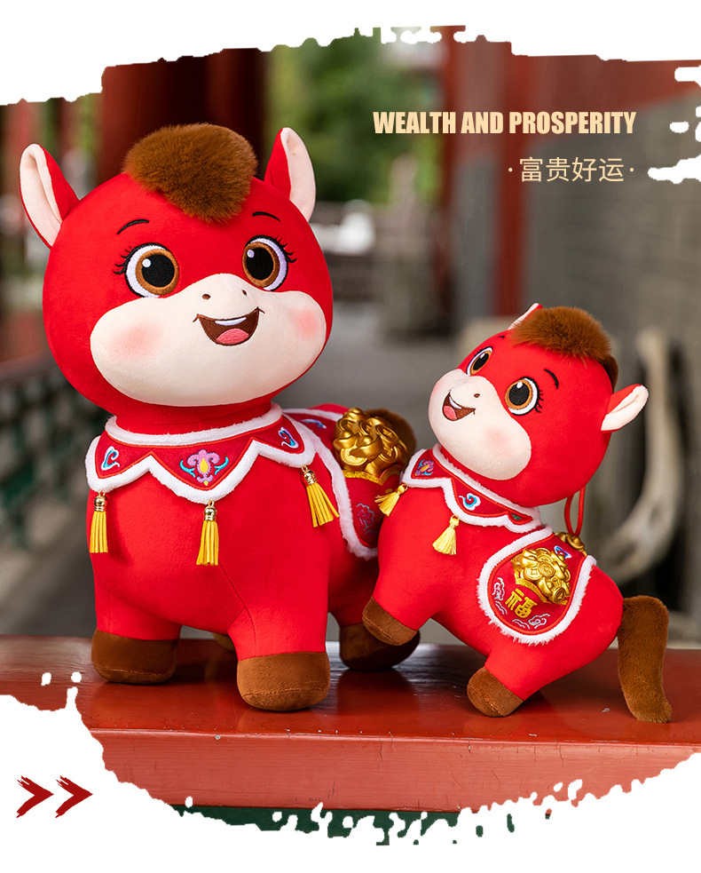 2026可爱马年吉祥物马载富贵公仔娃娃新年玩偶礼品logo毛绒玩具