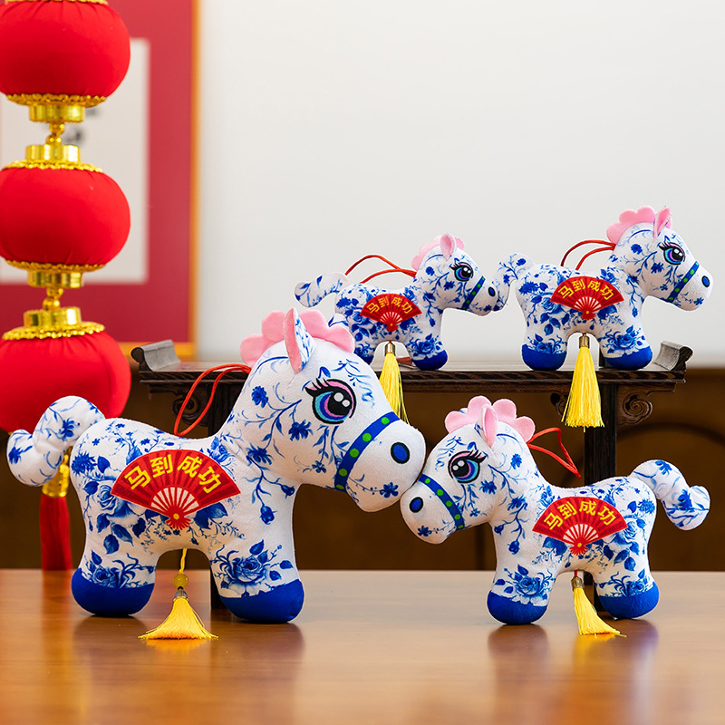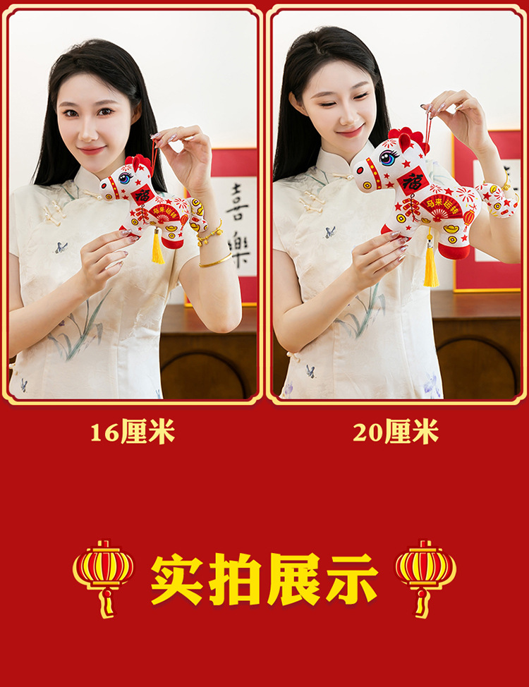 剪纸马年吉祥物挂件生肖马玩偶娃娃公仔毛绒玩具新年挂饰年会礼物