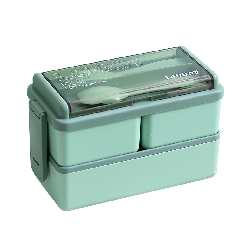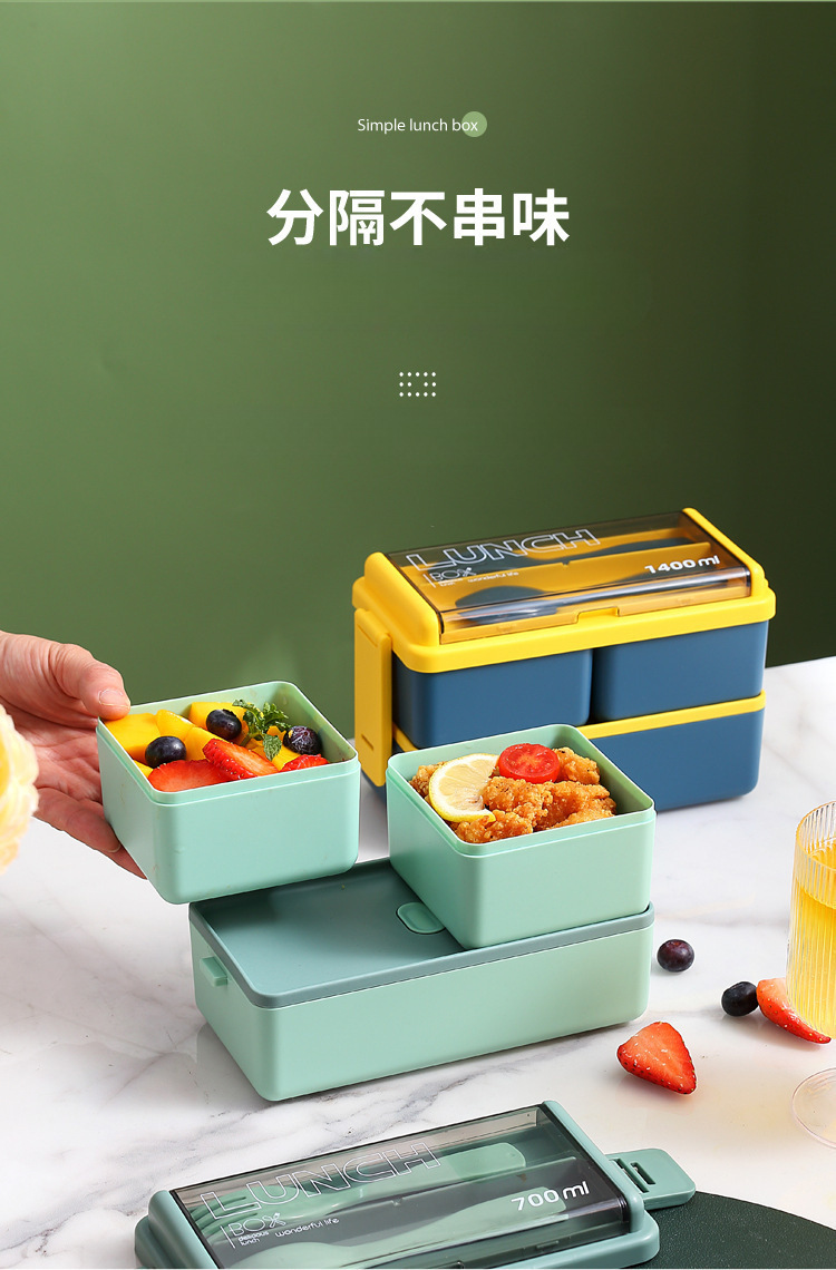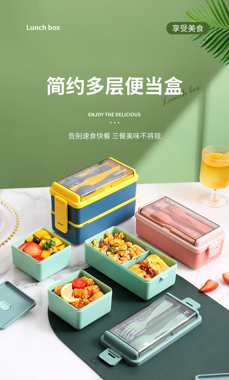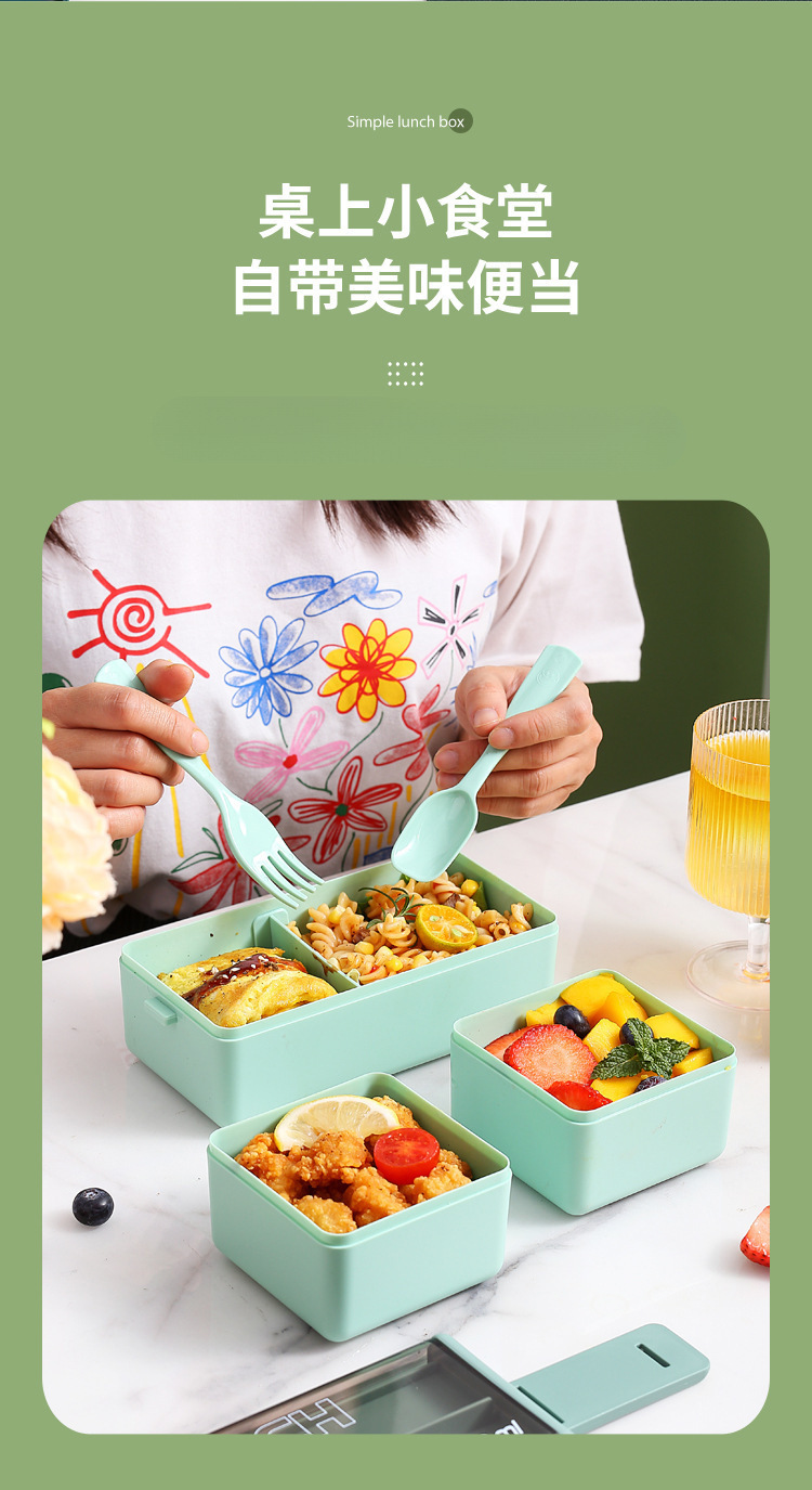 简约多层分格上班族可微波加热午餐盒 日式双层便当盒带勺叉餐具