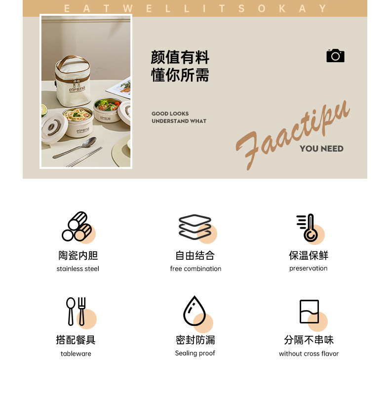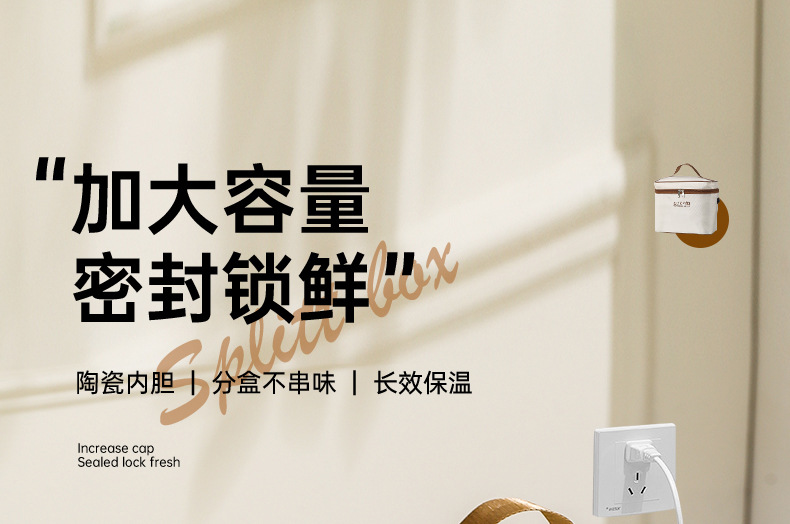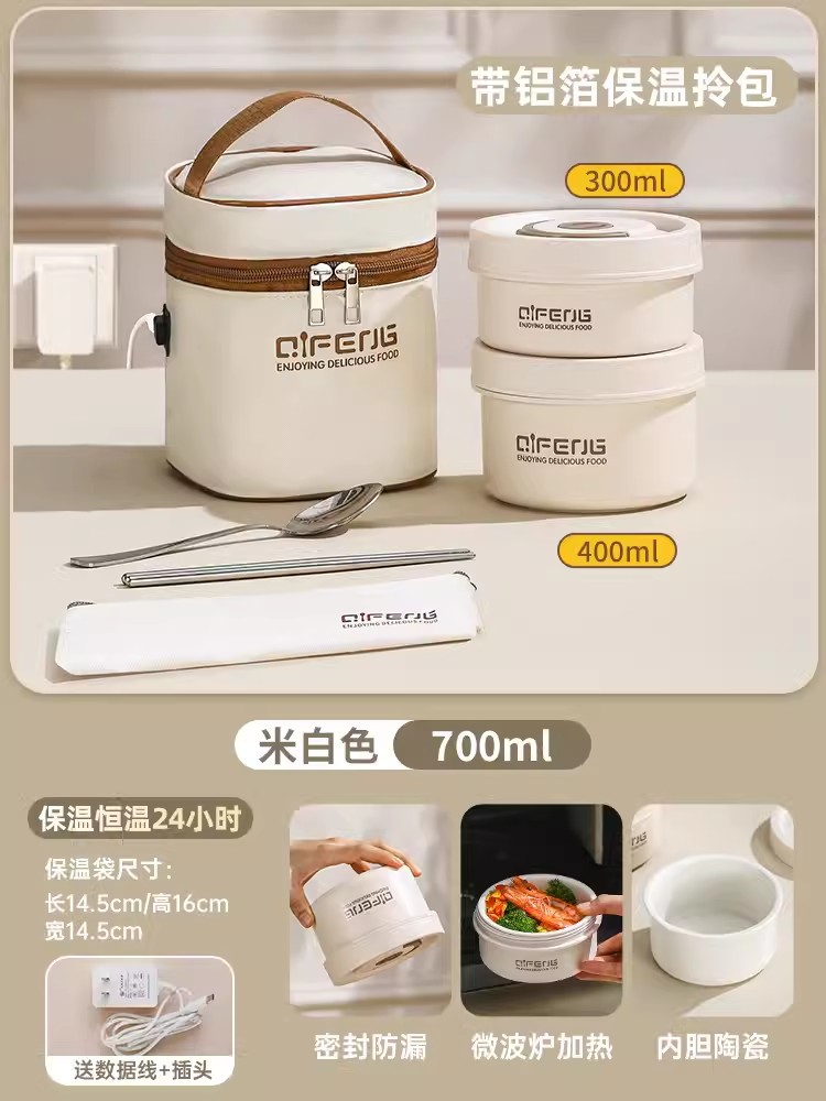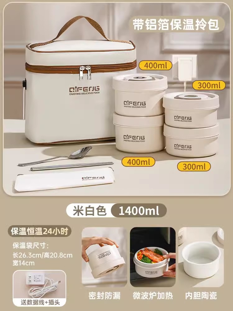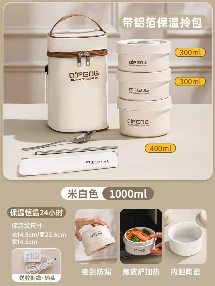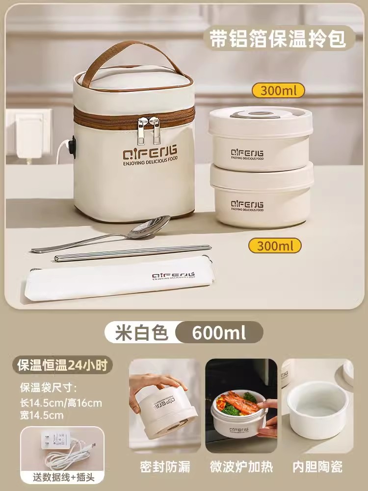 陶瓷可插电饭盒可微波炉加热便当盒上班族保温餐盒多层分餐小饭盒