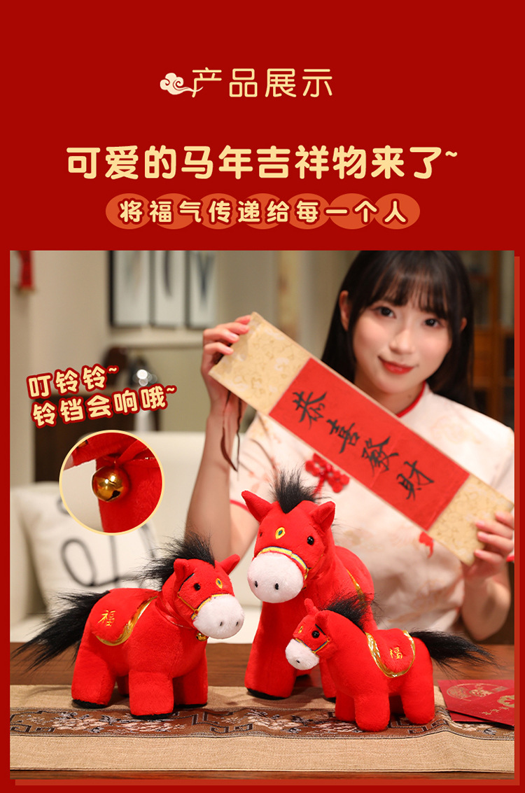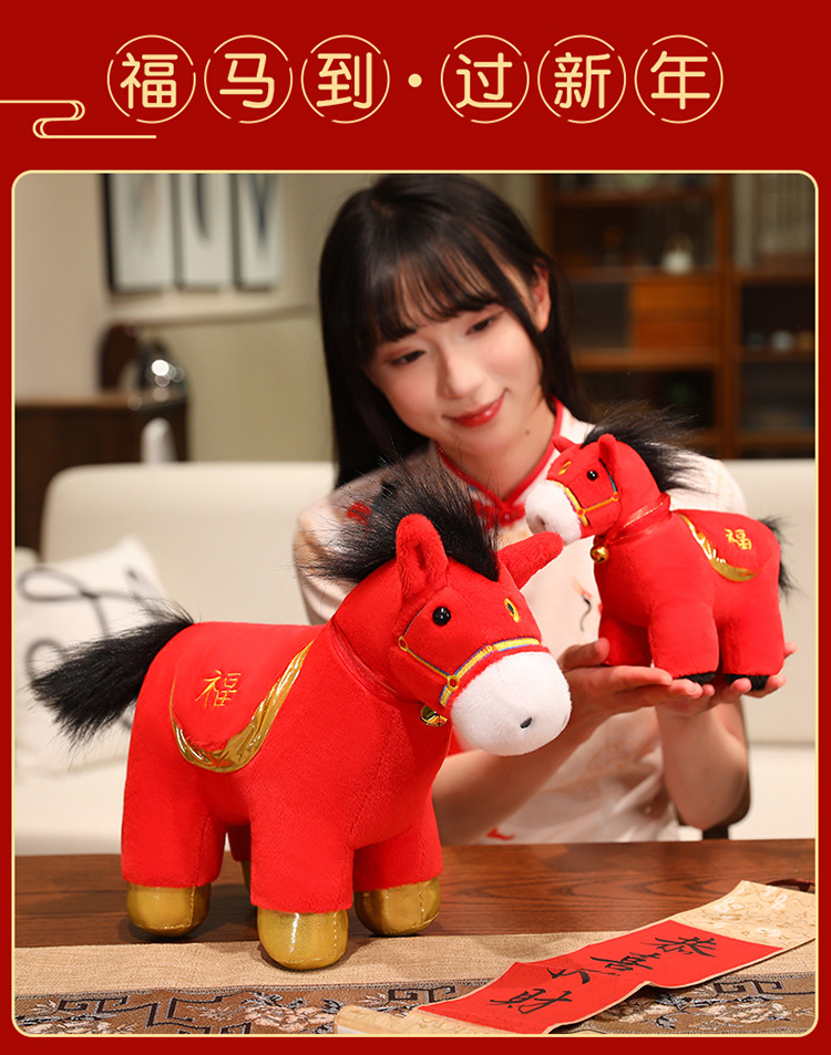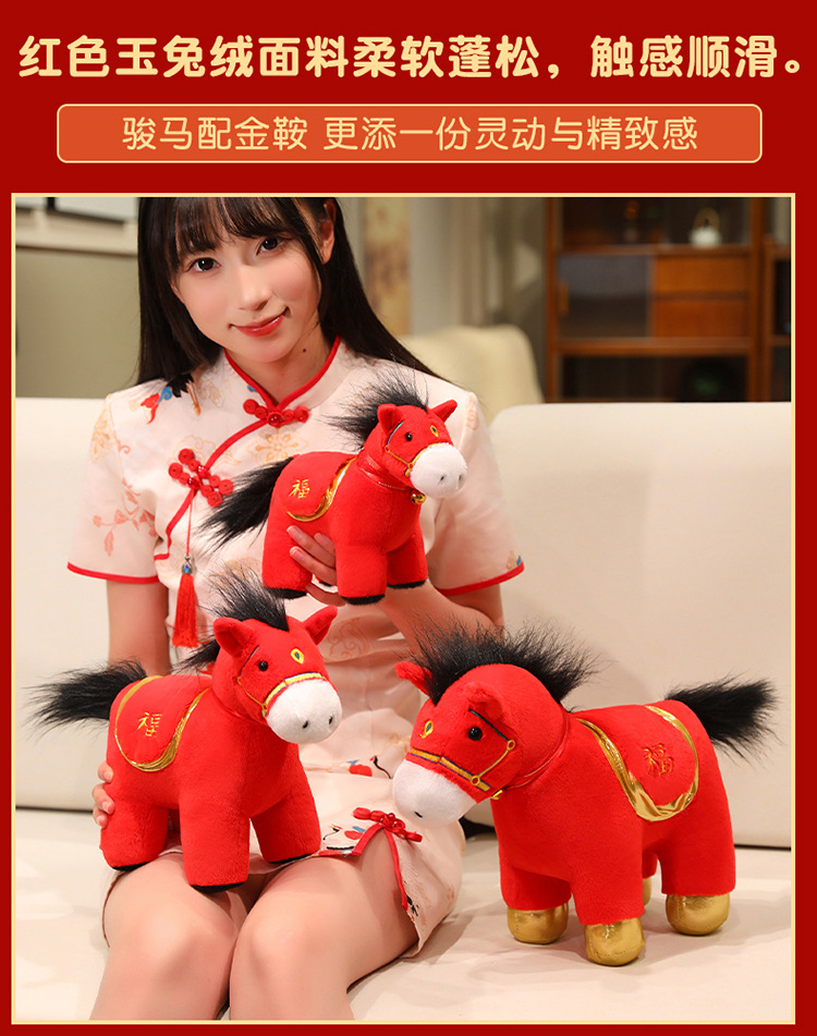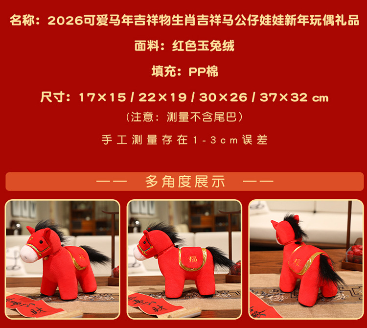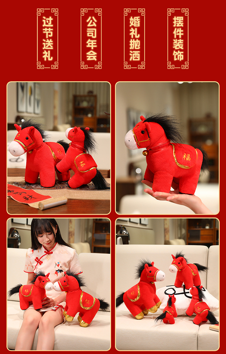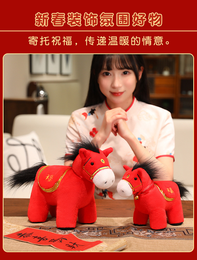 2026马年吉祥物公仔马上有钱毛绒玩具国风福小马生肖玩偶新年礼品