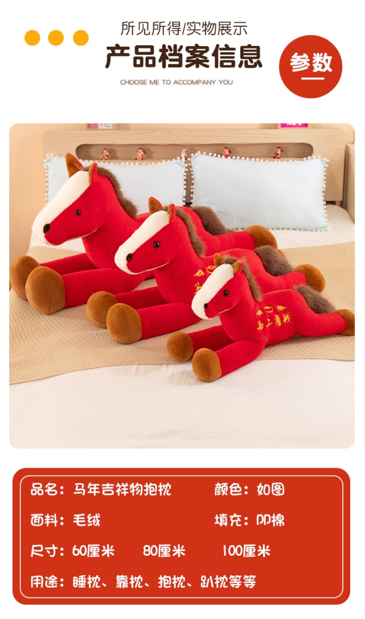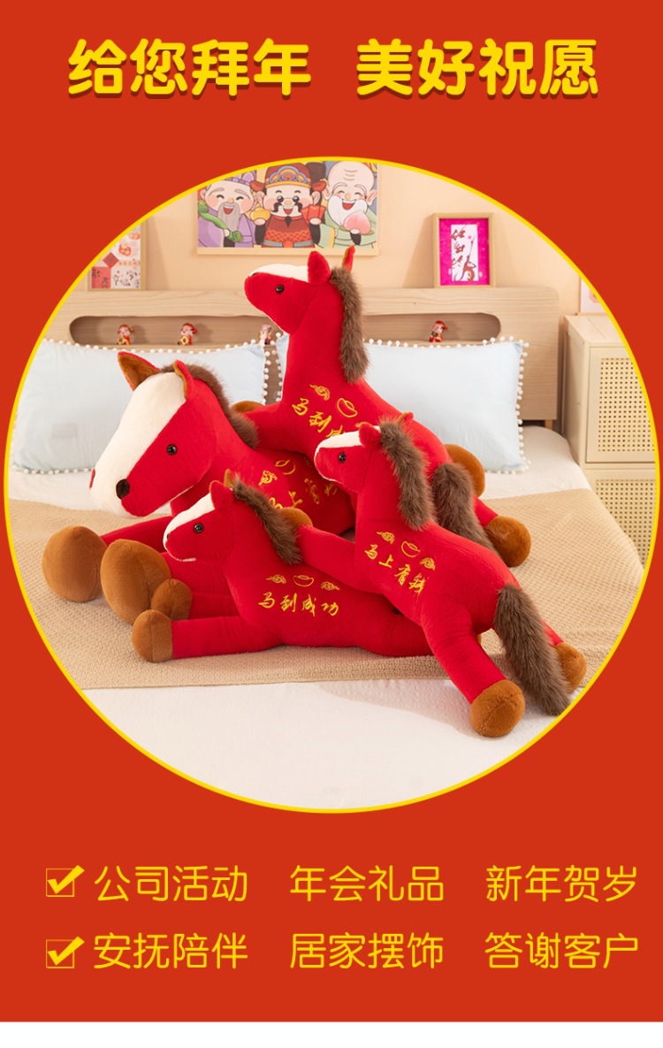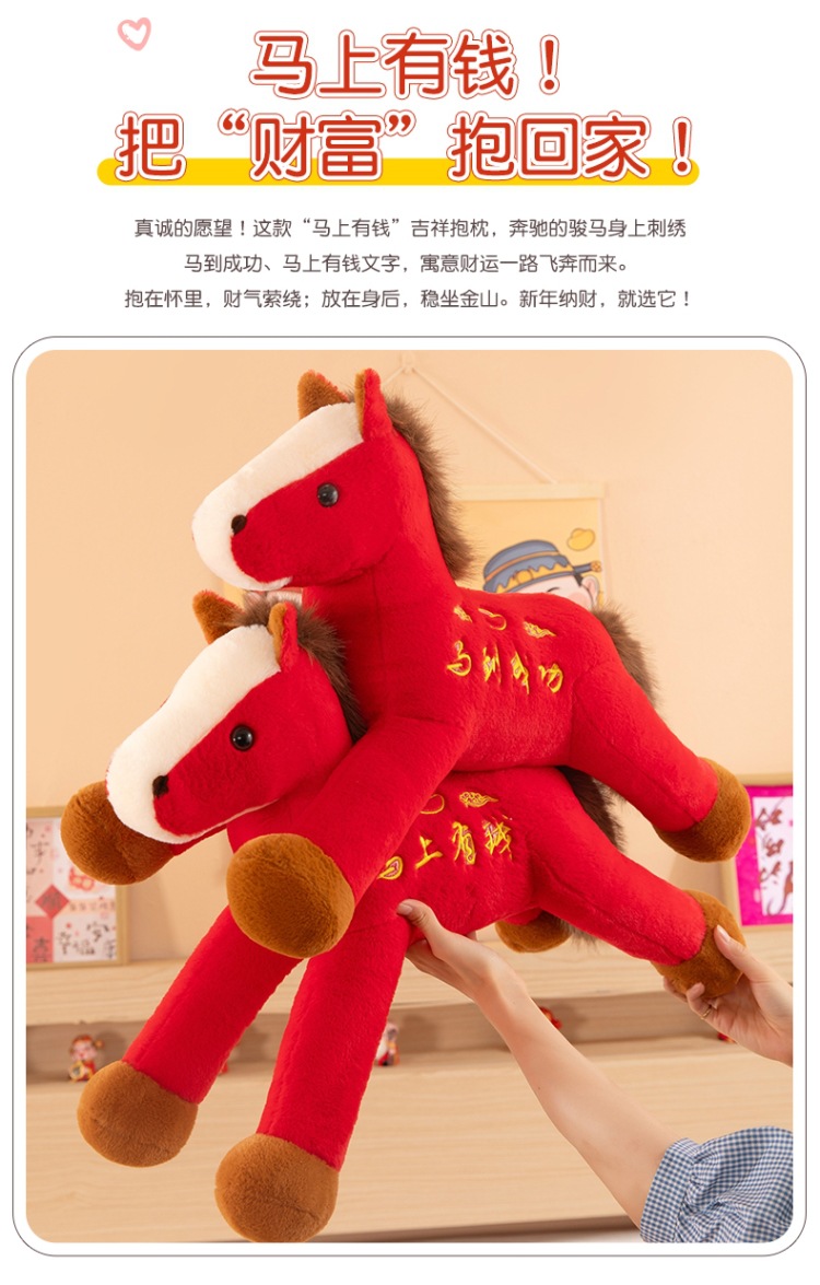 2026马年生肖马毛绒娃娃吉祥物公仔马到成功寓意暴富马玩偶送礼物