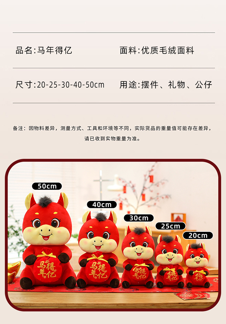 批发跨境2026马年吉祥物公仔卡通生肖马玩偶活动女友礼物毛绒玩具
