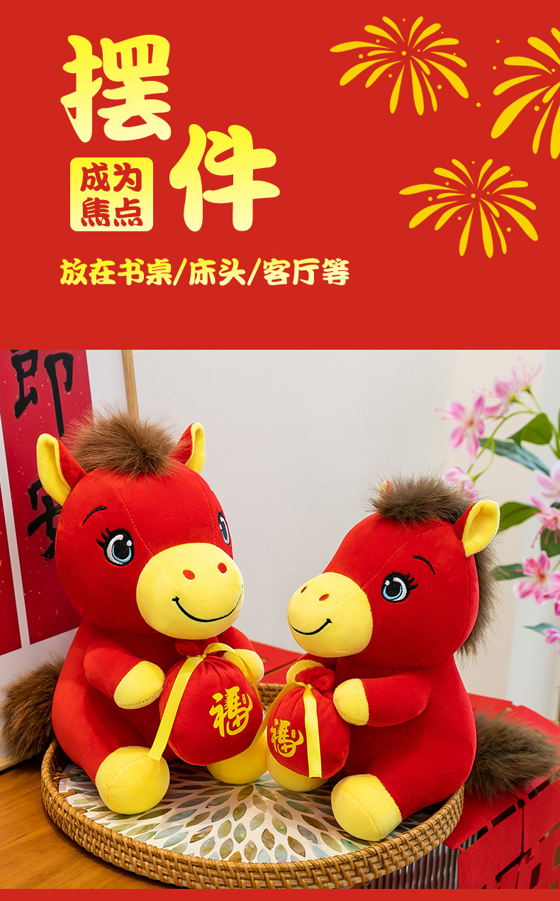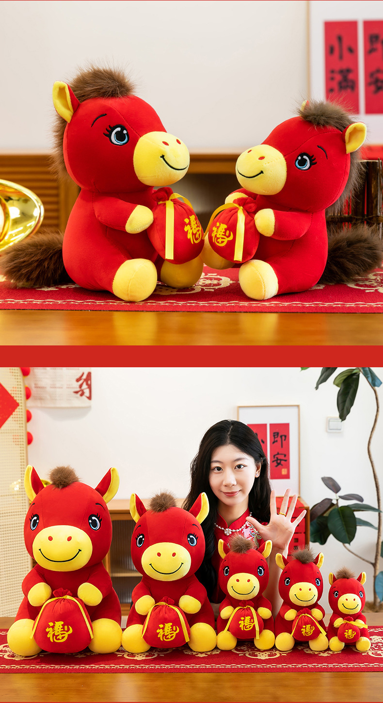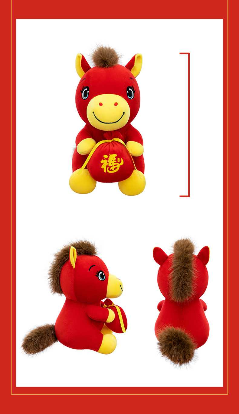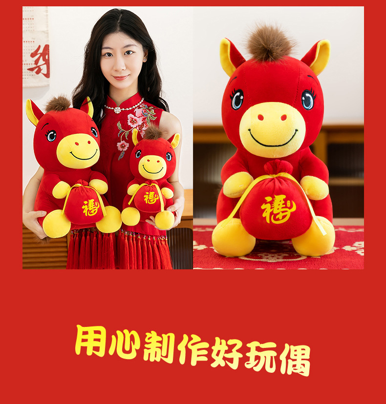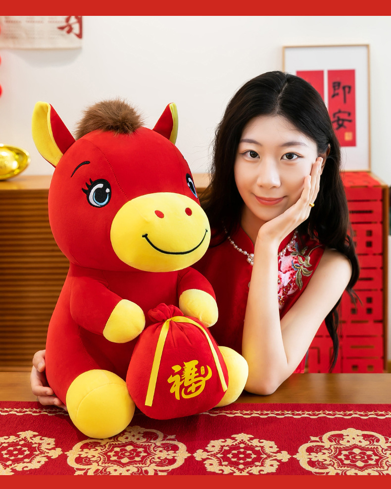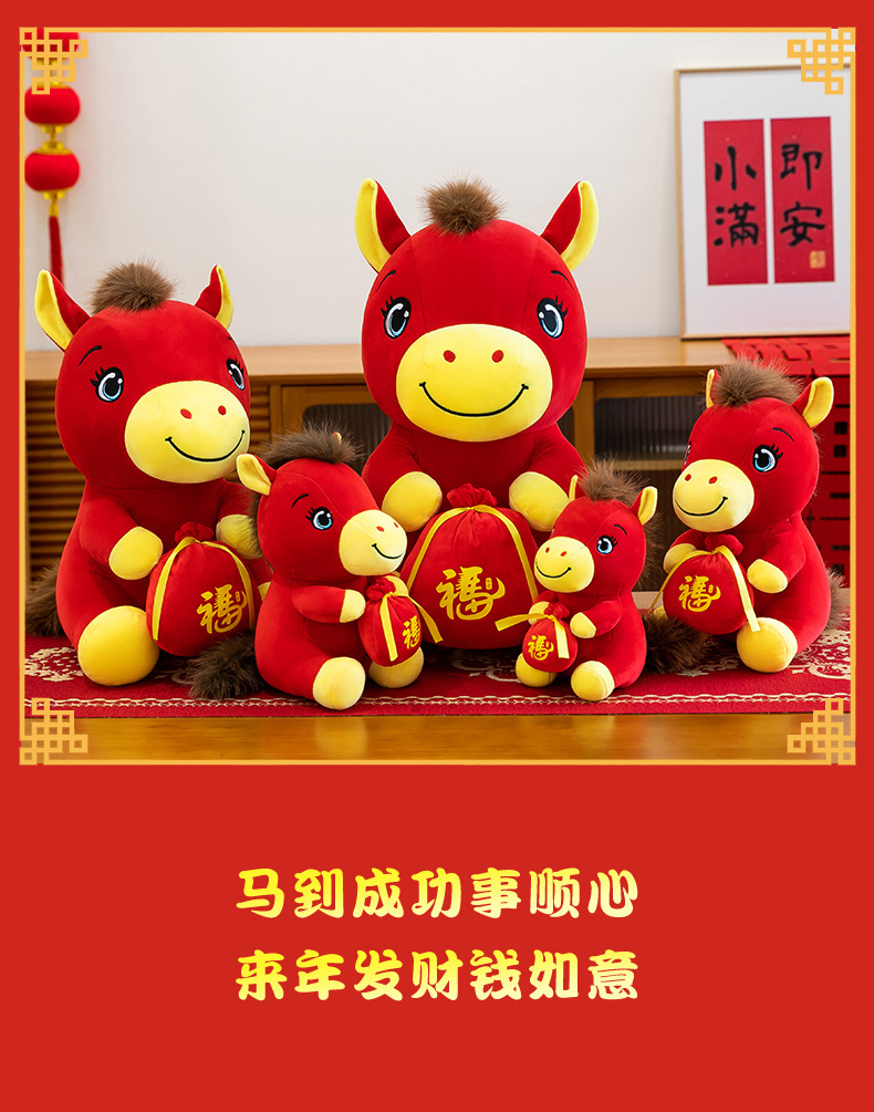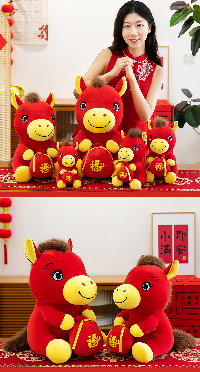 跨境新款马年吉祥物毛绒公仔如意小马抱福袋玩偶公司活动礼品定制