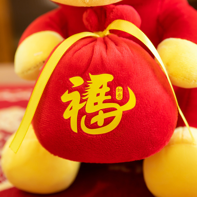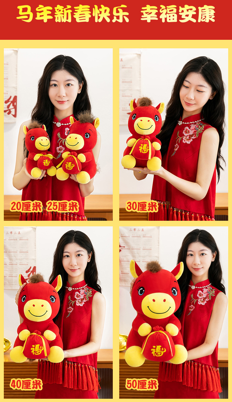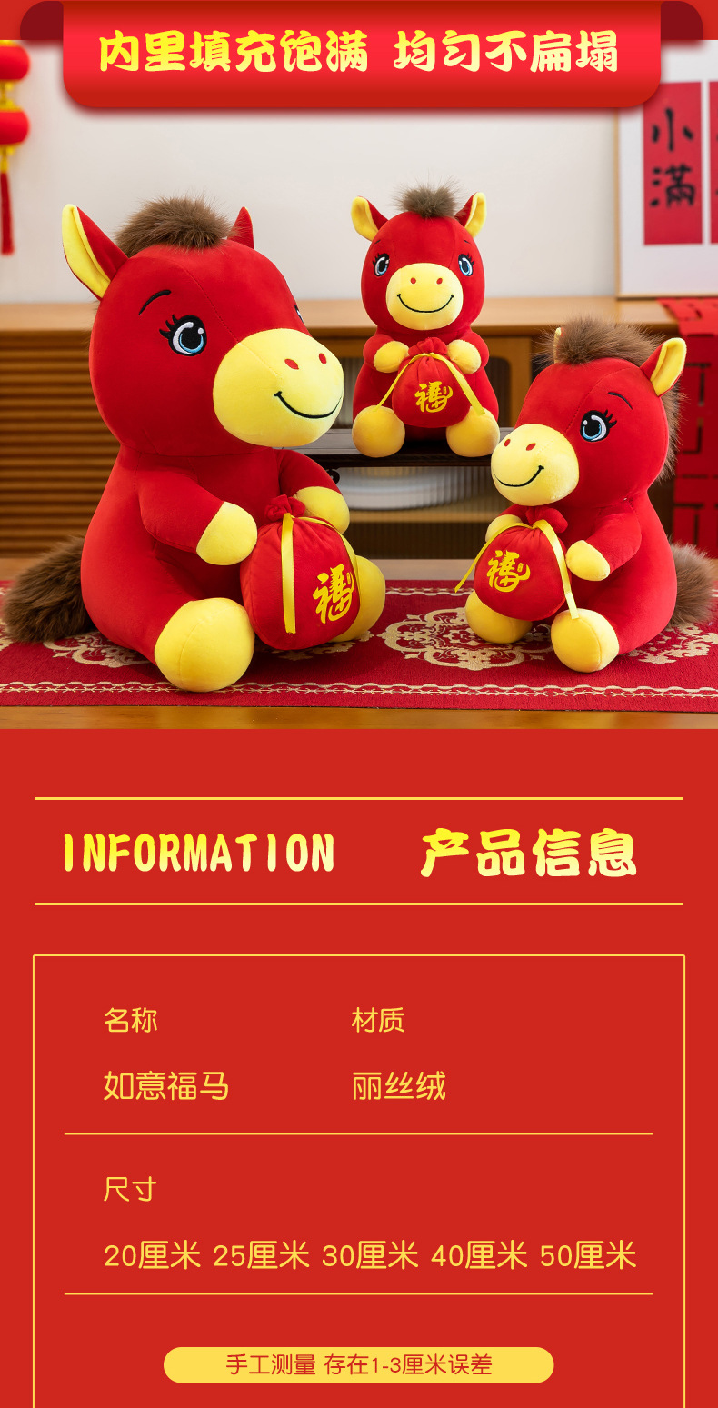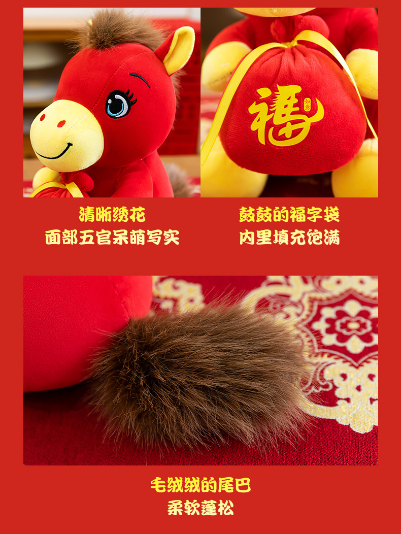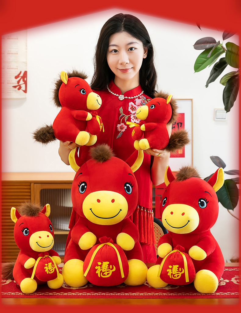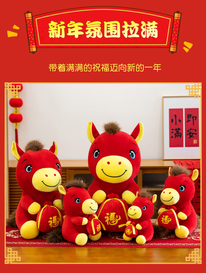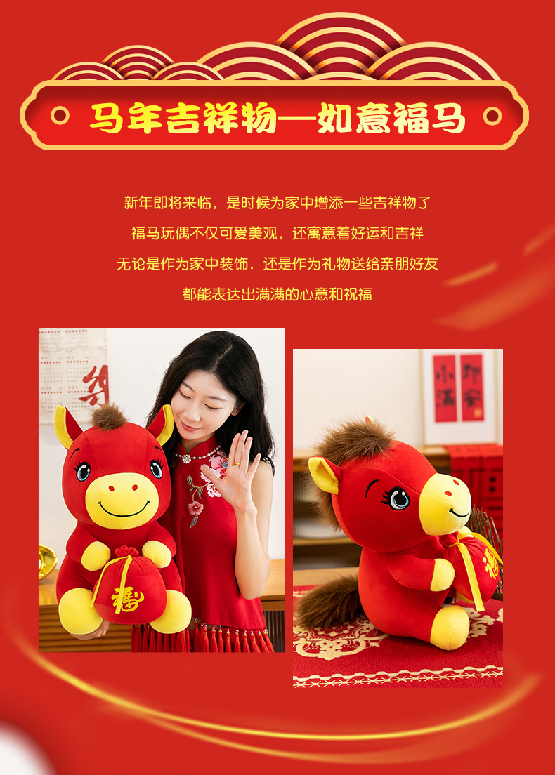 跨境新款马年吉祥物毛绒公仔如意小马抱福袋玩偶公司活动礼品定制