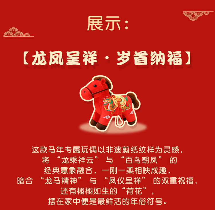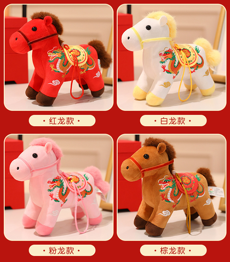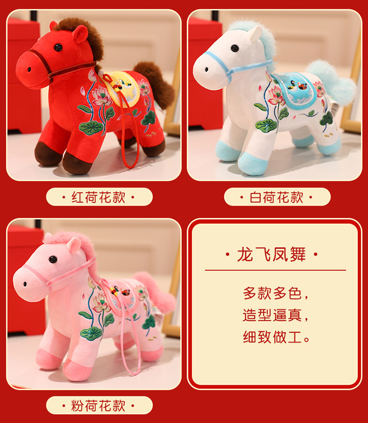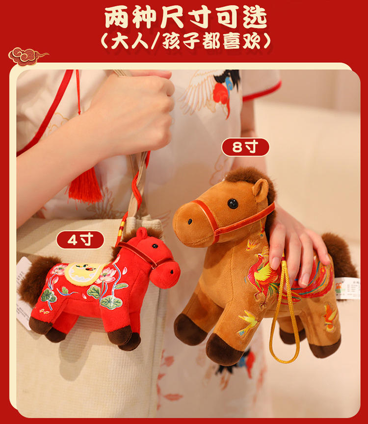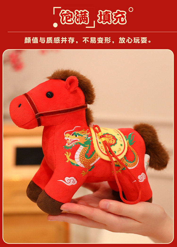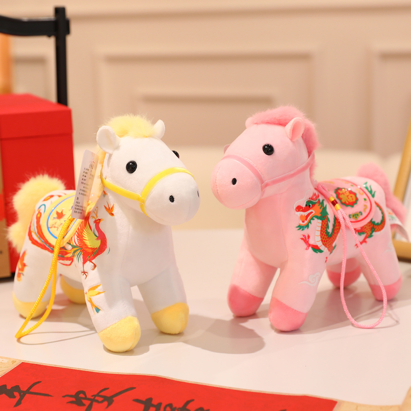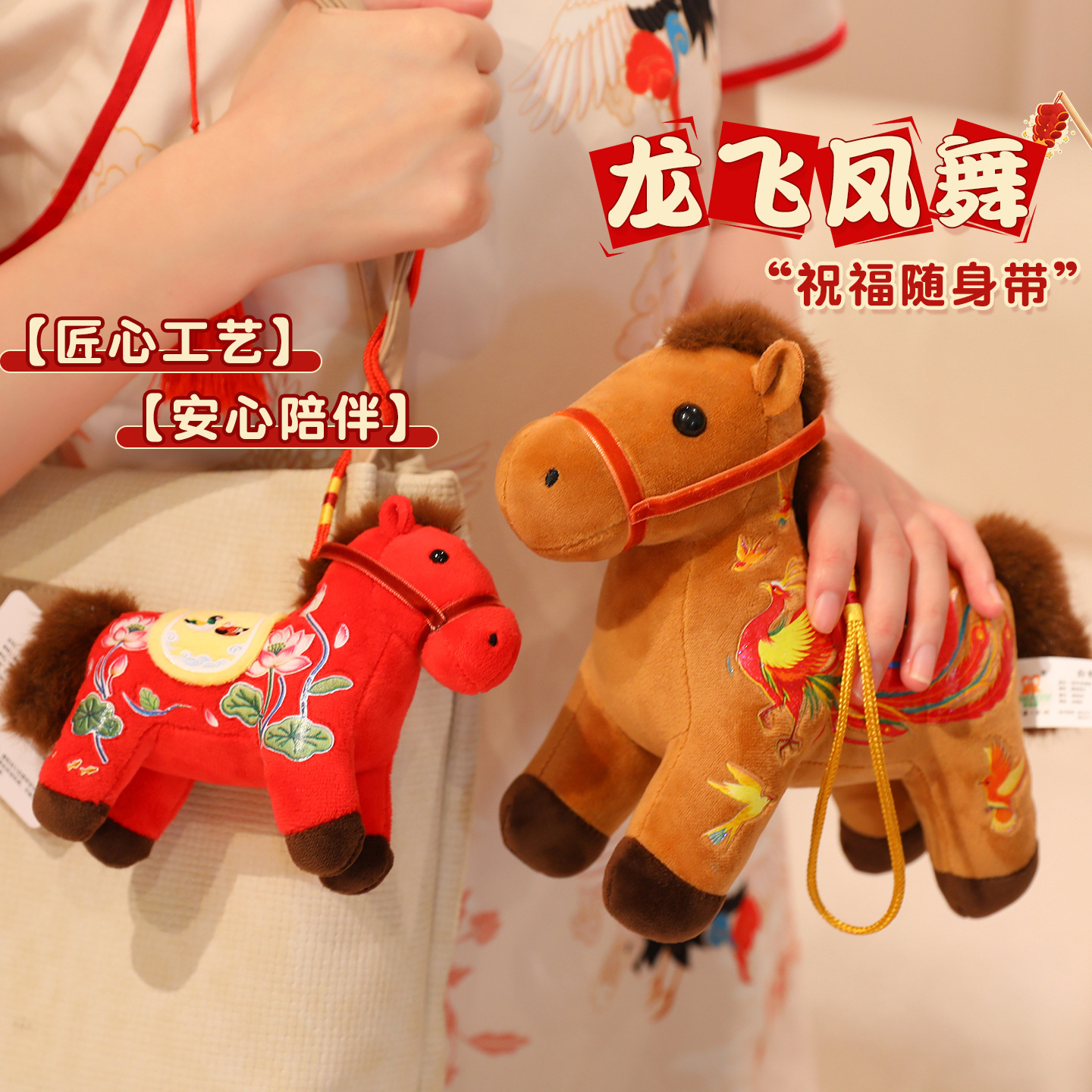 中国风民俗小马挂件毛绒玩具公仔青花瓷马年吉祥物包包挂饰钥匙扣