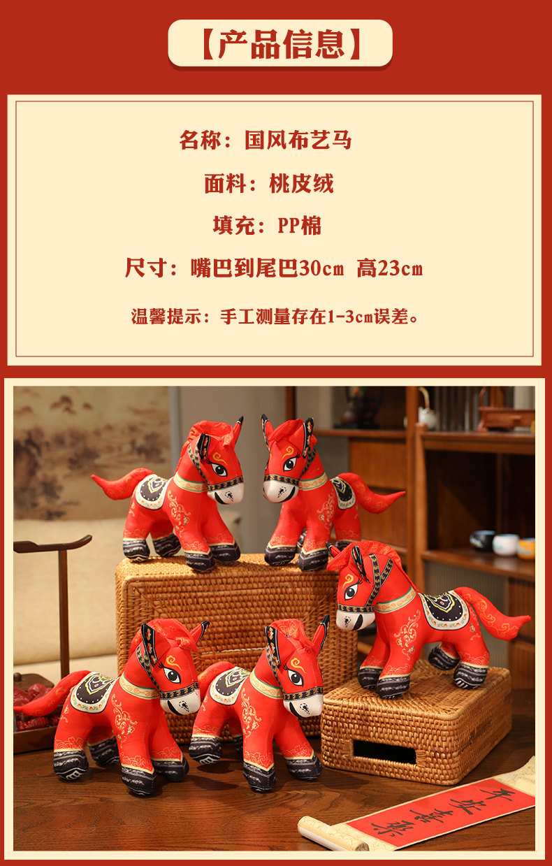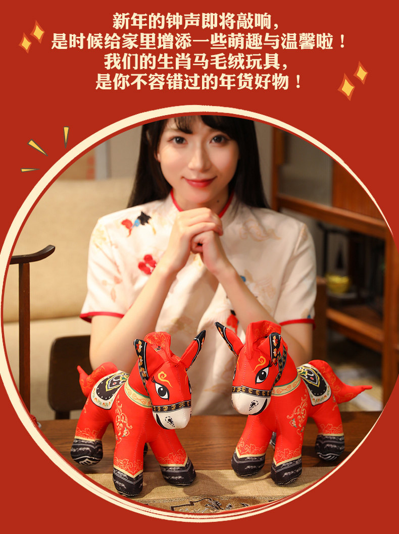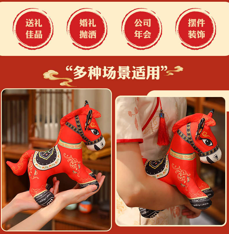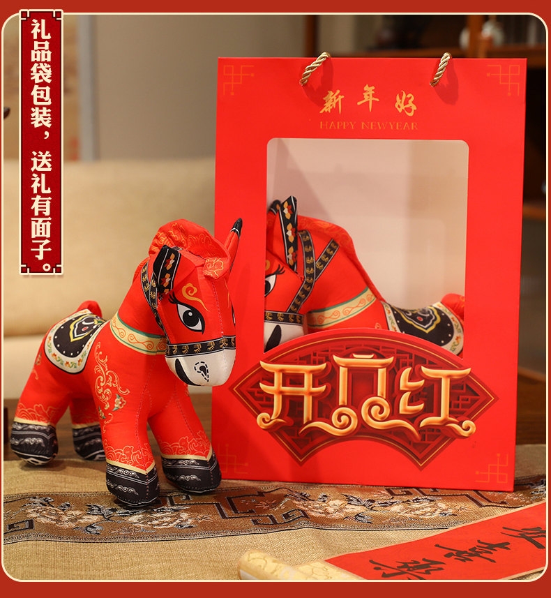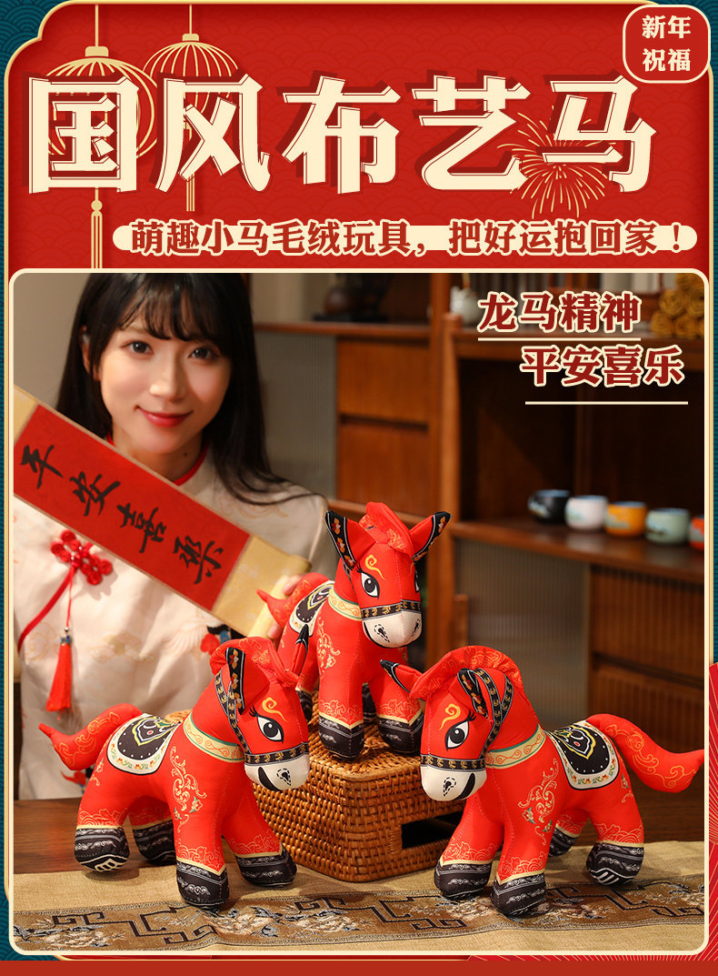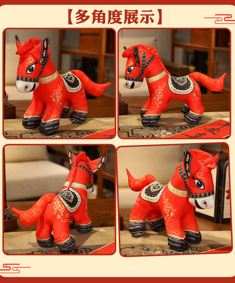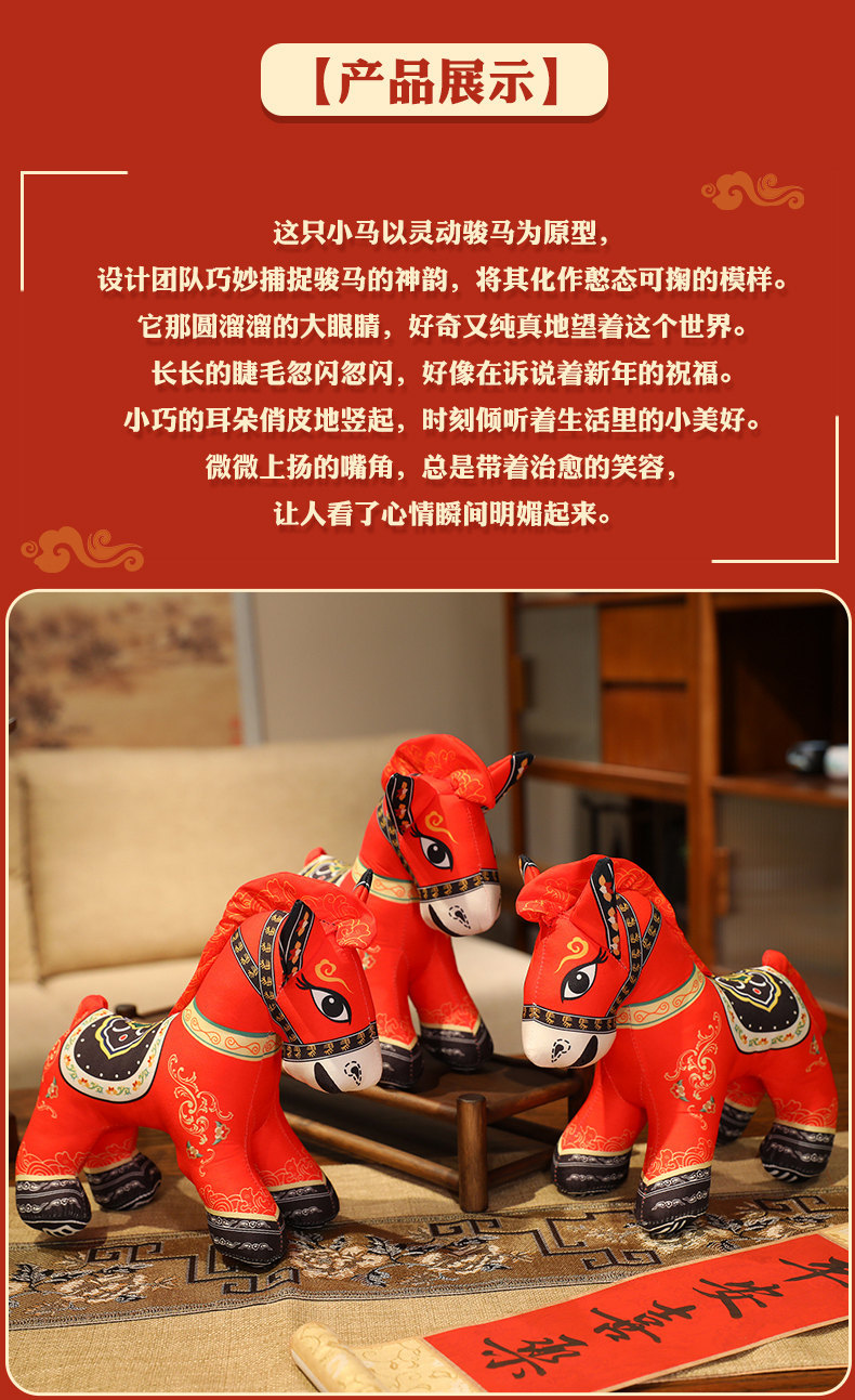 国潮马玩偶毛绒公仔抱枕马年吉祥物生肖马布娃娃公司活动新年礼品