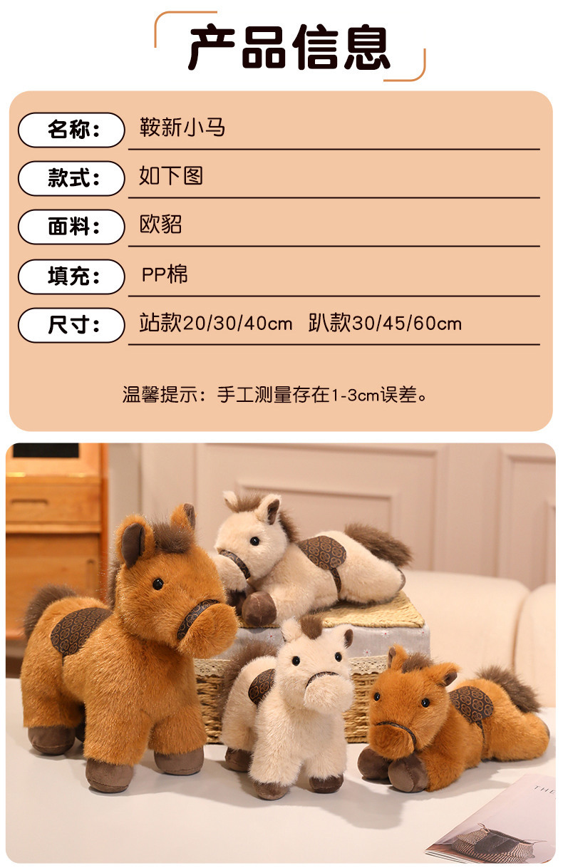 鞍新小马公仔可爱马鞍站姿趴姿马年吉祥物毛绒玩具公司年会礼物