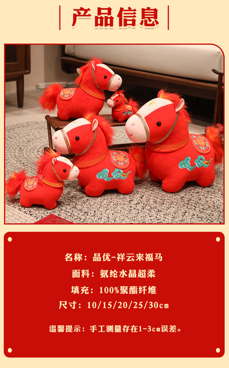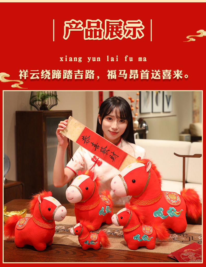马年吉祥物公仔祥云来福马生肖马玩偶毛绒玩具公司活动礼品加logo