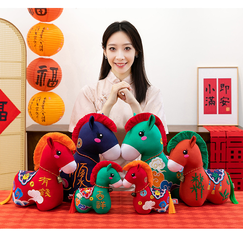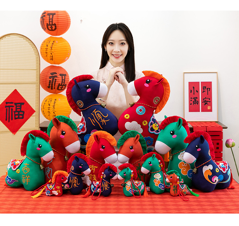 马年吉祥物五彩小马毛绒玩具公仔挂件四季平安玩偶公司礼品生肖马