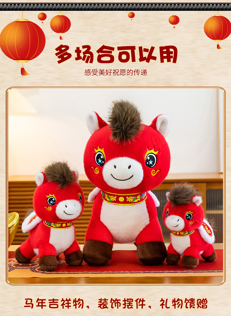 2026马年吉祥物玩偶卡通生肖马公仔毛绒玩具活动礼品批发可做logo
